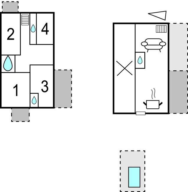 Soveværelse (nr. 2) - 2 Sovepladser. (Enkeltseng(e)). 1 Soveplads. (Sofa, madras eller lignende).