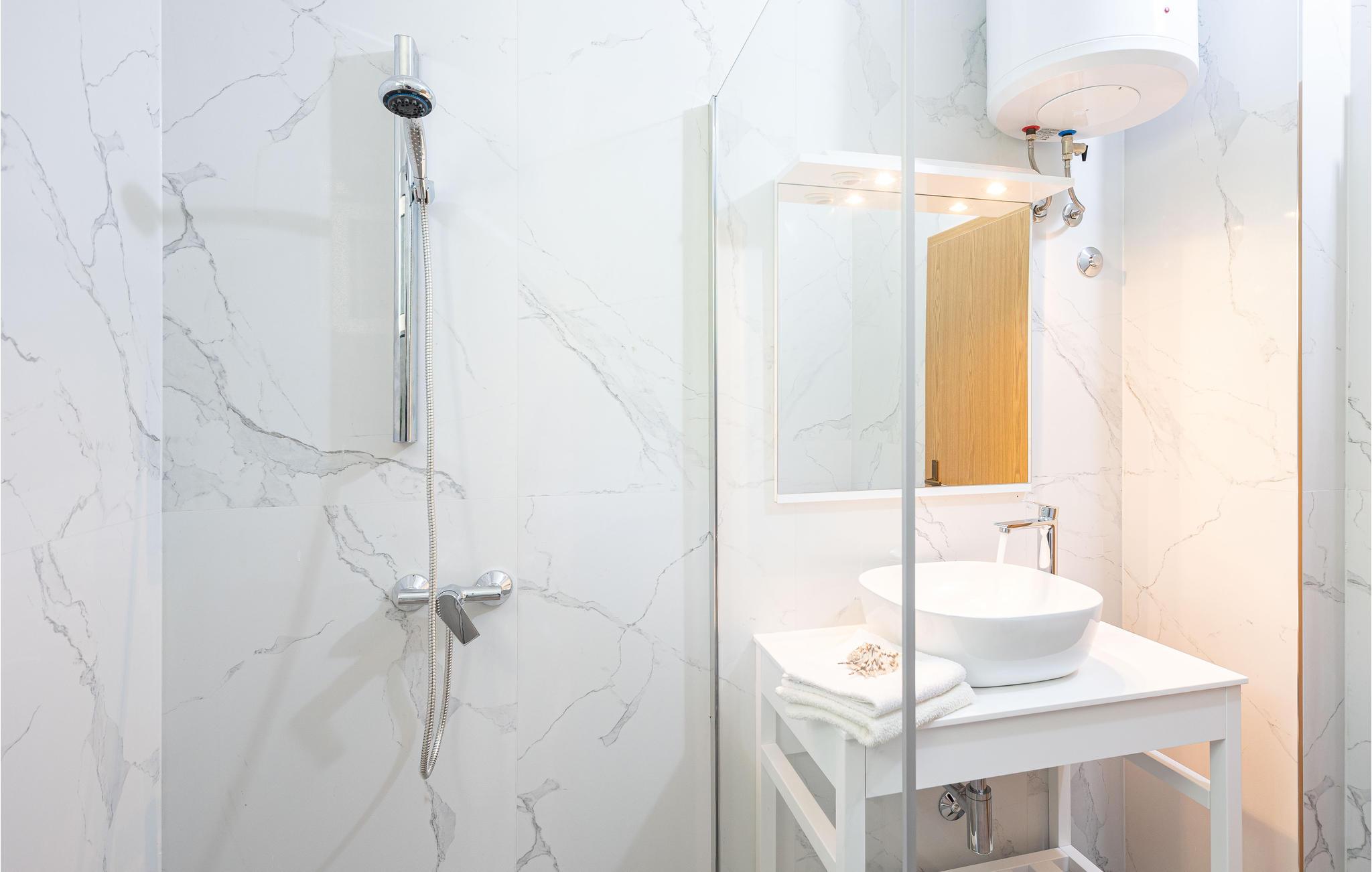 Badeværelse (nr. 1) - WC. Varmt og koldt vand. Bruser