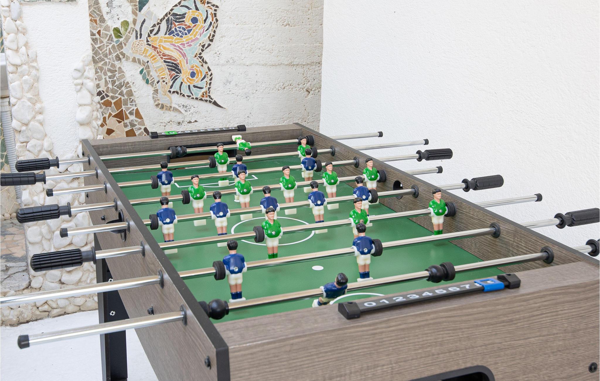 Husets to etager har indvendige trapper. Køkkenet, stuen og badeværelset er i stueetagen. Soveværelserne og tre badeværelser er placeret på øverste etage. Huset er omgivet af mange terrasser, hvor I kan spise aftensmaden eller drikke morgenkaffen, mens dagen program planlægges. En sandstrand ligger 2 km væk.