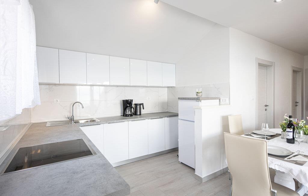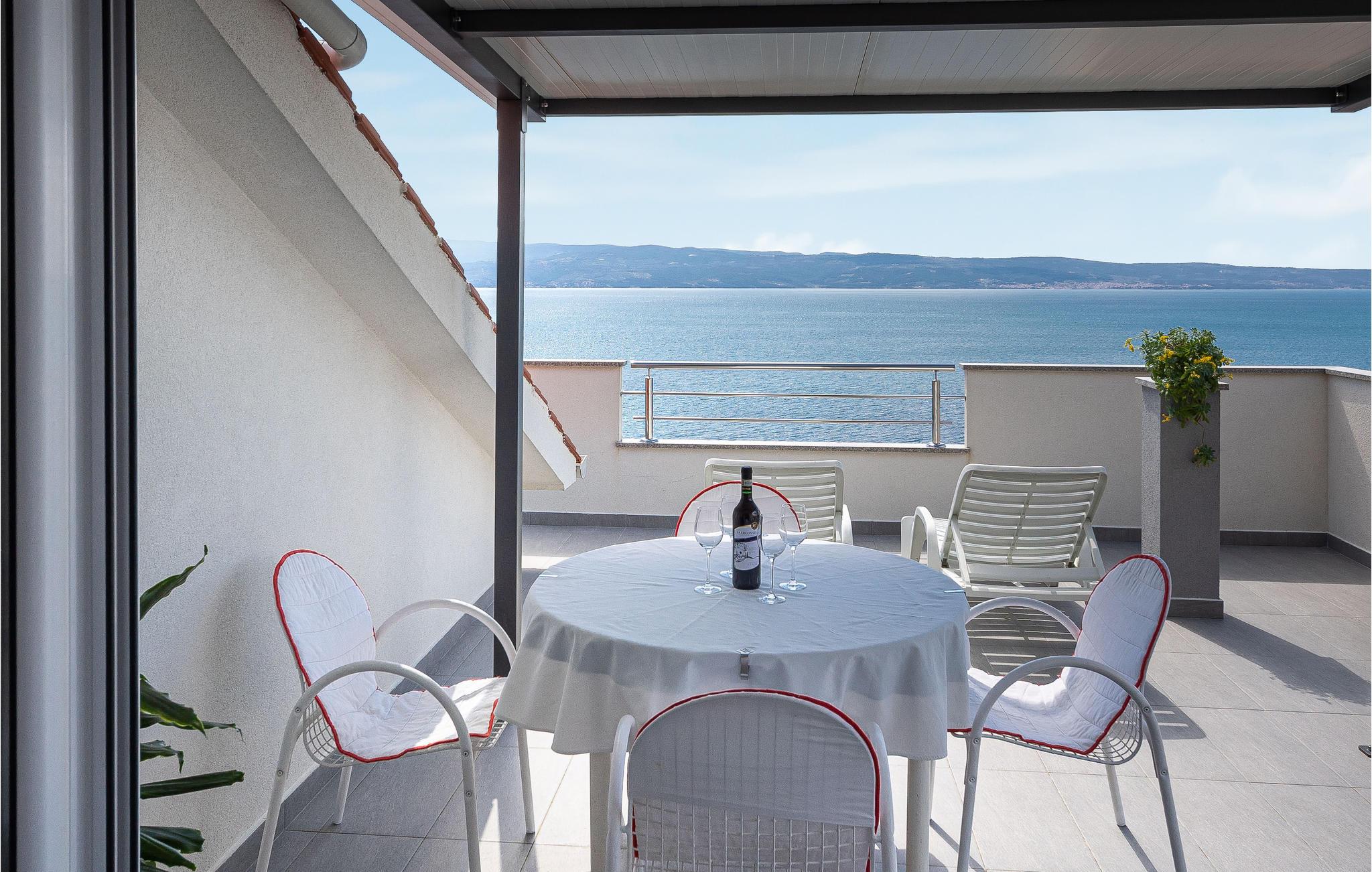 Denne lyse og moderne ferielejlighed med smuk havudsigt har en fantastisk kystbeliggenhed mellem Split og Omis.