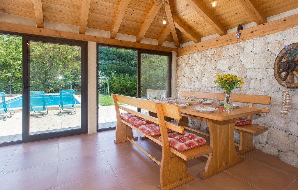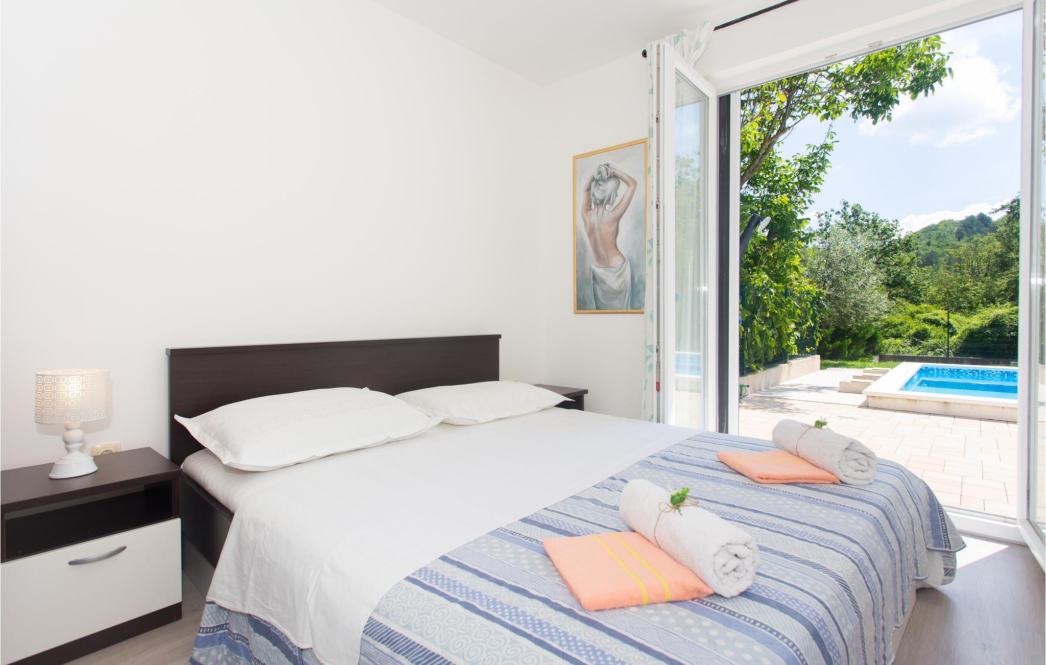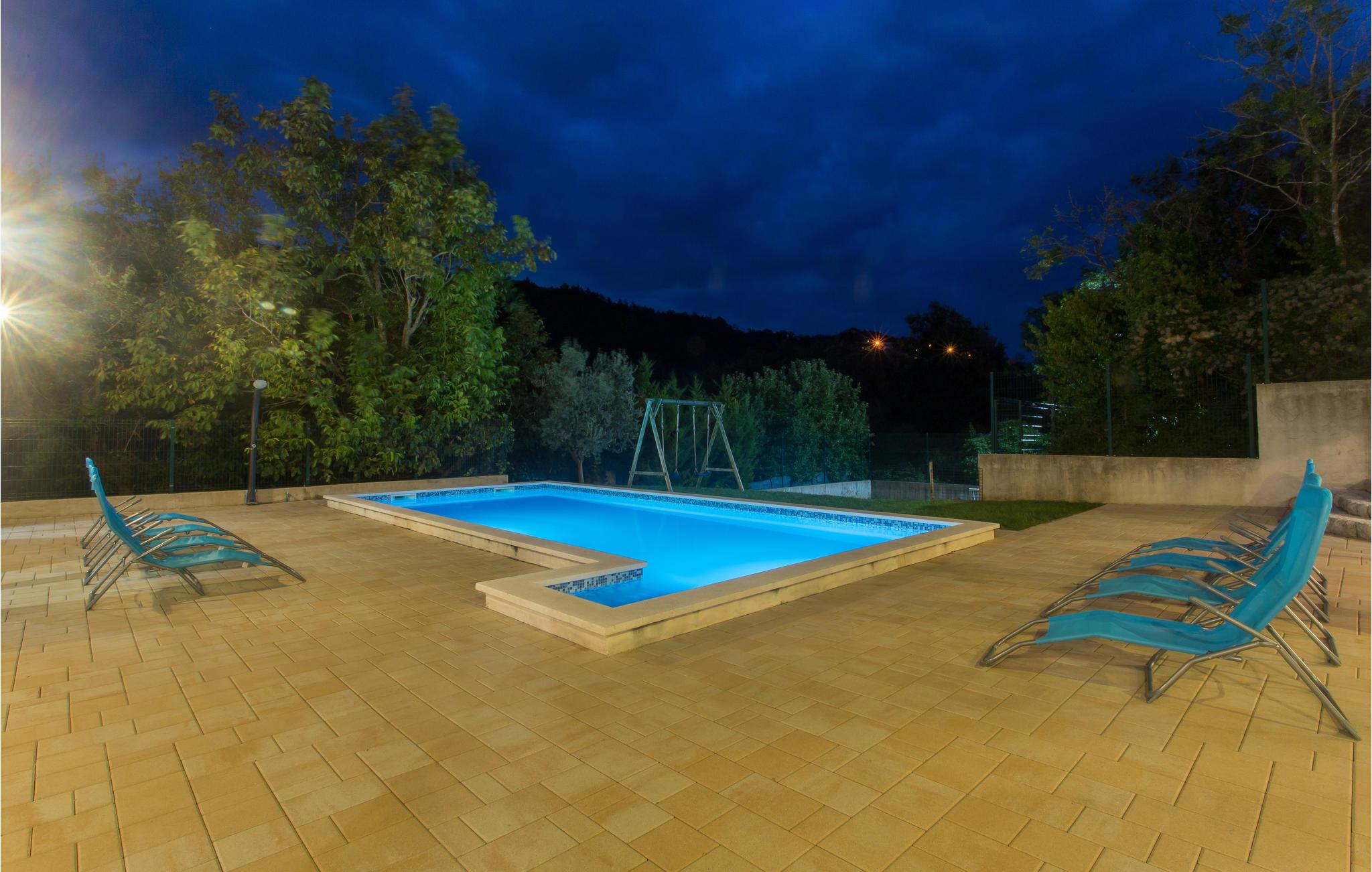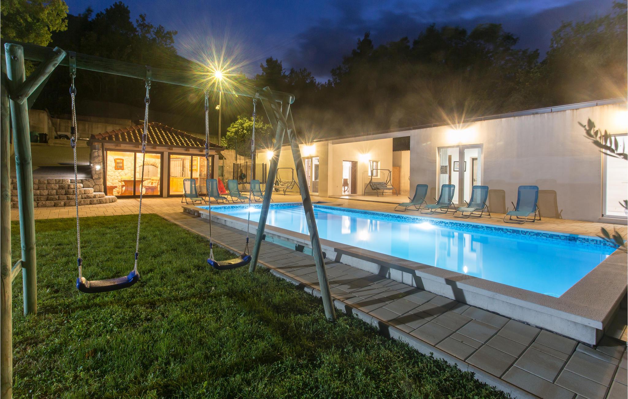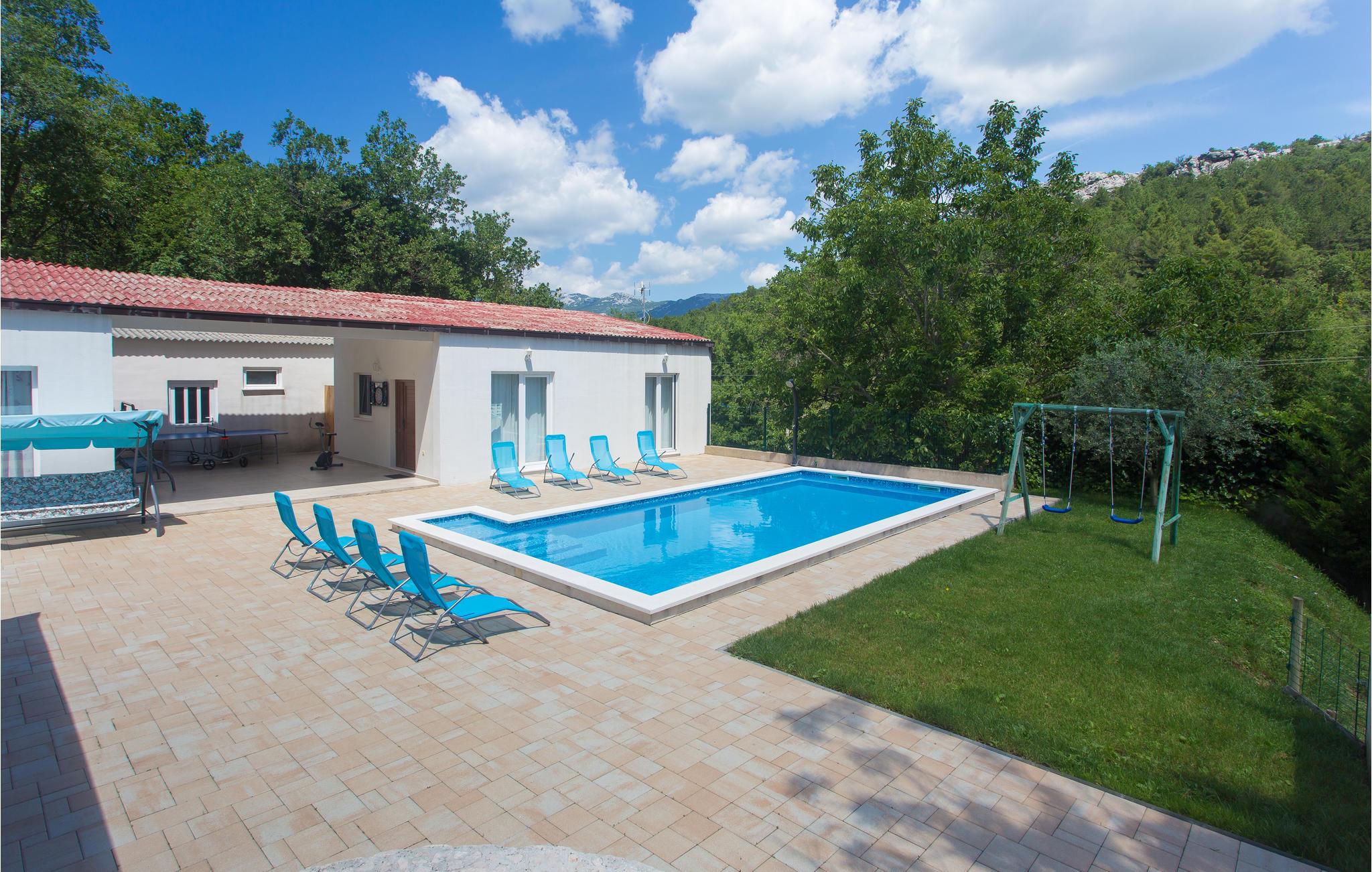 Tilbring ferien i et dejligt lunt klima ved en skøn pool omgivet af natur. Her ligger to huse der udgør en samlet ferieenhed på en lukket grund. De to huse er i et plan og i det ene er der køkken og soveværelse, mens det andet har to soveværelser. Poolen bliver feriens naturlige midtpunkt, hvor der også er gynge og trampolin for børnen. Den lille feriebebyggelse ligger i den lille rolige landsby Svinisce, en del af Omis opland. Omis er derudover et besøg værd med den gamle middelalderby og sandstrandene omkring byen er desuden også dejlige.