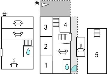 Badeværelse 5m2 (nr. 2) - WC. Varmt og koldt vand. Bruser
