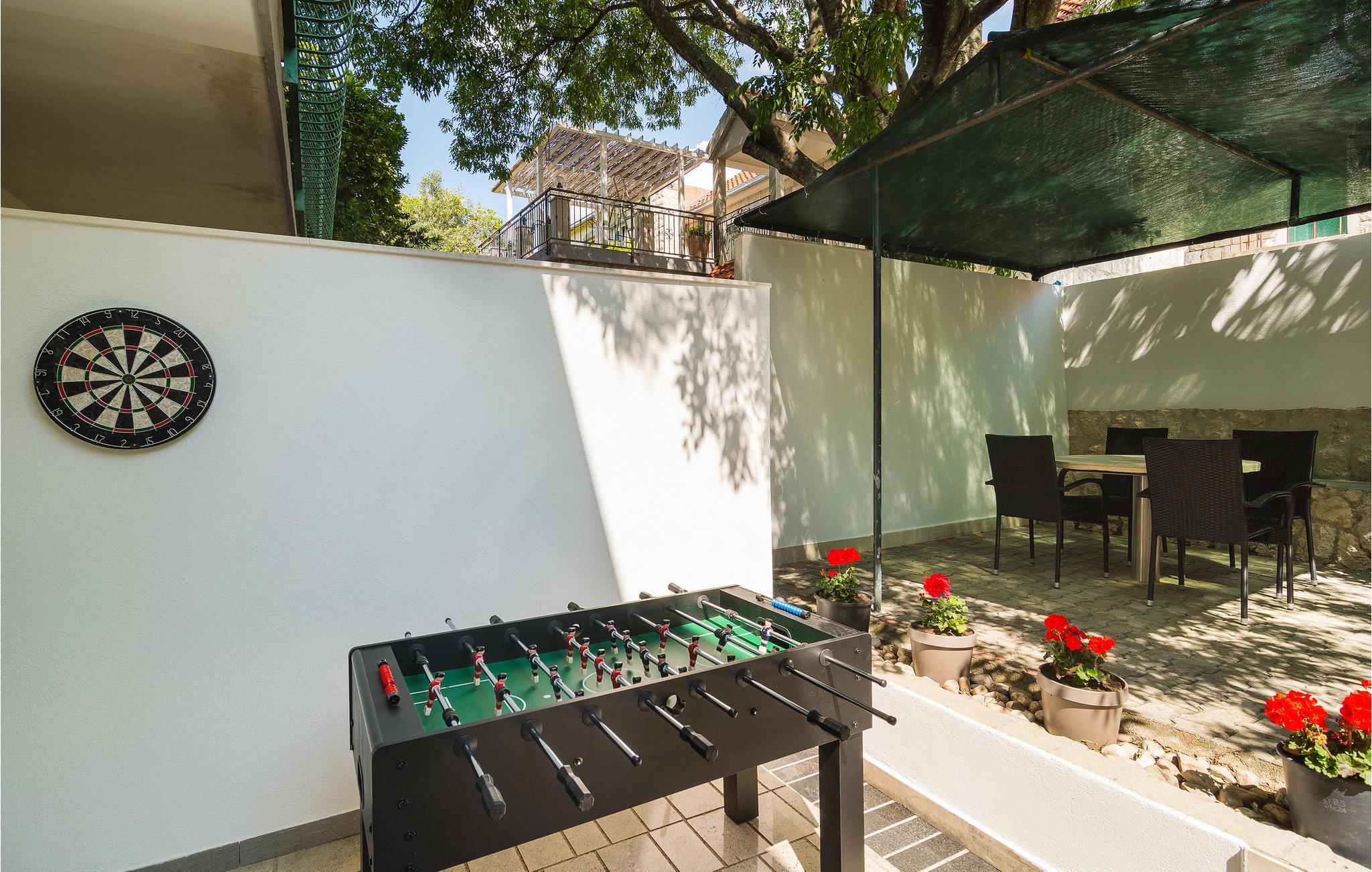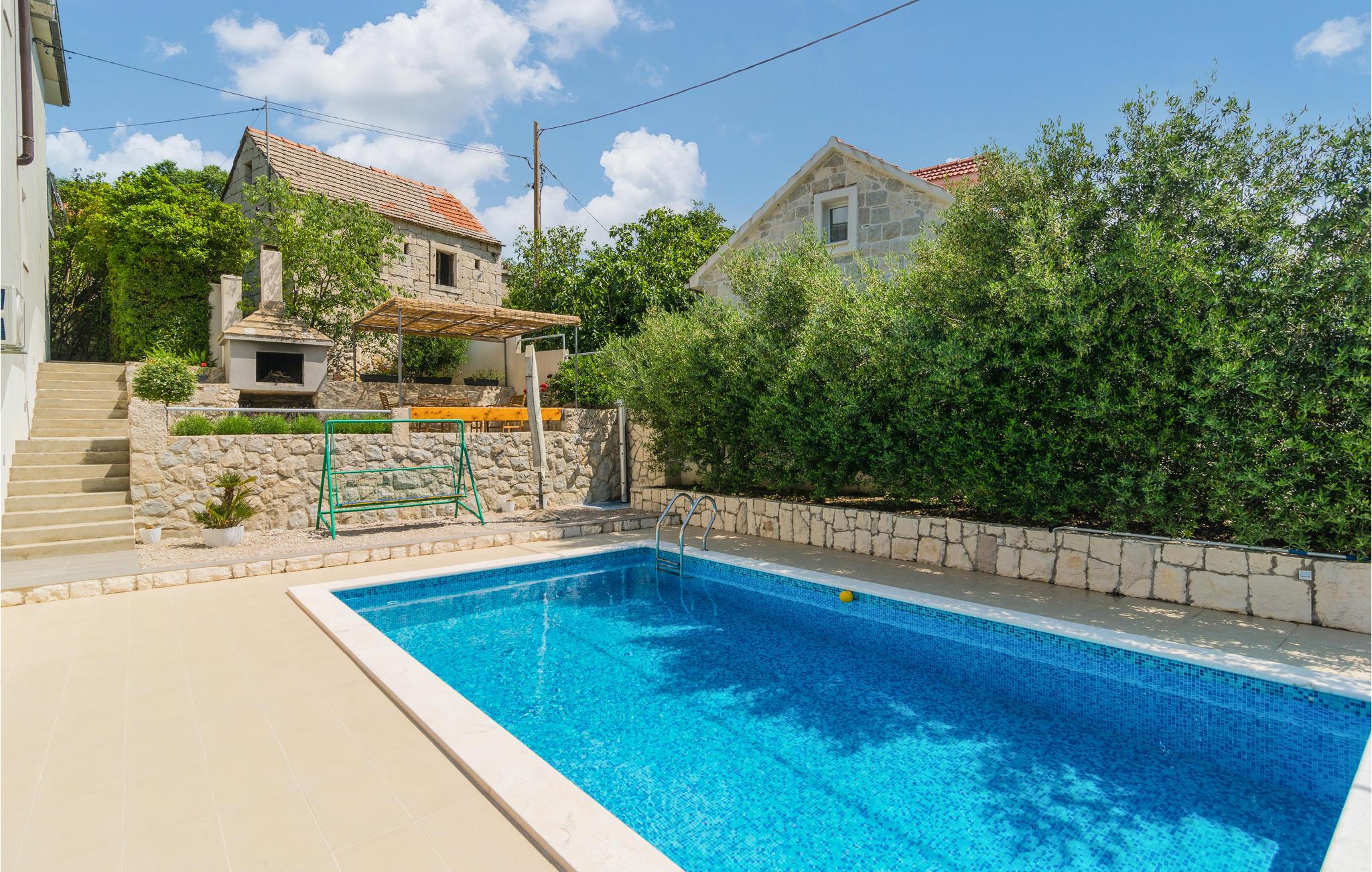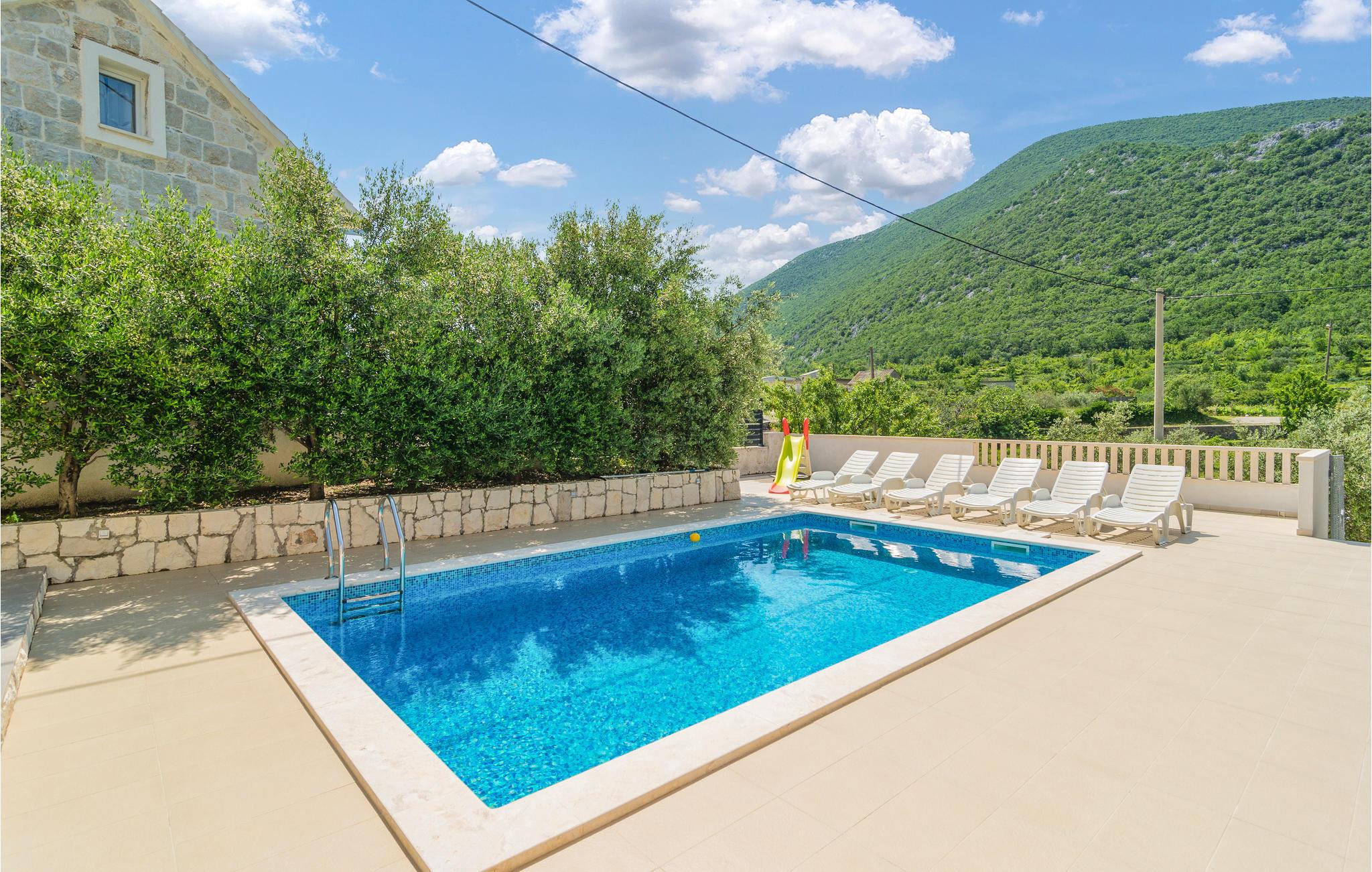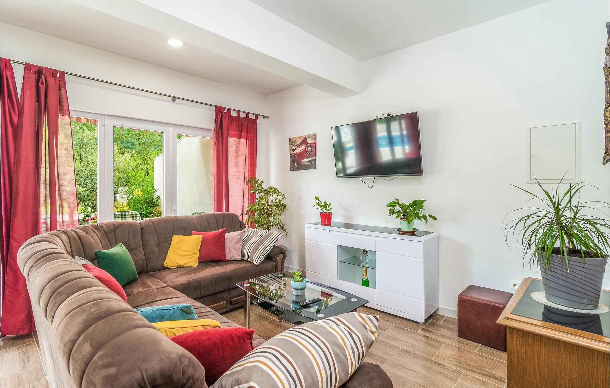 I Omis' bagland ved siden af floden Cetina og i den lille by Kucice ligger dette venligt indrettede halve dobbelthus. Fra hovedindgangen på nordsiden kommer i op på 1. sal, hvor der er et køkken og en dagligstue med terrasse. Til 2. sal kommer I ad indendørs trapper, her ligger soveværelserne og en terrasse med udsigt over landskabet. Stueetagen og poolområdet kan nås ad udendørs trapper. Ved siden af parkeringspladsen er der en overdækket terrasse med sommerkøkken og et glasdækket område med havemøbler, hvor I kan tilbringe mange hyggelige timer i det fri. Se byen Omis, der er rig på muligheder for underholdning og sport såsom cykling, rafting og zipline.