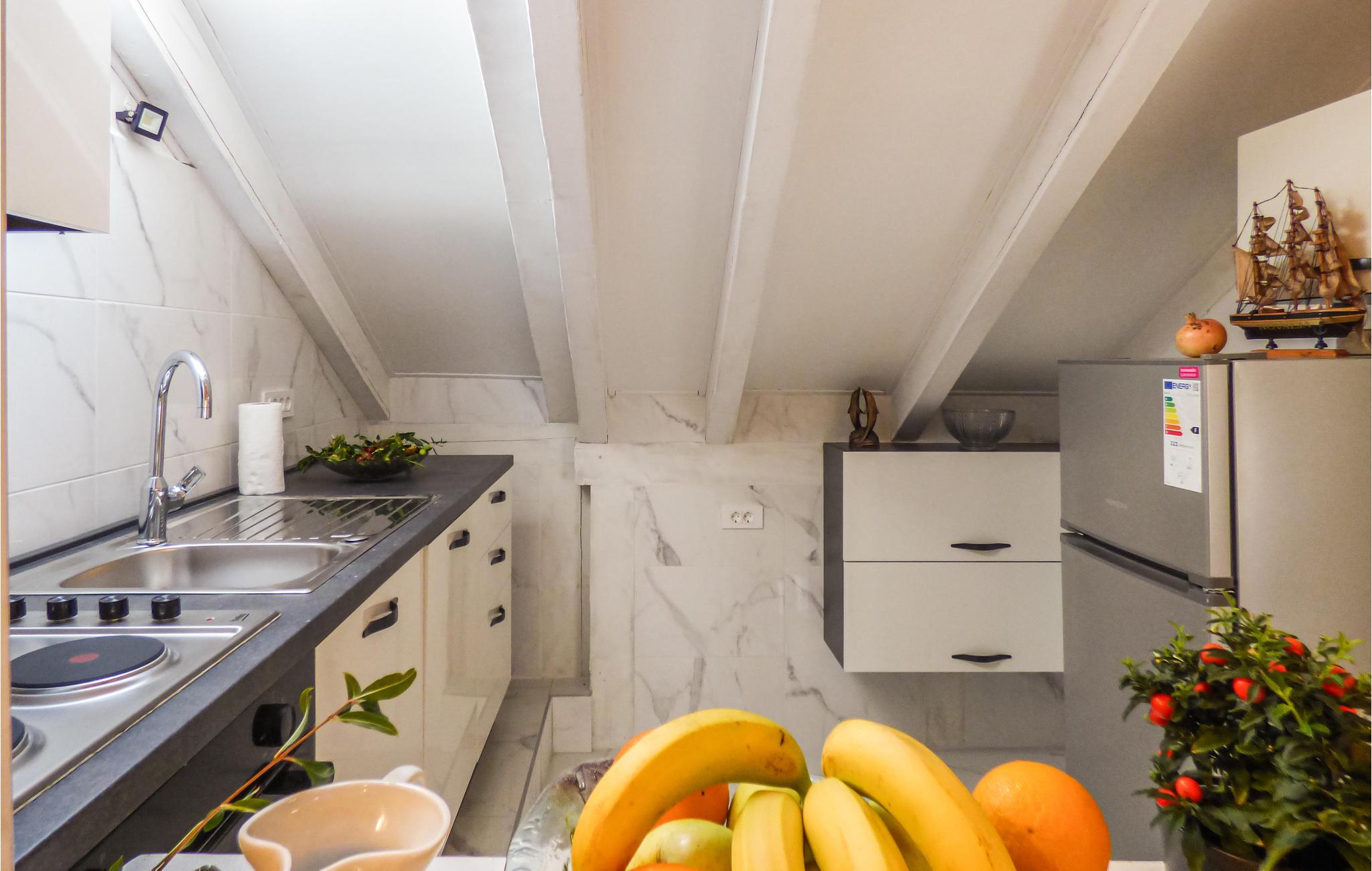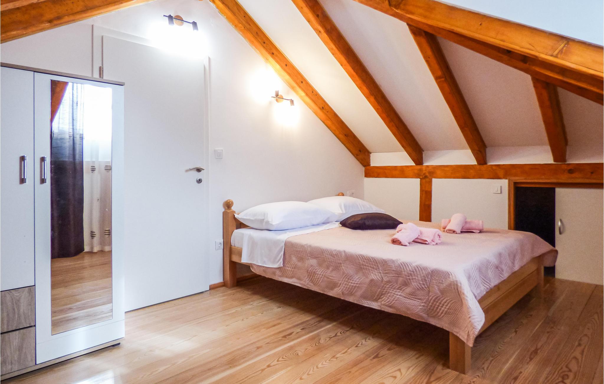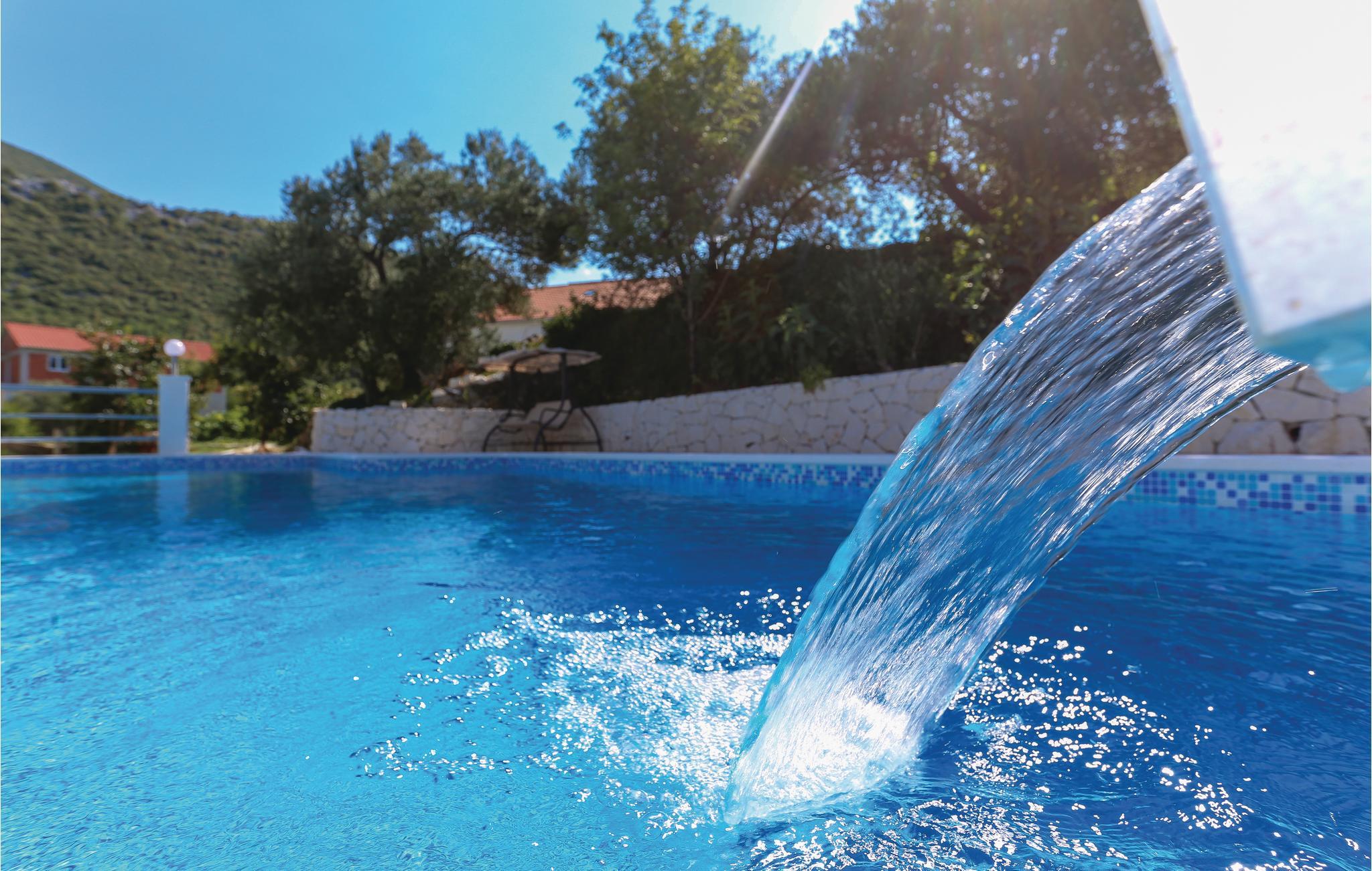I Omiš bagland, i landsbyen Kucice nær Cetina slugten ligger dette feriehus i tre etager. I stueplan ligger det godt udstyrede køkken og en stue. En udendørs trappe fører op til første og anden sal, der er forbundet via en vindeltrappe. De fire soveværelser ligger på øverste etage med en laveste loftshøjde på 150 cm – der er skråvægge. En 35 m lang sti, der forløber bag ejers andet hus, fører til swimmingpoolen med terrasse til solbad, en udendørs whirlpool og en pavillon med en betagende udsigt over slugten og landskabet. En rigtig god feriebolig til en familie eller venner der gerne vil være sammen i ferien og nyde de lange kroatiske sommerdage. Prøv at rafte på floden Cetina, hvilket husejeren kan arrangere mod merpris og kast jer ud i de mange former for sommerunderholdning i Omiš. Tre klimaanlæg er begrænset til 35 timer om ugen.