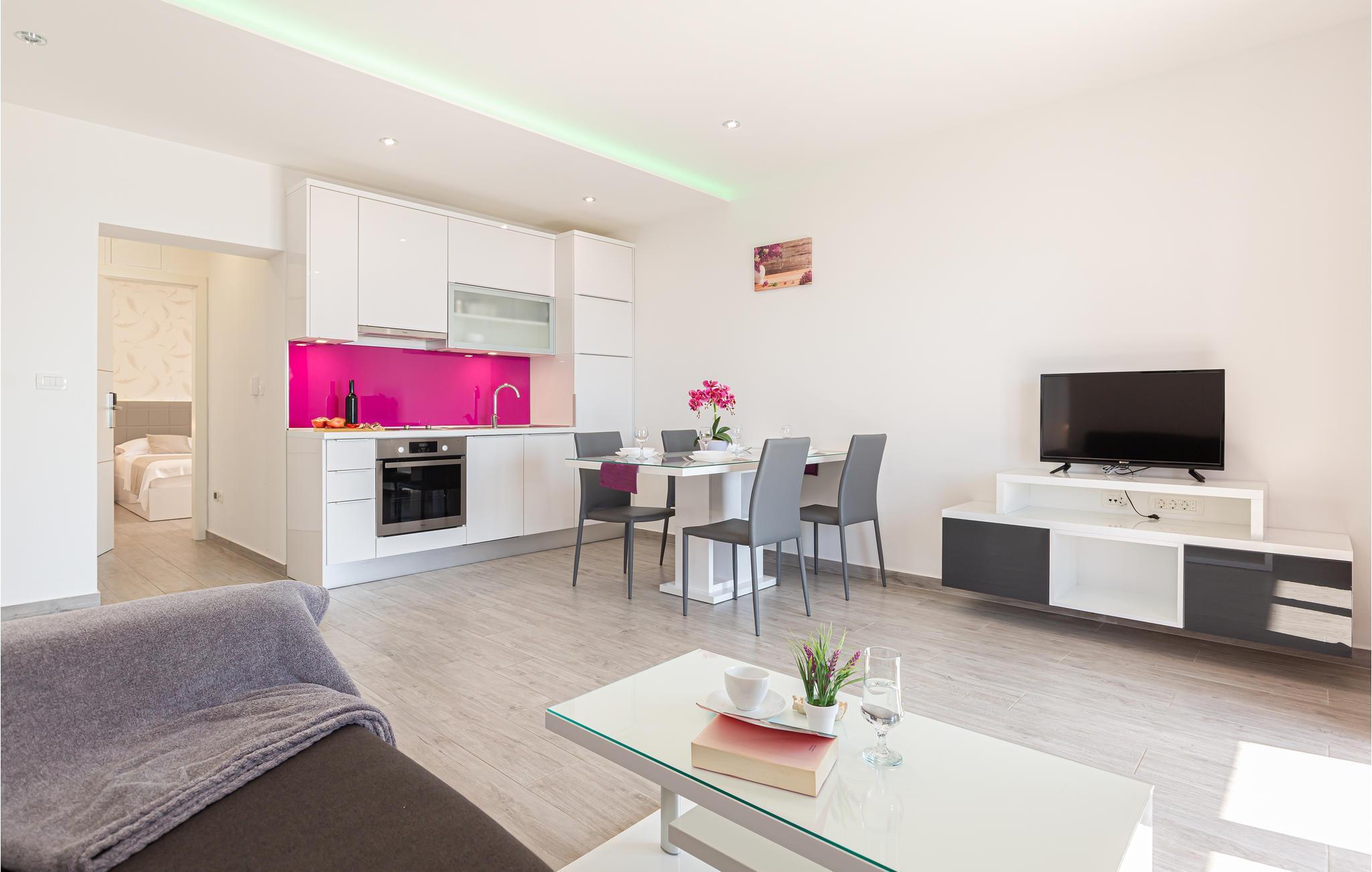 Disse indbydende indrettede ferielejligheder ligger i en privat ejendom i den lille by Medici. I stueplan ligger lejlighederne CDF535 og CDF536, på første sal CDF532 og CDF534 og på anden sal CDF531 og CDF533. Lejlighederne er godt og praktisk indrettet til en afslappet ferie. Den fælles pool, med massagebruser og et vandfald, sørger for afkøling på de hede sommerdage, mens det fælles aktivitetsrum i stueplan sørger for afvekslende underholdning. Byen er kendt for sine skønne strande, der er en vej mellem stranden og huset. Det tager kun 10 minutter at køre til den livlige ferieby Omis.