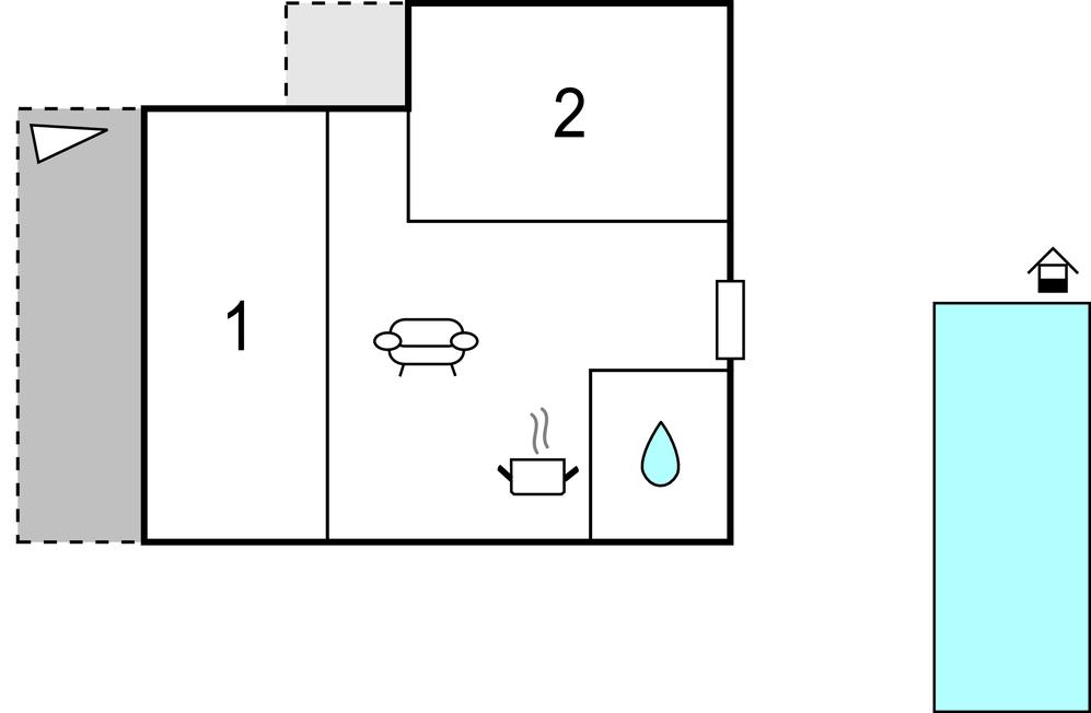 Opholdsstue/køkken - 1 Soveplads. (Sofa, madras eller lignende).