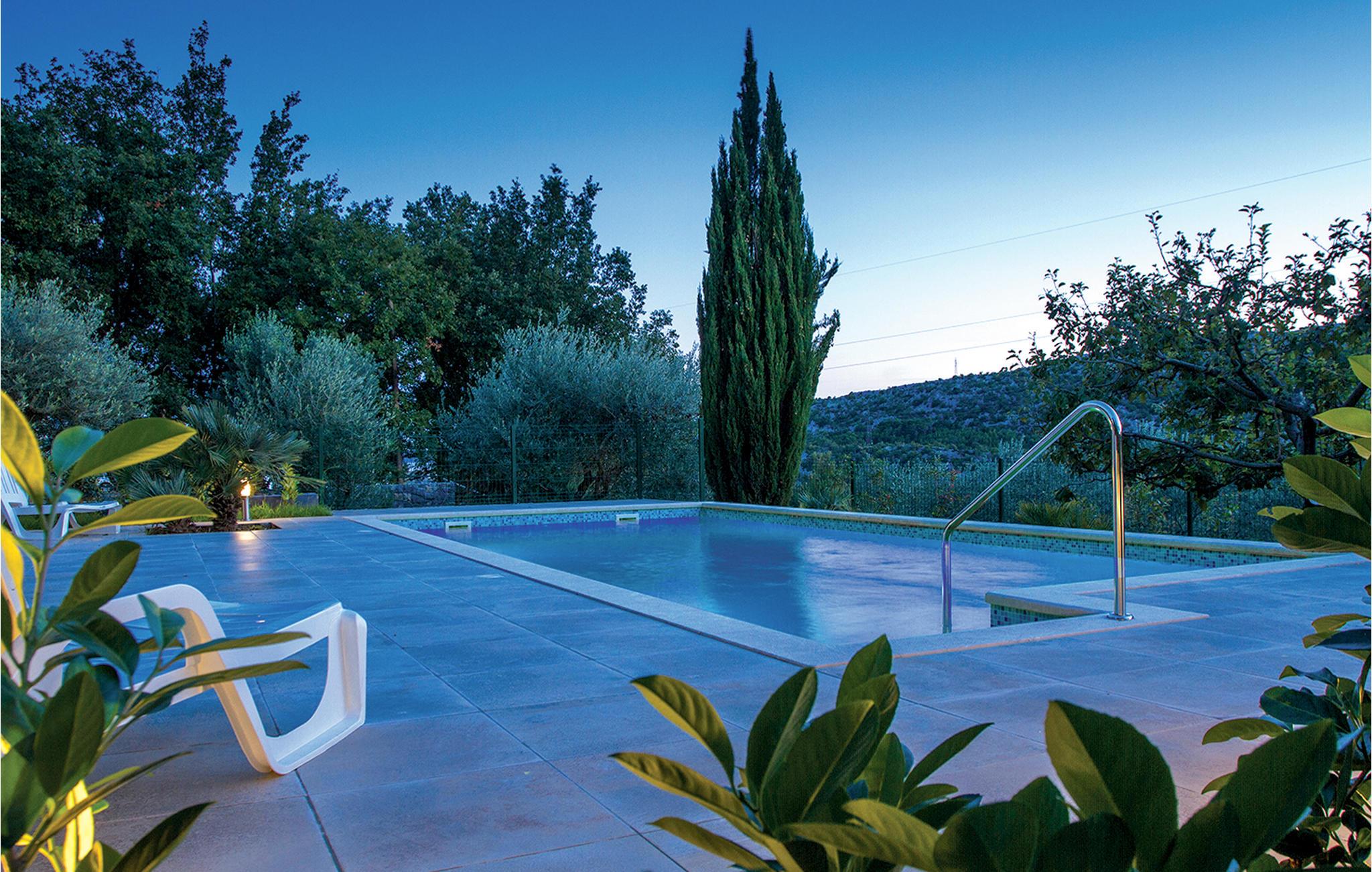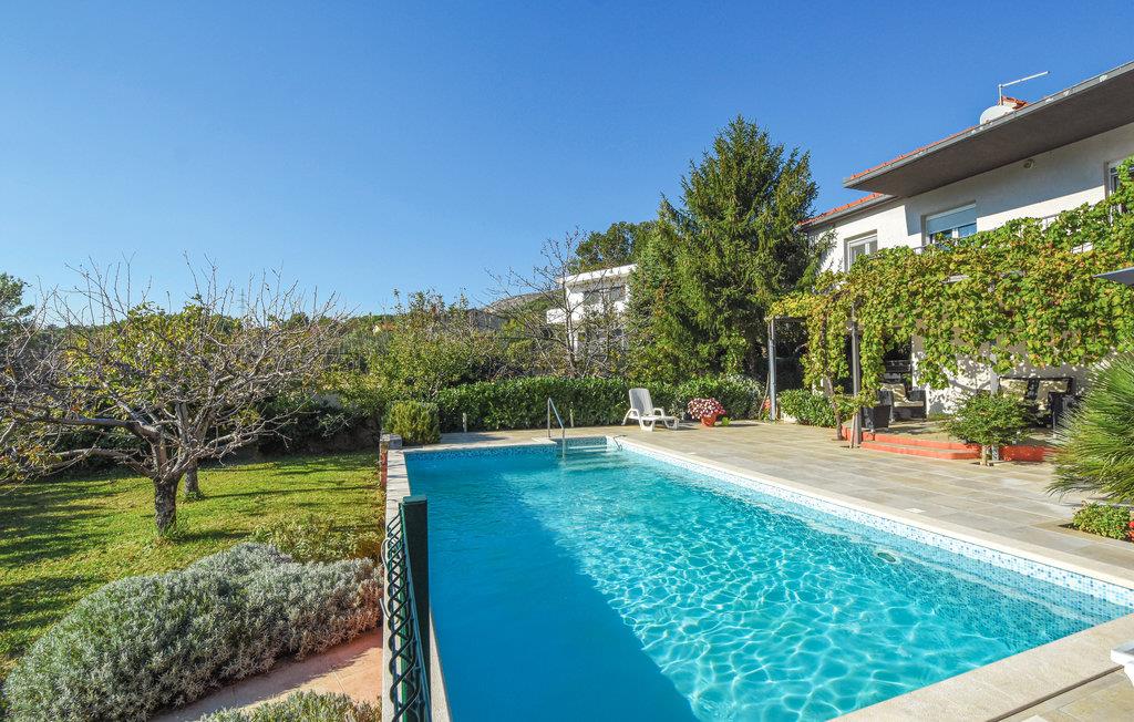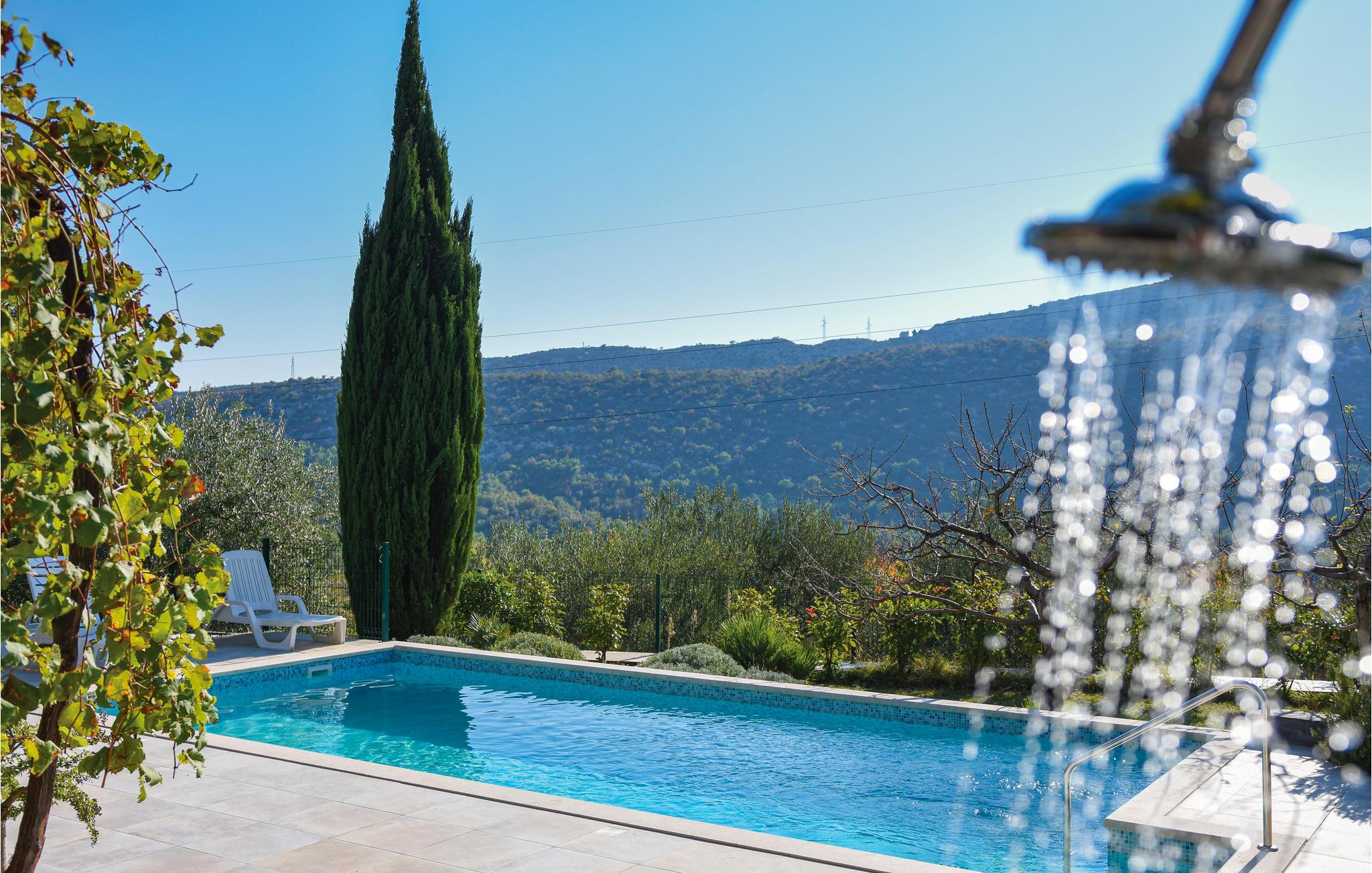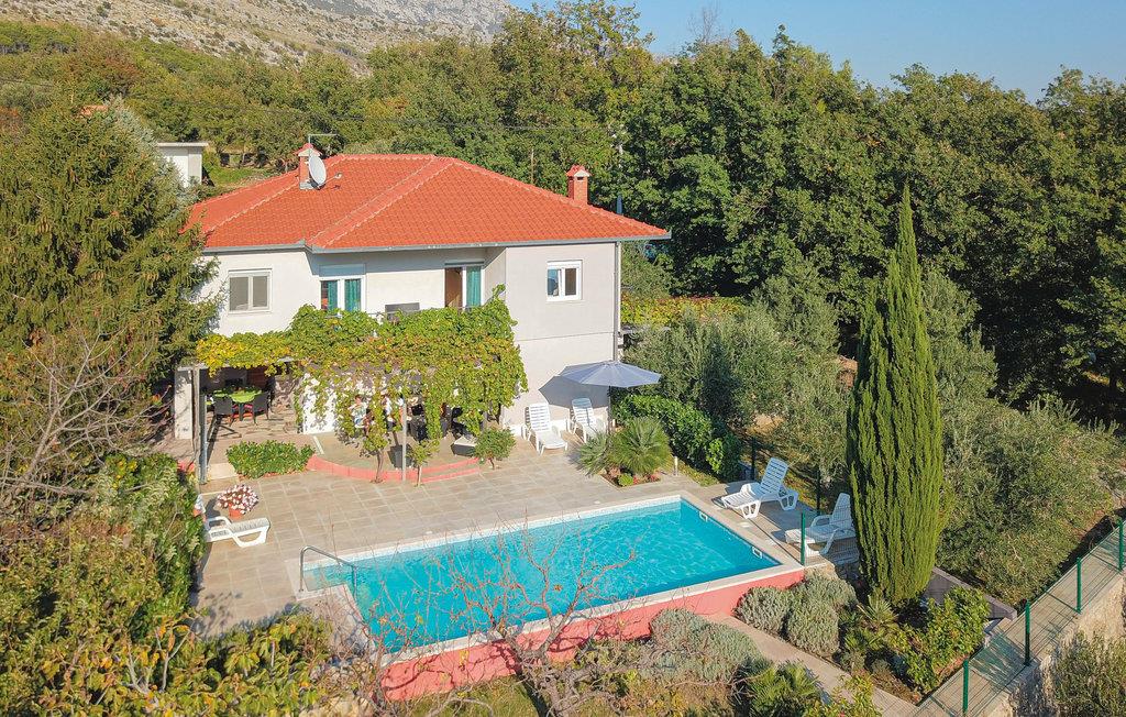 I den lille by Naklice ligger dette komfortable feriehus som I skal vælge, hvis I vil holde en aktiv ferie. Fra stuen ud i haven er der et par trin ned. Huset er omgivet af frodigt grønt, her ligger poolen, hvor I kan tage en forfriskende svømmetur på de hede dage. Da her er både udendørs køkken og en grill, behøver I ikke gå indendørs for at lave mad – men kan tilberede den udendørs, og spise den helt frisklavet på den overdækkede terrasse. Byen Omis med skønne strande og talrige underholdningsmuligheder, som fx at rafte på floden Cetina sætter prikken over i’et i ferien. Besøg også den historiske by Split, 18 km væk – en oplevelse I ikke må gå glip af.