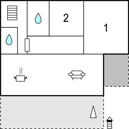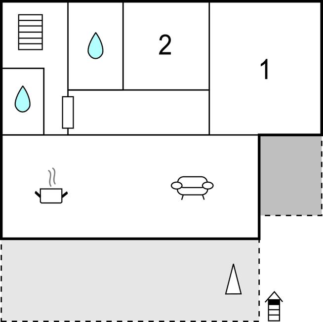 Opholdsstue/køkken - 2 Sovepladser. (Sofa, madras eller lignende).