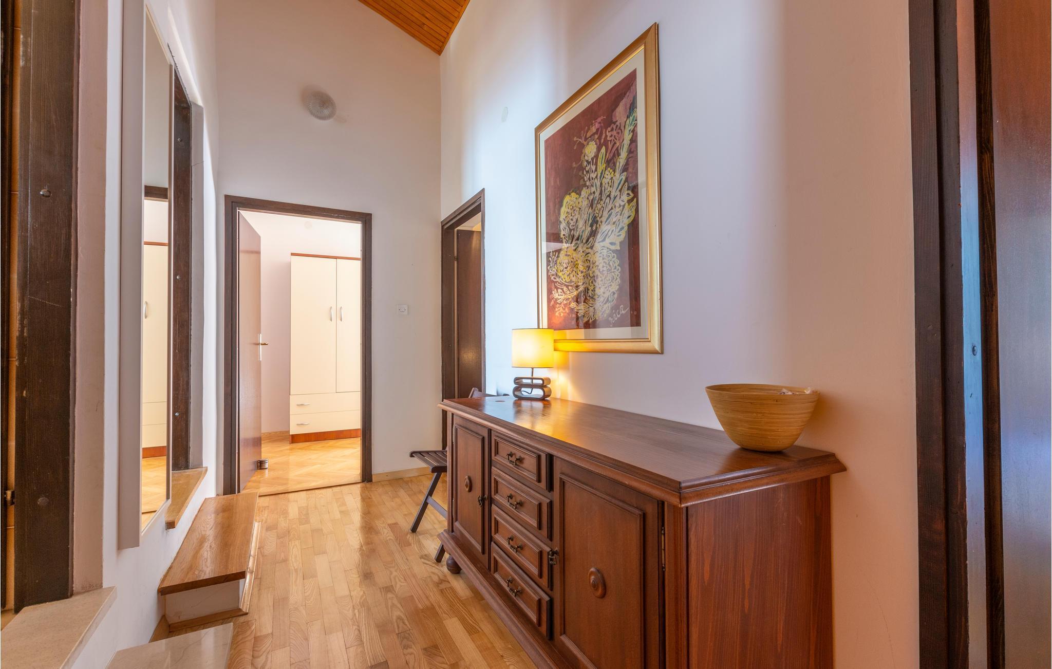 Dette feriehus ligger i et kuperet terræn i den lille landsby Pisak. Det består af to etager. På første sal er der et køkken med spisestue, et badeværelse med bruser og en stue med en rummelig terrasse med panoramaudsigt over havet og øerne. En intern trappe fører til anden sal med et badeværelse med badekar, fire soveværelser og tre separate altaner. Huset ligger på en bakke med trapper, der fører til stueetagen, hvor der er en udendørs grill som er nem at lave lækker feriemad på. Tilbring lange solskinsdage på de lokale kiesstrande, der ligger ud til det rene, lune og krystalklare hav. Besøg både Omis og Makarska, to byer med mange underholdnings- og aktivitetsmuligheder for alle aldersklasser.