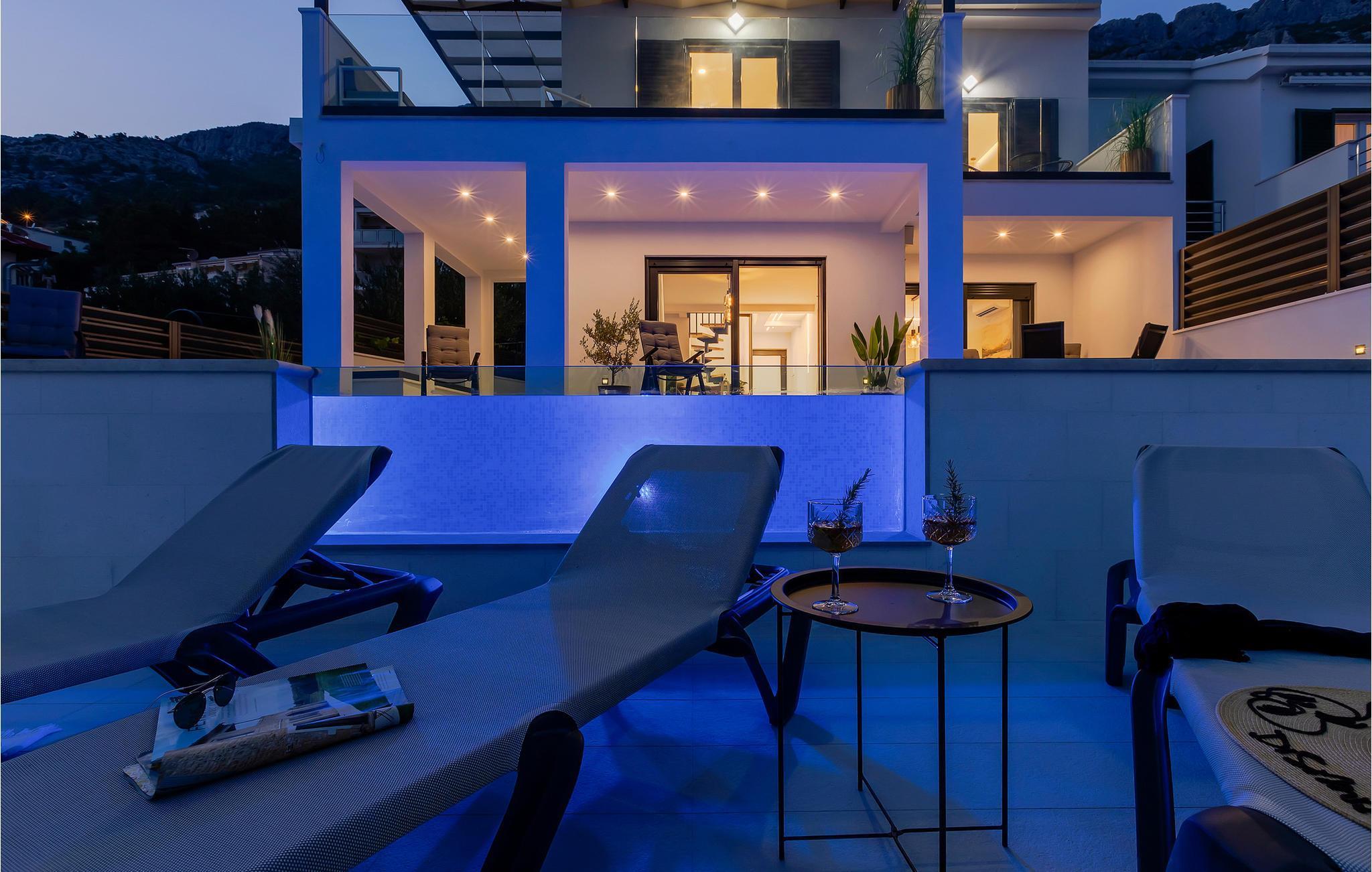 Træd ud på terrassen som det første om morgenen og beundr den fantastiske havudsigt, mens I nipper til jeres første kop kaffe. Tag en forfriskende dukkert i poolen, nyd en afslappet morgenmad og slap af med en kølig drink på liggestolene. Om aftenen er terrassen et vidunderligt sted at se solnedgangen sammen.