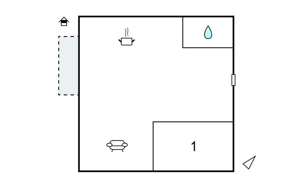Badeværelse 5m2 (nr. 1) - WC. Varmt og koldt vand. Bruser