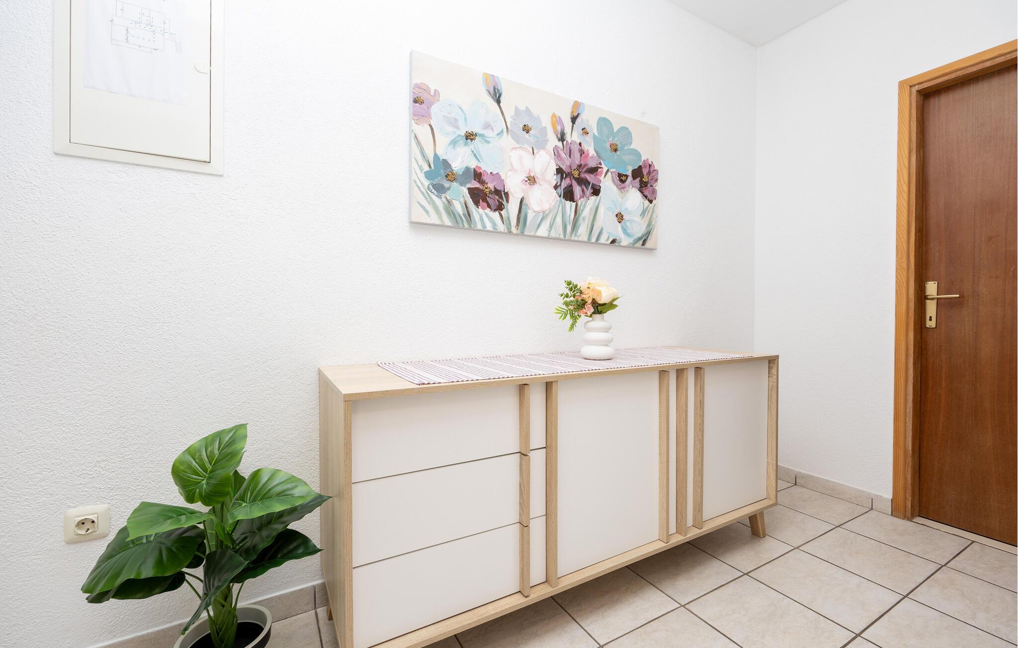 Velkommen til Slime, et sted nær både den vilde flod Cetina og Adriaterhavet. Lejligheden har en ideel beliggenhed for dem, der elsker udendørs aktiviteter. I kan fx både bade i- og rafte på floden. Langs floden op i kløften er der idelle betingelser for smukke vandreture, og de omkringliggende naturparker, såsom Biokovo-bjergene, er også perfekte til dette.