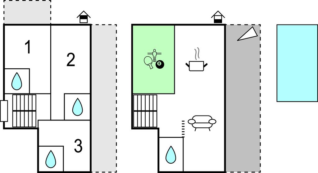 Badeværelse (nr. 3) - WC. Varmt og koldt vand. Bruser