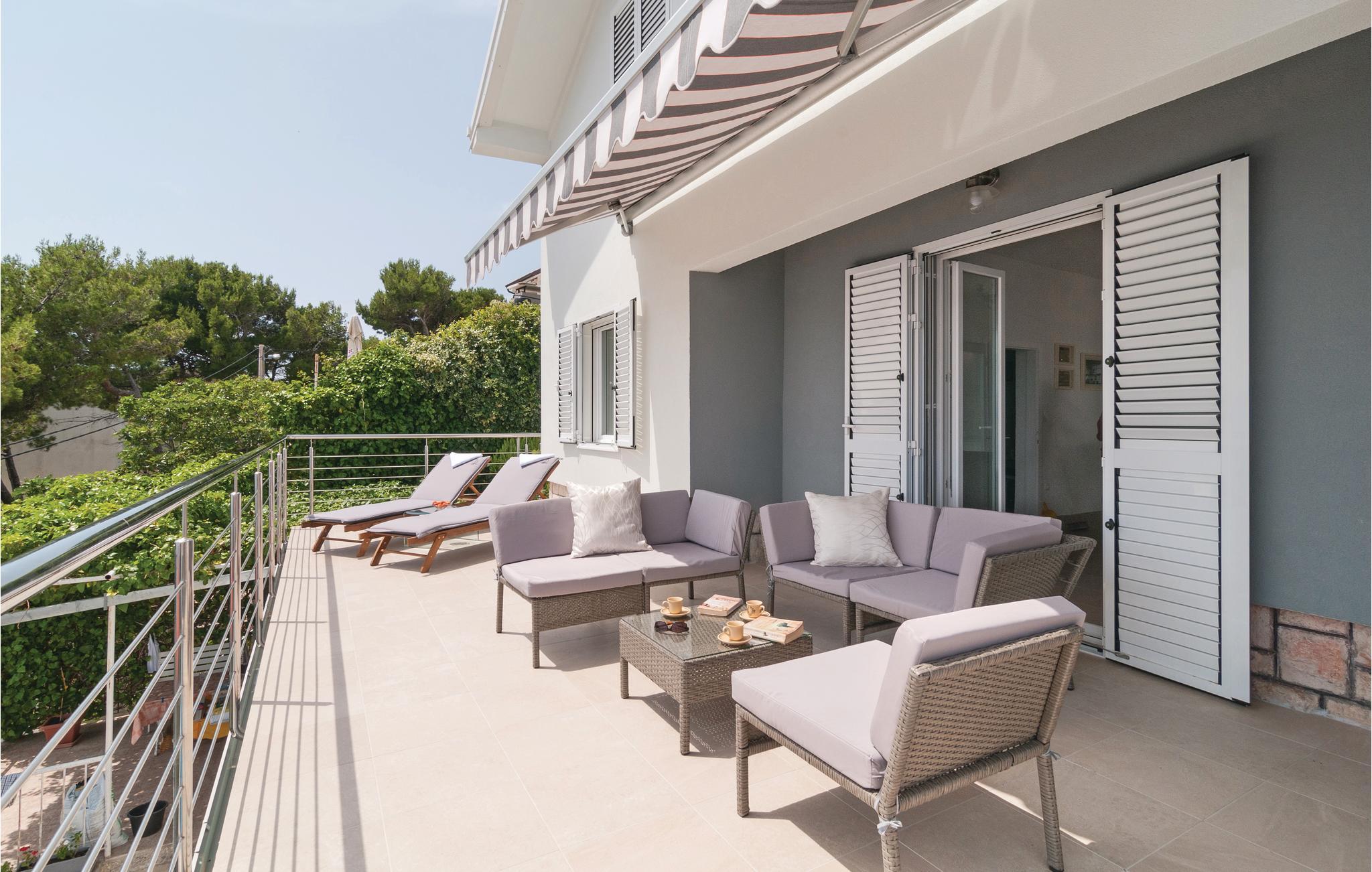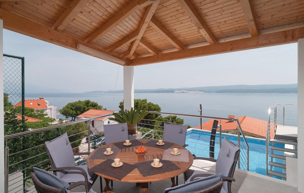 Dette feriehus ligger i en dejlig lille kystby. Huset er fordelt på stueplan og øverste etage, som I kommer op til ad en indendørs trappe og som har en laveste loftshøjde på 120 cm. Til huset hører en lille have og en pavillon, der ligger ved poolen, hvor I kan svømme og nyde synet over havet samtidig. Men I kan også gå ned til den nærliggende kiesstrand, der ligger ud til det krystalklare hav. I byen Omis er der mange former for underholdning for alle aldersklasser. I kan fx rafte på floden Cetina eller besøge fæstningen med pirater, hvor I kan se drabelige slag. Besøg også de omliggende små øer.