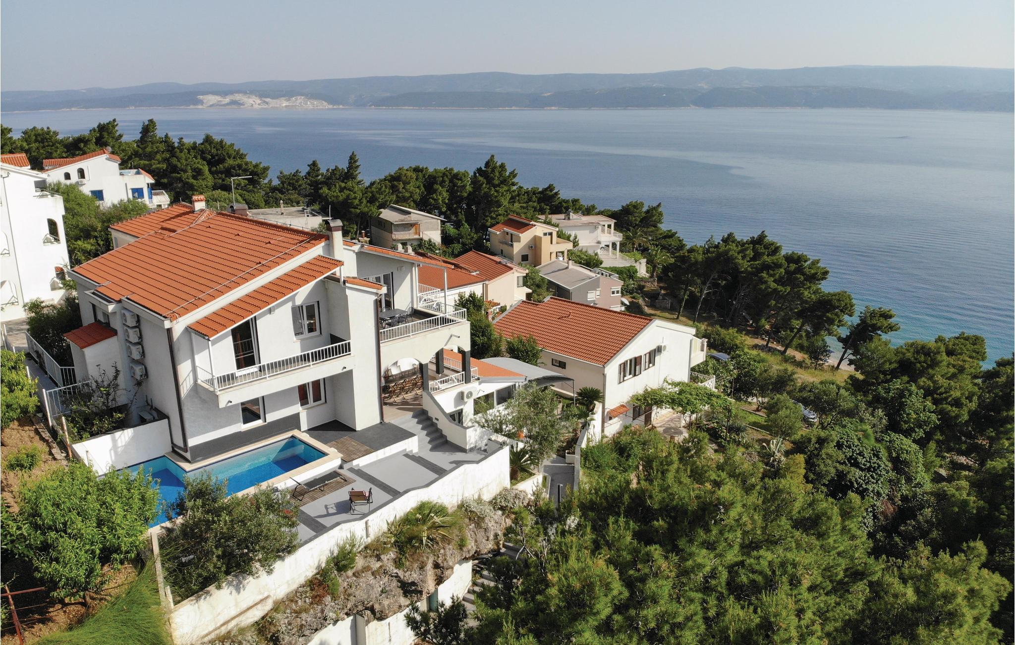 Et elegant feriehus beliggende i en lille charmerende landsby på Omis' riviera, kun få meter fra havet. Dette rummelige og meget smagfuldt indrettede feriehus består af to beboelsesenheder, der er forbundet ved hjælp af en udendørs trappe. I har en swimmingpool til absolut badesjov. Herfra har I også en fantastisk udsigt. Husejeren bor på grunden. Husets placering er perfekt til oplevelser for både krop og sjæl. Kun ca. 20 m væk ligger havet. Der er en stejl sti op til huset. I når kiselstranden ad en lille sti, som går gennem en skyggefuld pinjeskov. Den vidunderlige havneby Omis ligger kun 3 km væk, her finder I dejlige lange, familievenlige strande og talrige tilbud til jeres fritid.