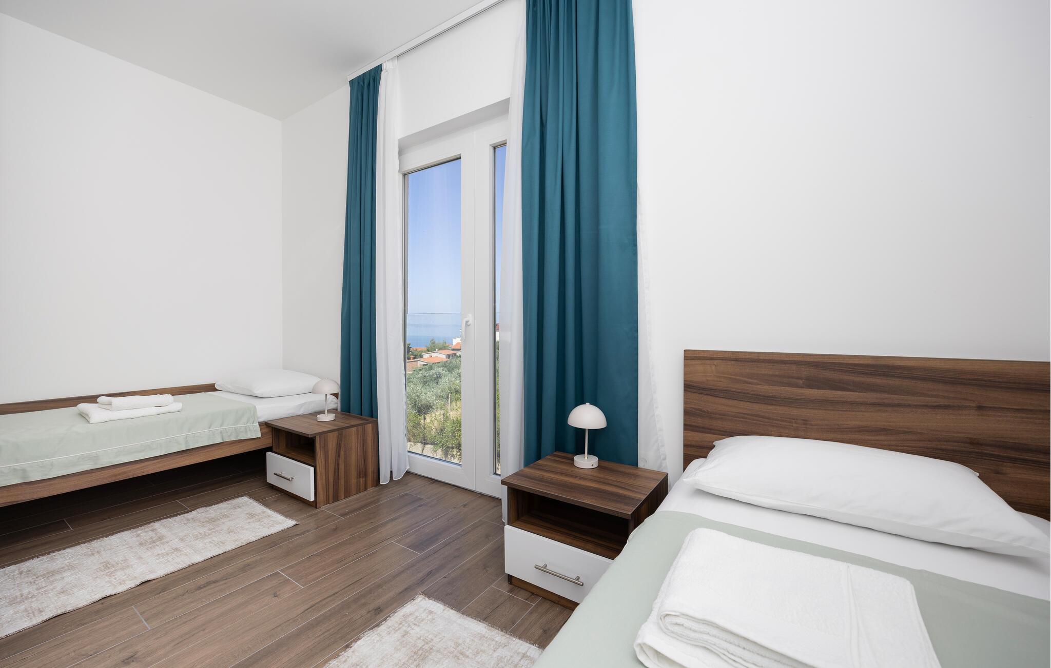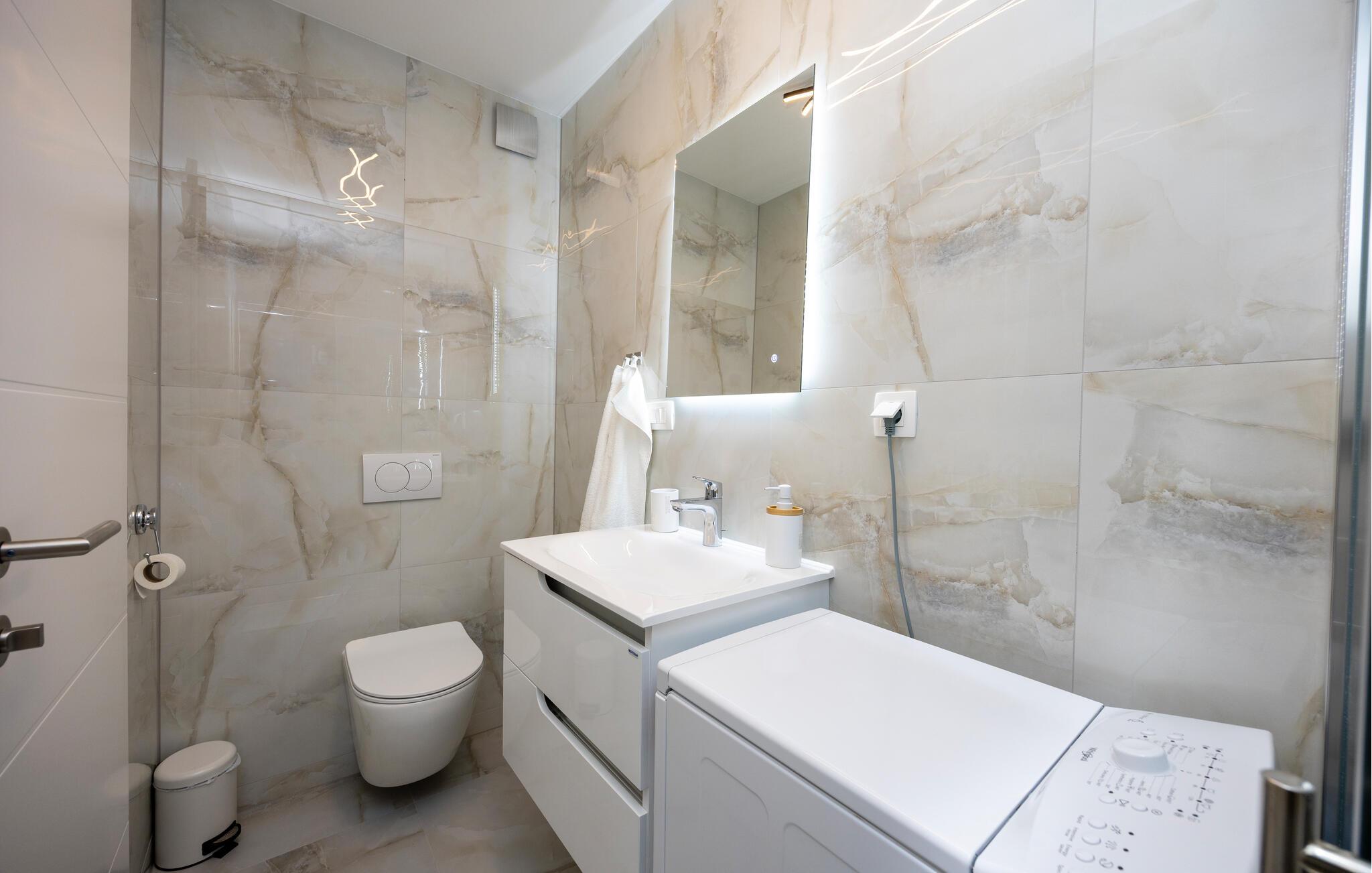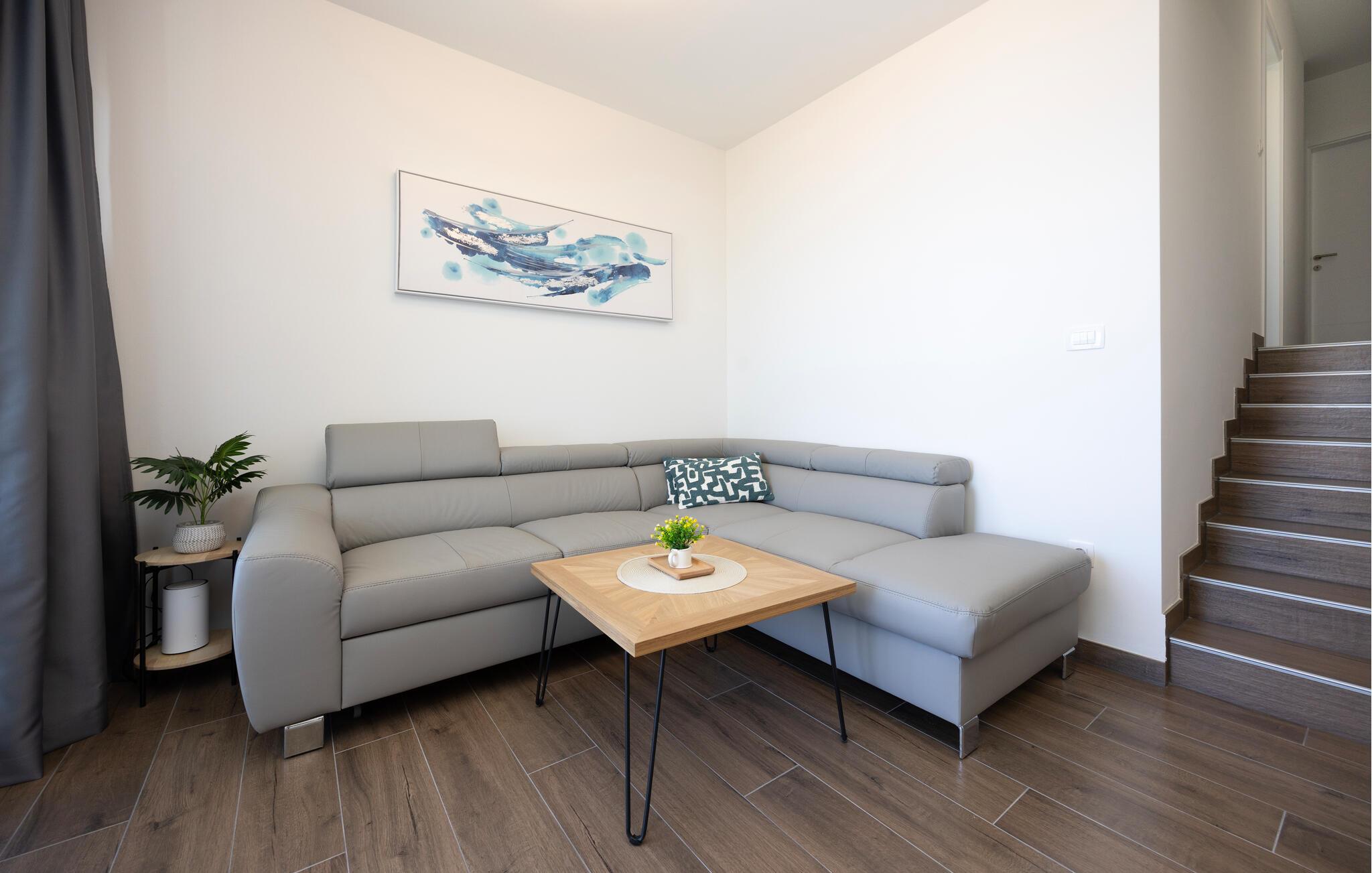 Denne moderne lejlighed tilbyder alt hvad I behøver for et behageligt ophold. Nyd den ideelle beliggenhed kun få minutters gang fra stranden og den nære beliggenhed til restauranter, caféer og butikker. Gør det behageligt i den store sofa i opholdsstuen, nyd måltiderne sammen ved spisebordet, og tilbered lækre retter i køkkenet. Lejligheden har også direkte adgang til terrassen med udsigt over Adriaterhavet.
