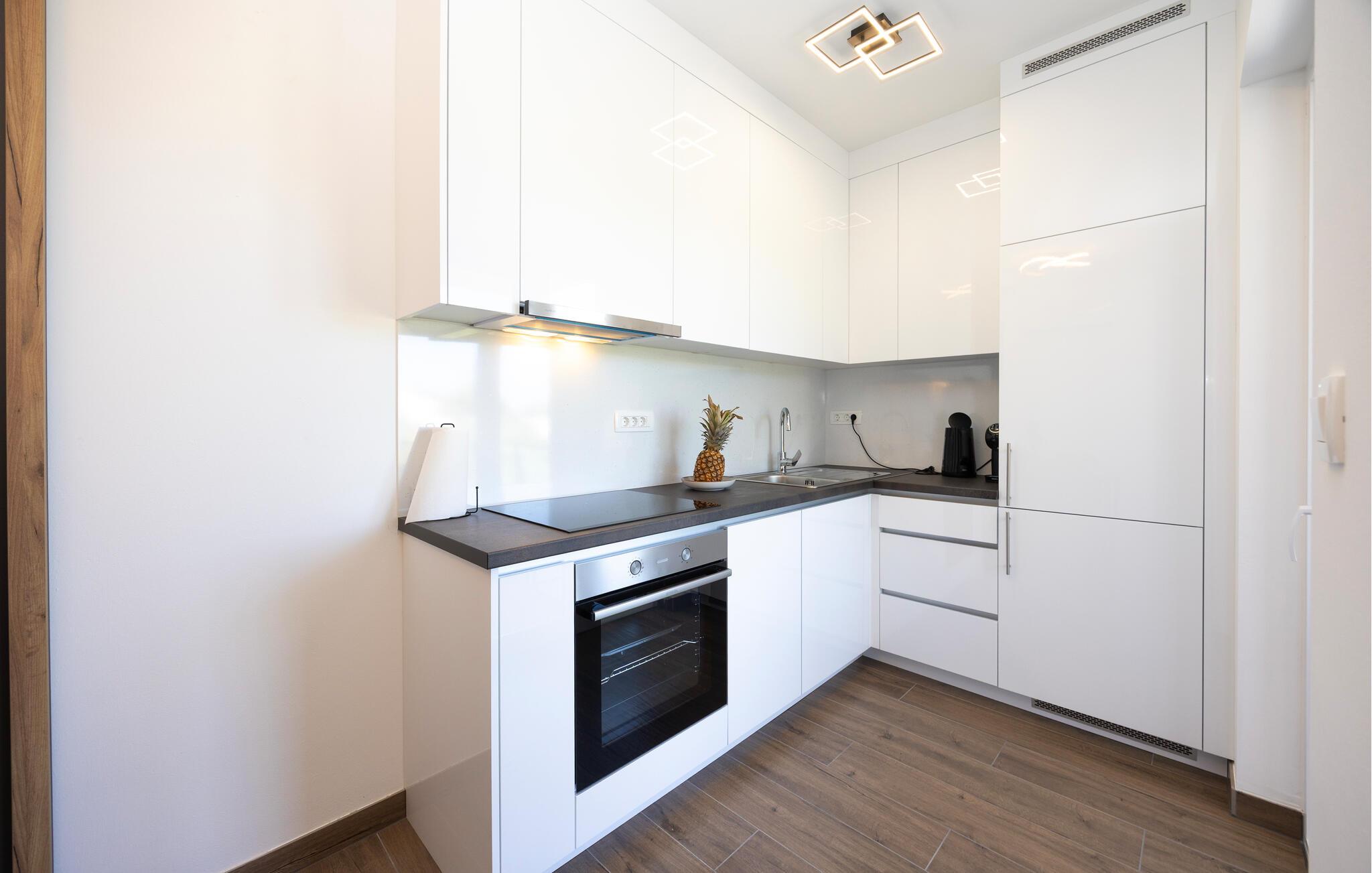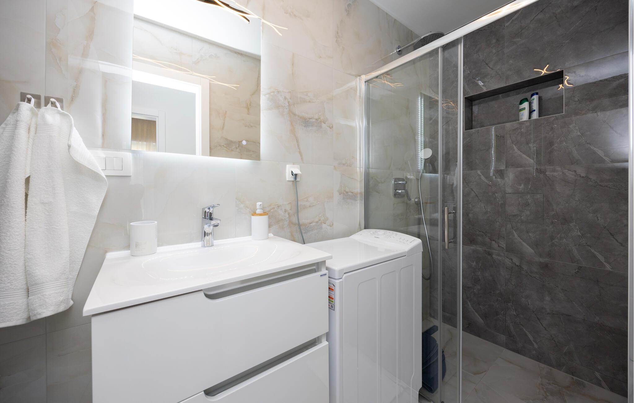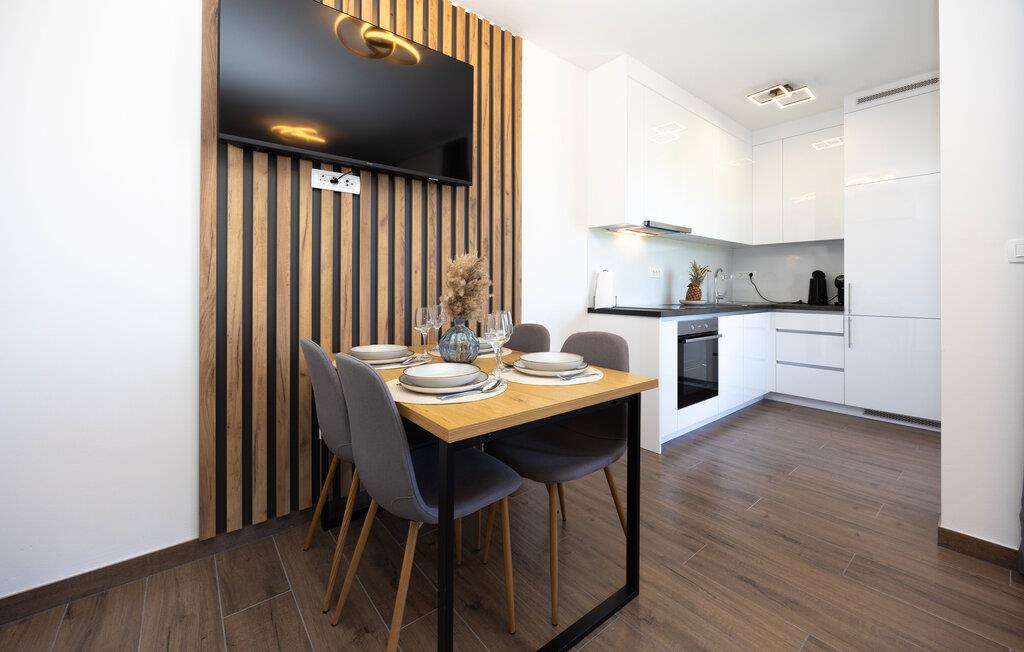 Denne moderne lejlighed tilbyder alt hvad I behøver for et behageligt ophold. Nyd den ideelle beliggenhed kun få minutters gang fra stranden og den nære beliggenhed til restauranter, caféer og butikker. Gør det behageligt i den store sofa i opholdsstuen, nyd måltiderne sammen ved spisebordet, og tilbered lækre retter i køkkenet. Lejligheden har også direkte adgang til terrassen med udsigt over Adriaterhavet.