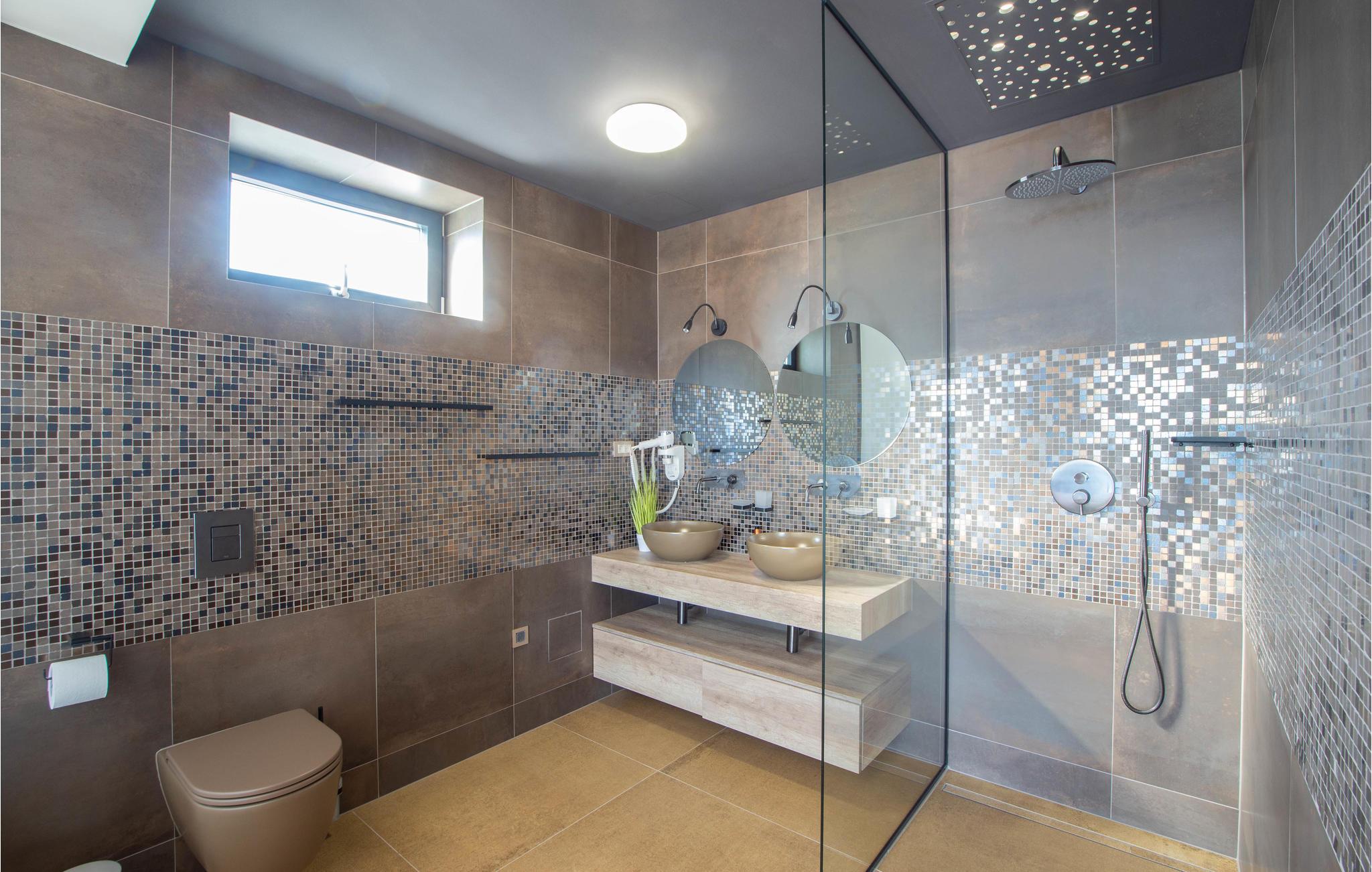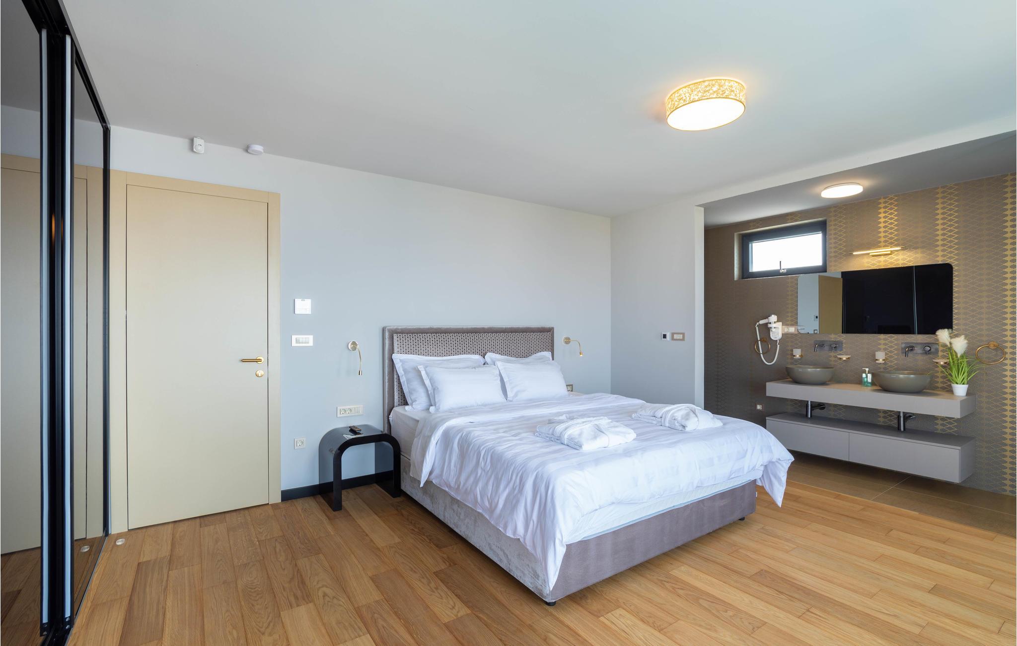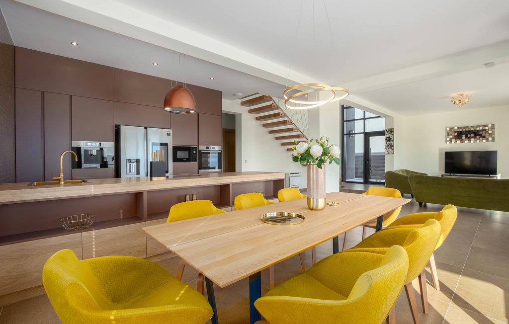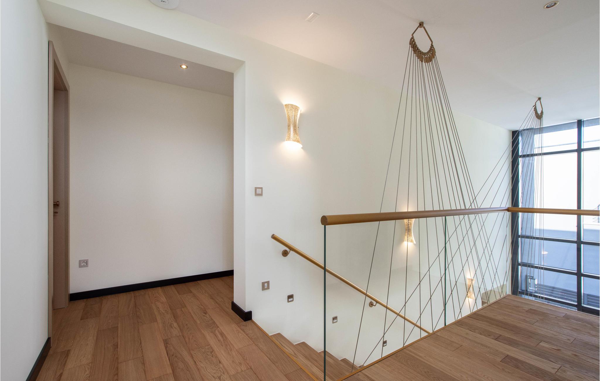 Dette attraktive feriehus lader intet tilbage at ønske! Huset er af høj kvalitet og moderne og strækker sig over to etager. I stueetagen finder I det moderne køkken og et fitnessområde, hvor I kan holde jer i form på ferie og slappe af i saunaen efter en lang dag. I kan nå første sal via interne trapper. Der finder I de vidunderlige soveværelser med dobbeltsenge og flere badeværelser af høj kvalitet.