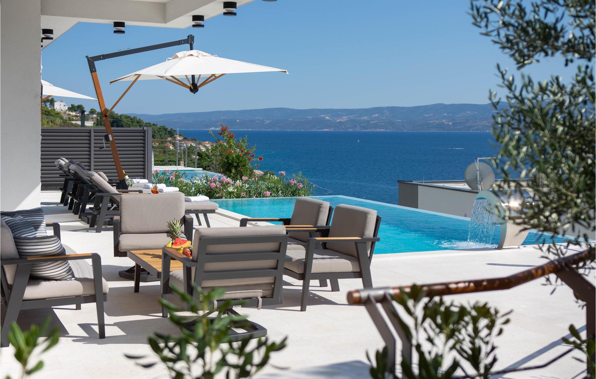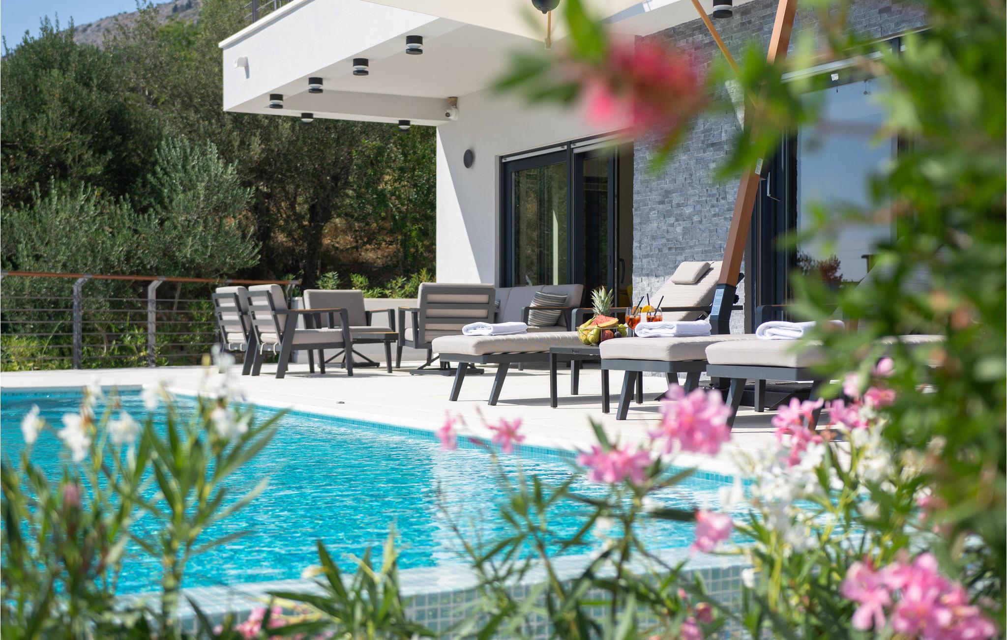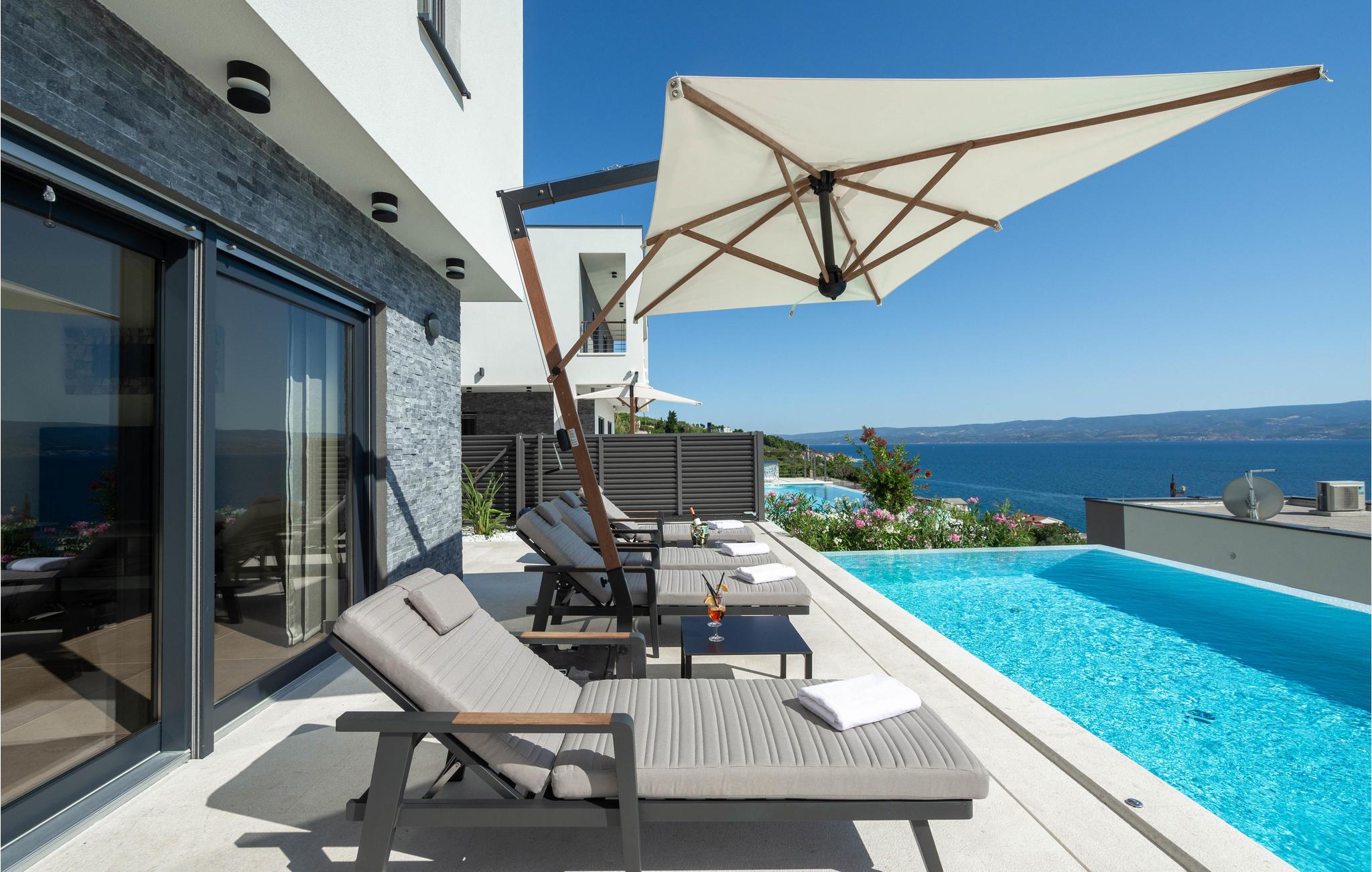 Ved poolen med havudsigt kan I slappe af i solen og slukke for hverdagen. Takket være flere altaner og en overdækket terrasse finder I altid et sted at nyde udsigten eller en kølig drink. Hop i poolen på varme sommerdage og nyd afkøling.