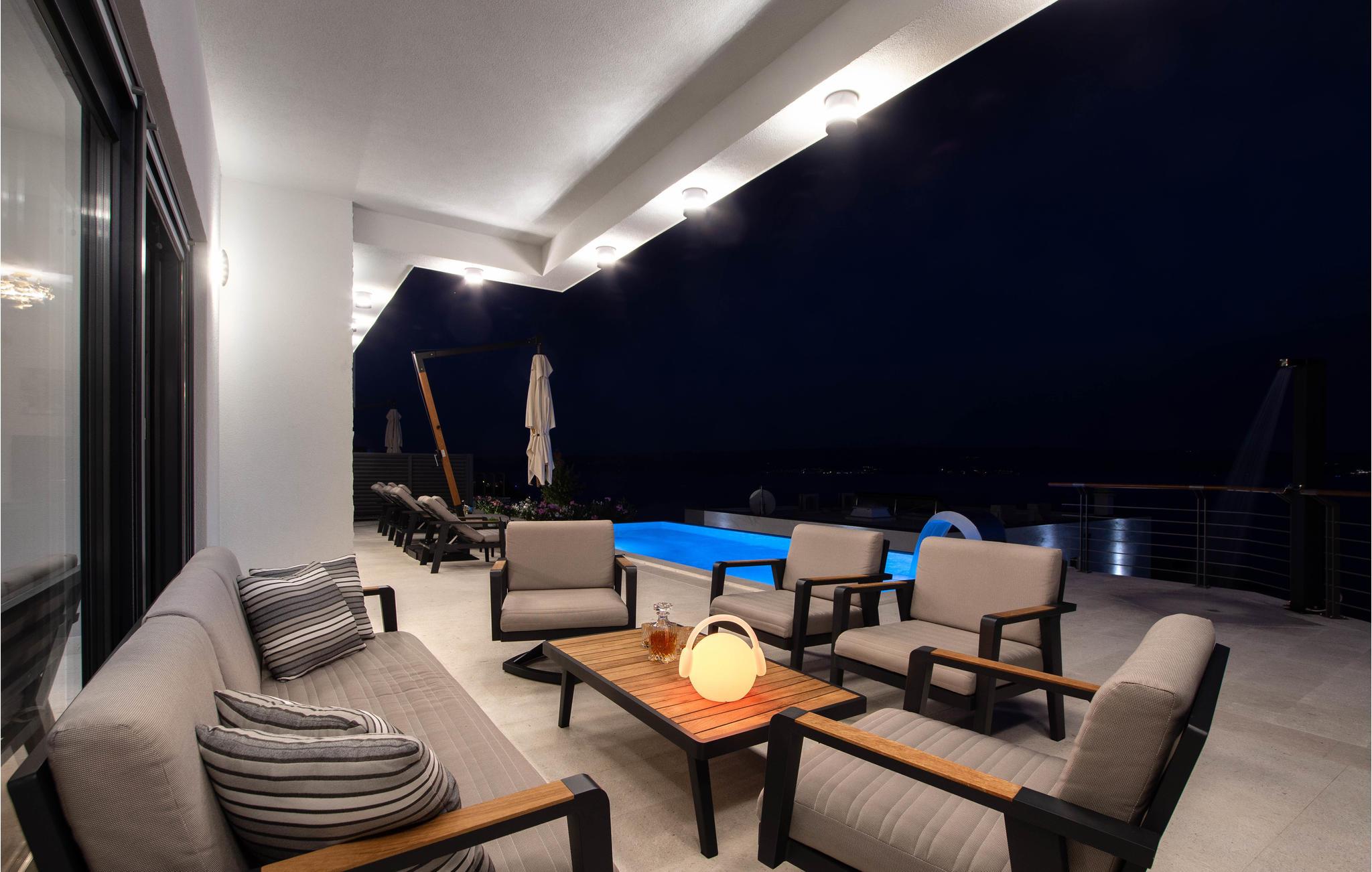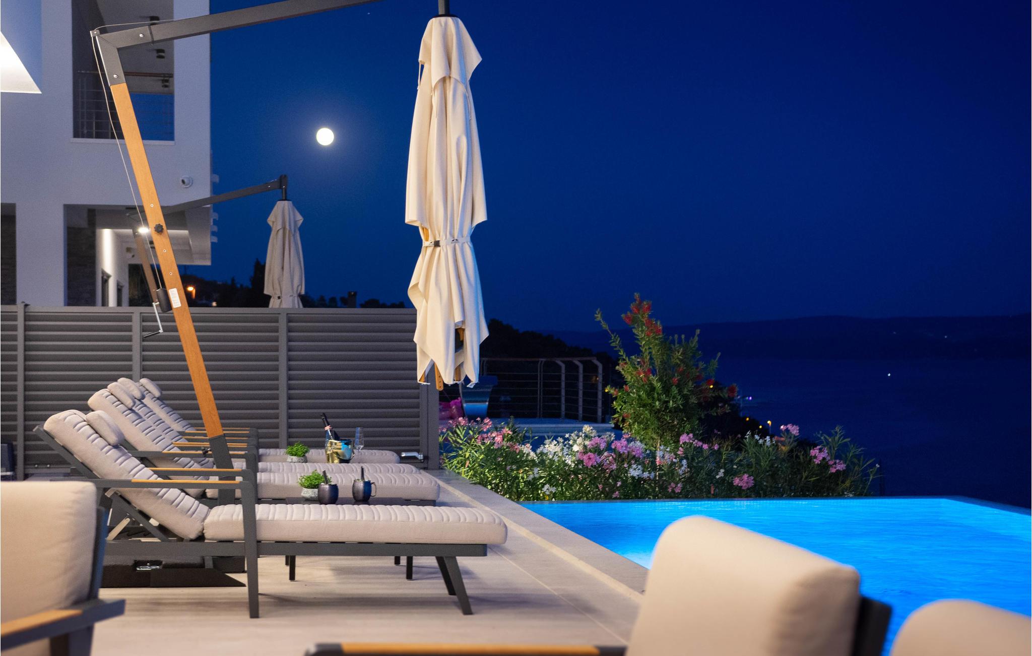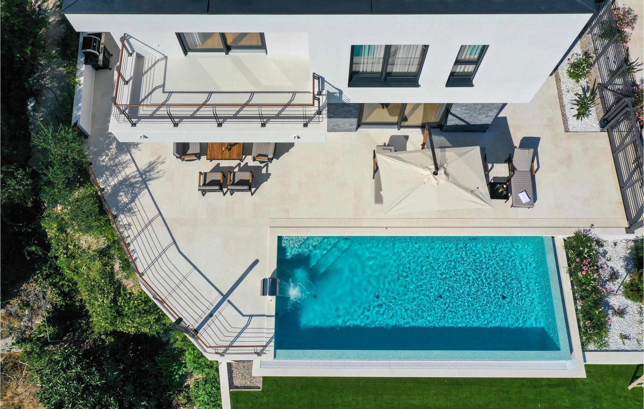 Ved poolen med havudsigt kan I slappe af i solen og slukke for hverdagen. Takket være flere altaner og en overdækket terrasse finder I altid et sted at nyde udsigten eller en kølig drink. Hop i poolen på varme sommerdage og nyd afkøling.
