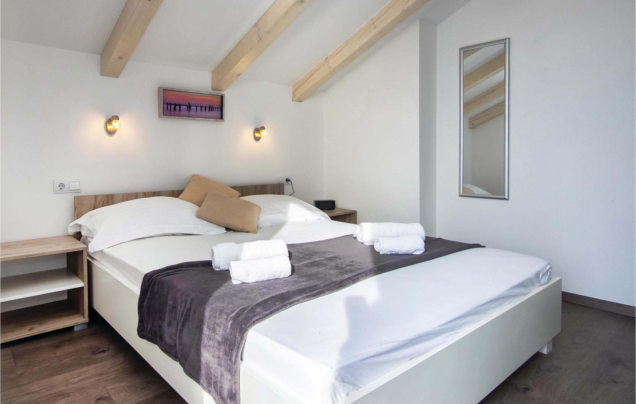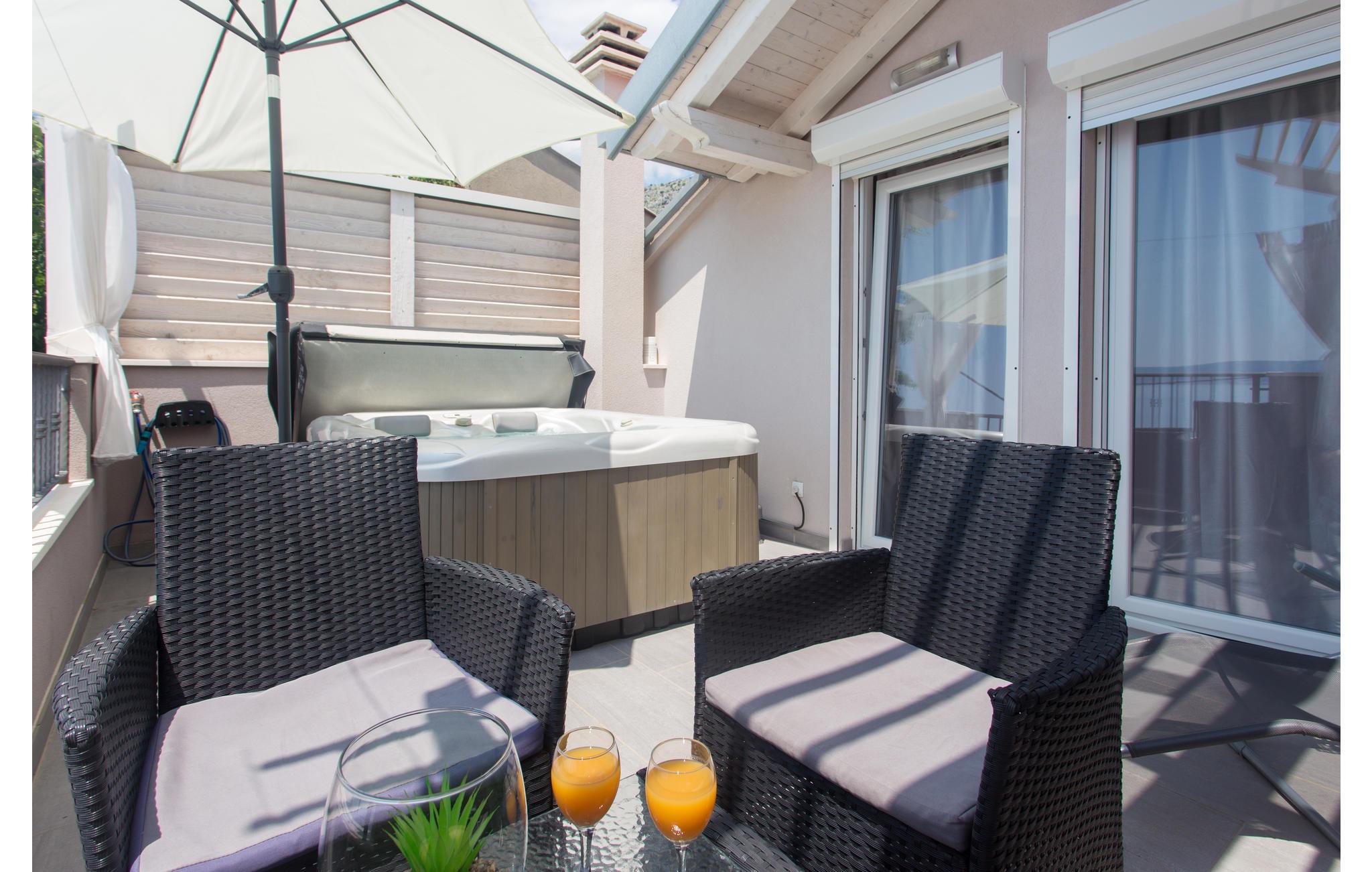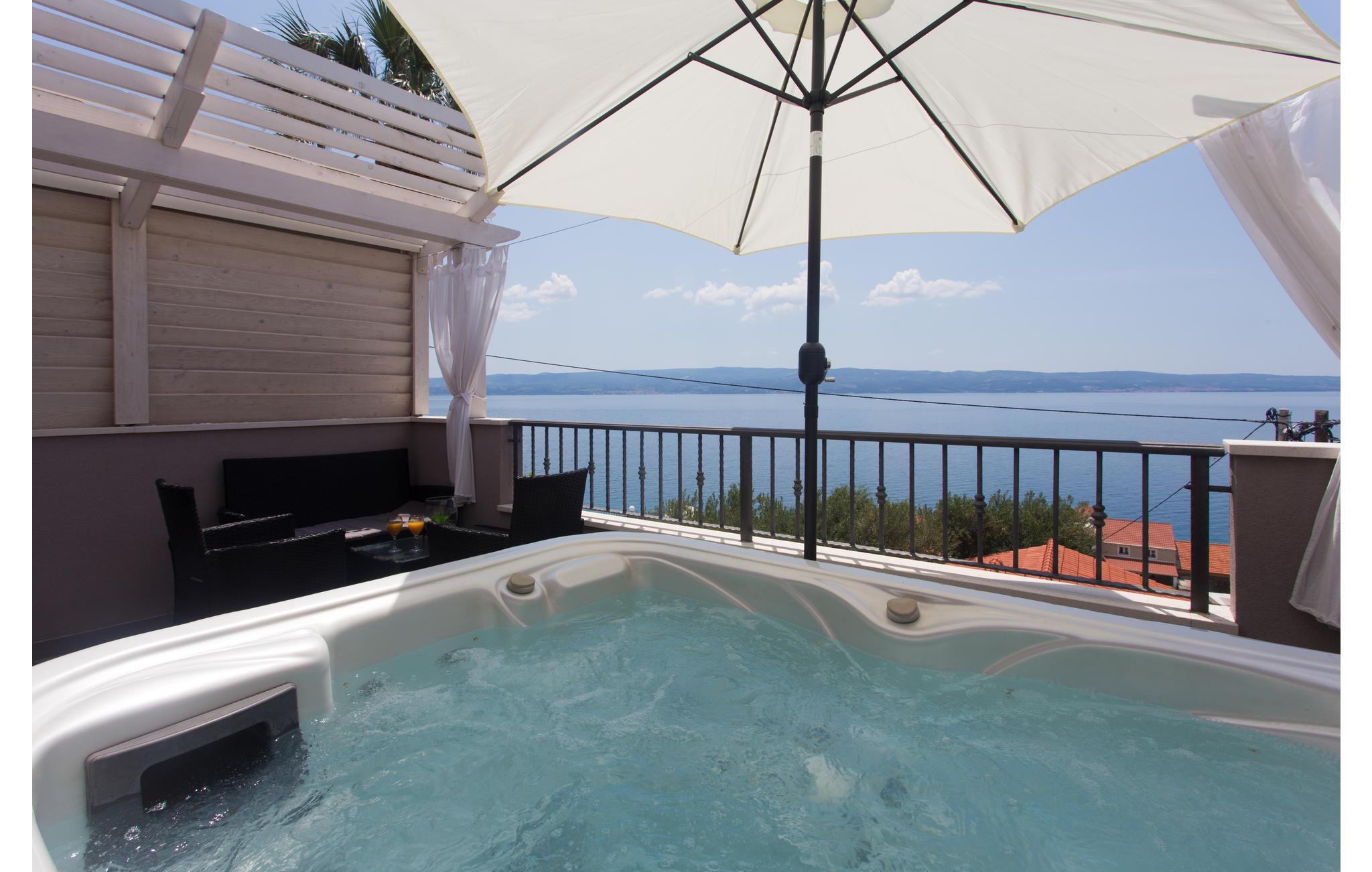 Hold en behagelig ferie i dette charmerende feriehus med en helt uforglemmelig panoramaudsigt over whirlpool på terrassen. Huset består af to etager, der begge er smagfuldt indrettede. På øverste etage er der charmerende skrå vægge og en laveste loftshøjde i siden på 160 cm. I stueplan er der en rummelig terrasse med grill. Besøg de skønne kiesstrande i nærheden og nyd havet som er lunt, krystalklart og i turkisgrønne nuancer. Smag områdets lækre egnsretter og gå en afslappet tur gennem de smalle stræder i Omiš gamle bydel, med smukke kirker, souvenirbutikker og mange interessante og flotte bygninger.