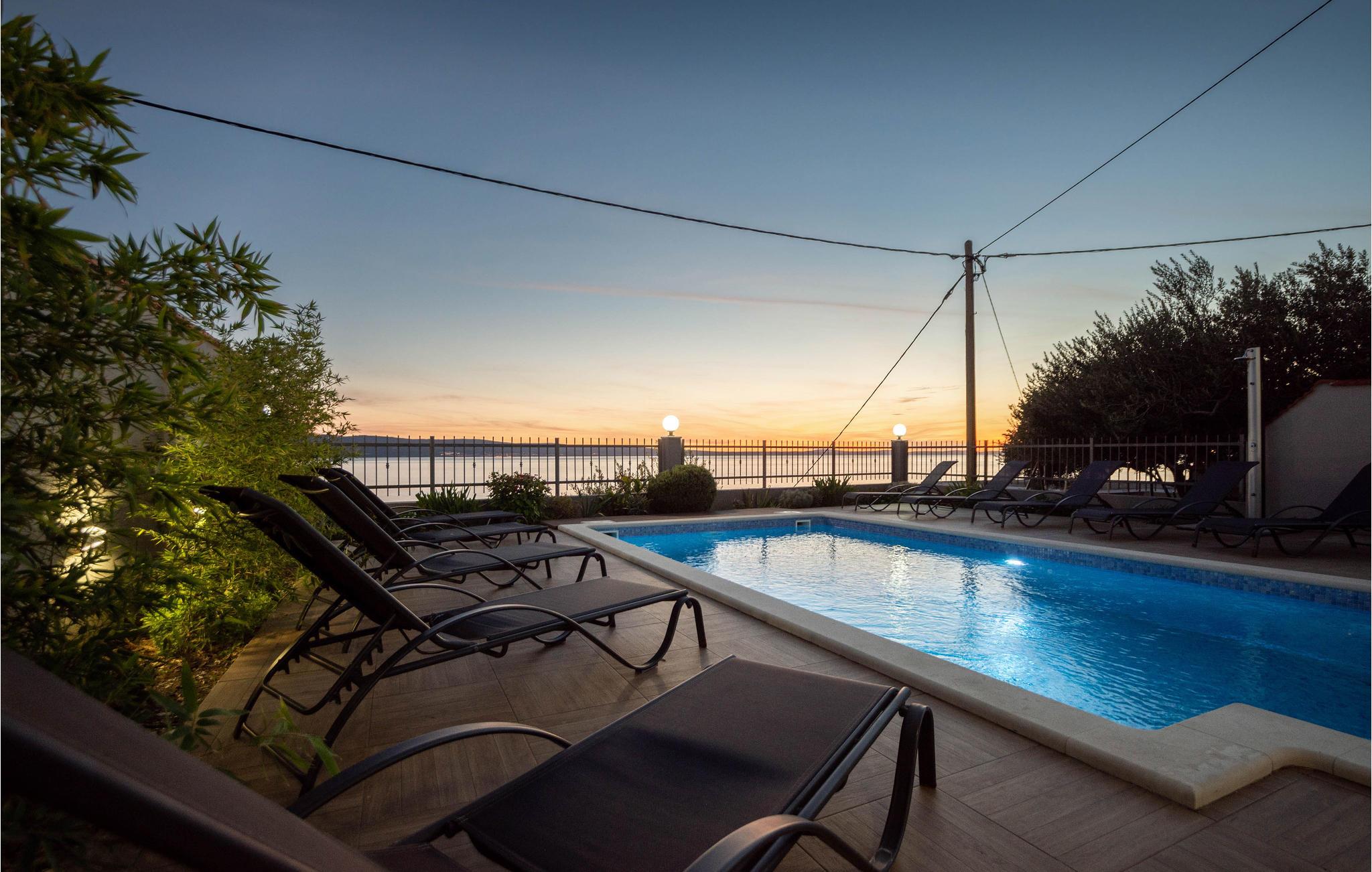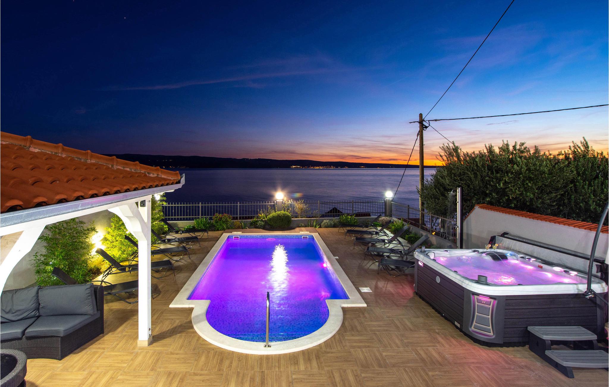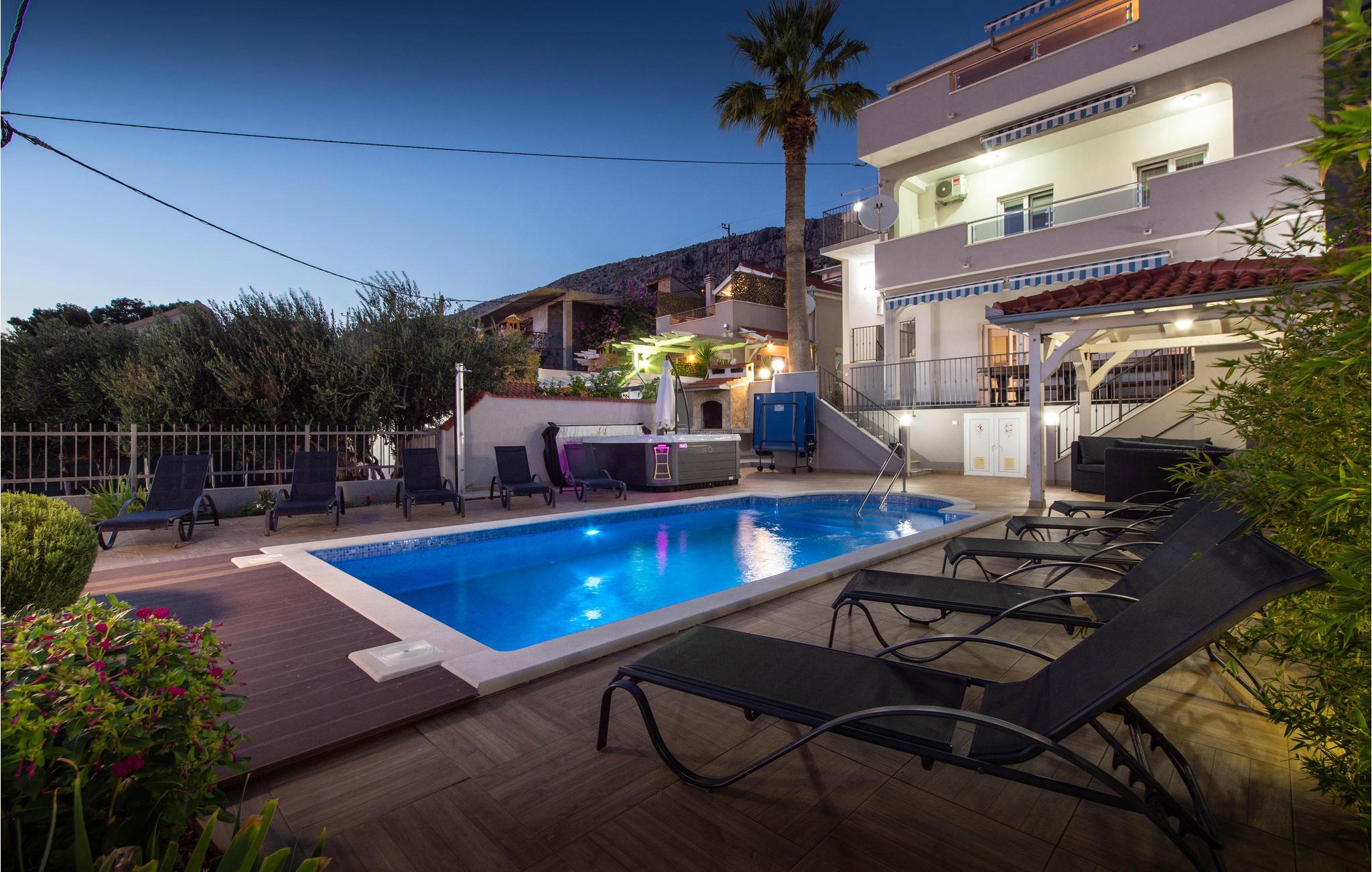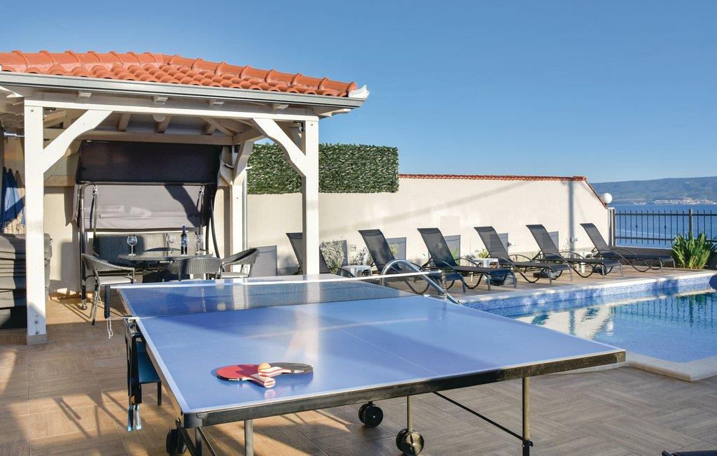 Dette rummelige feriehus er opdelt i tre lejligheder. I bor i en lille by mellem Split og Omis. Fra terrassen er der en skøn panoramaudsigt ud over havet og øerne. Fra den rummelige terrasse er der panoramaudsigt over havet og øerne. Terrassen med pool ligger på samme niveau som stueplan, hvor det centrale køkken og spisestuen der er dejligt rummelig ligger. Dejlige kiesstrande ligger lige neden for huset. Byen Omis ligger ikke langt væk. I holder ferie i et område, med mange former for underholdningstilbud. I kan fx prøve at rafte på floden Cetina, klatre i klipper, dykke, fiske og vandre.