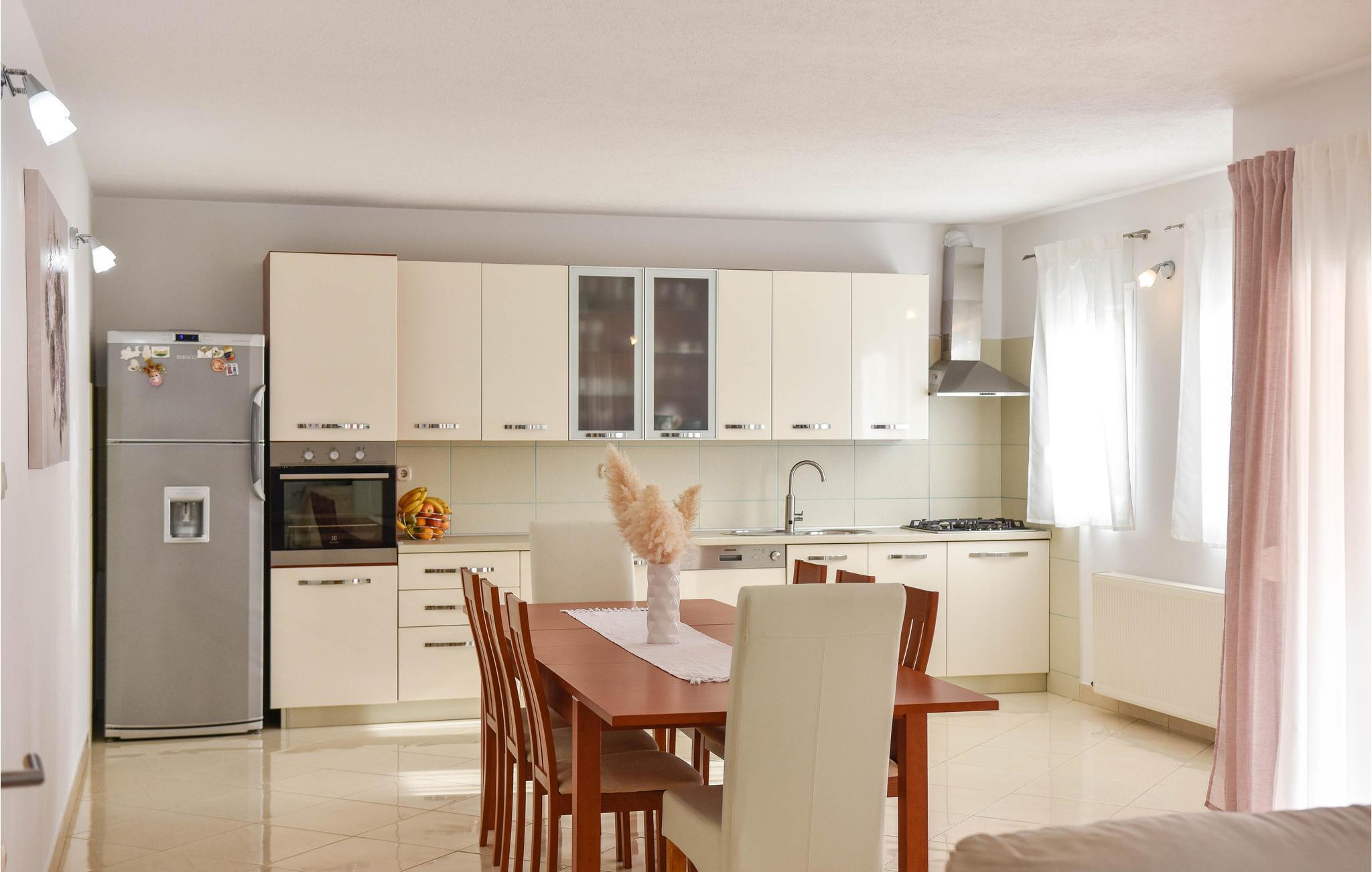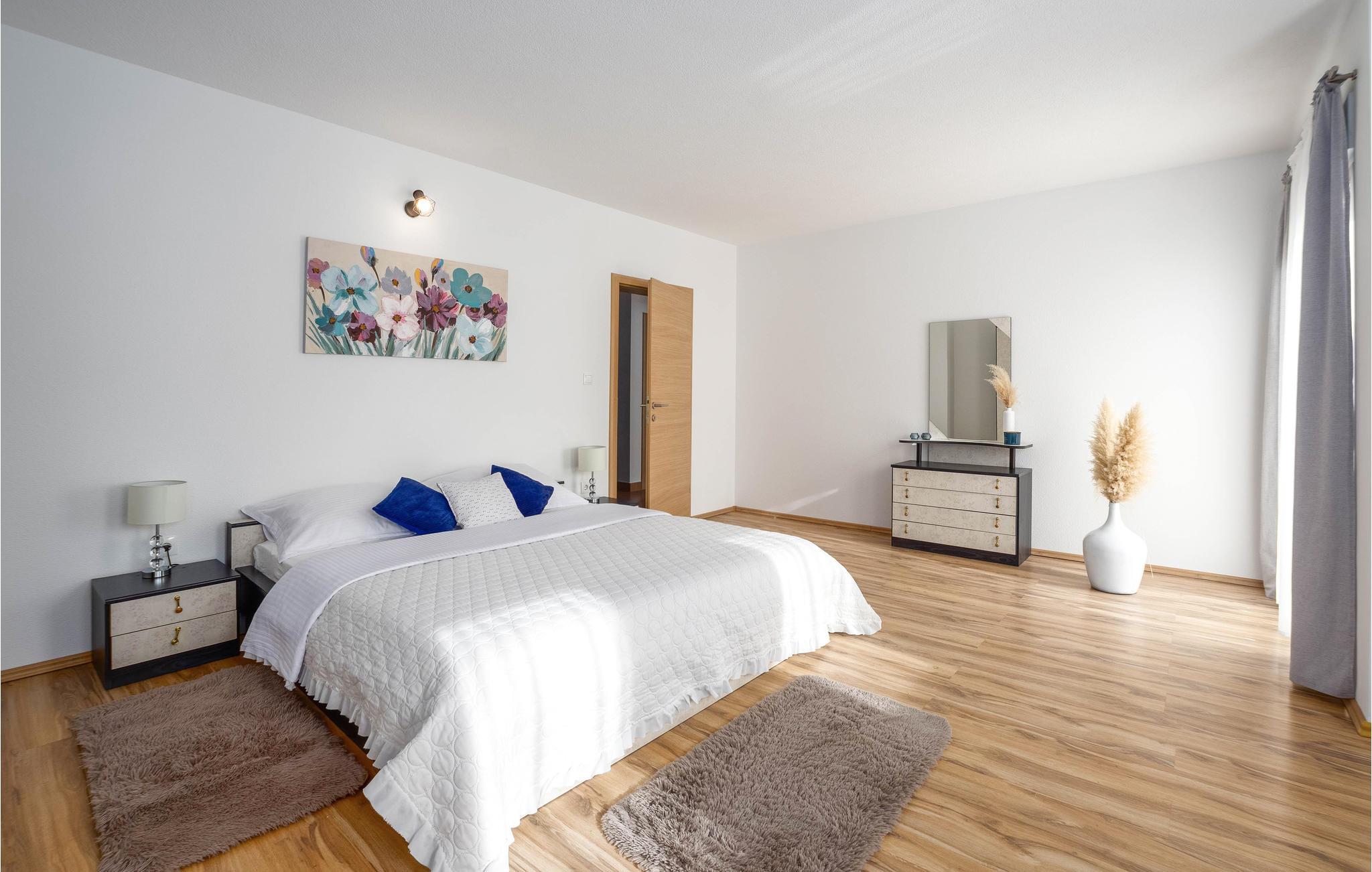 Dette skønne feriehus ligger i udkanten af Tugare. Her kan I se frem til godt med plads, rolige nætter og hyggelige rammer i opholdsstuen, hvor I kan lave mad eller se en film. I haven kan I fortsætte det skønne liv med sjov i poolen og lækre måltider på terrassen.