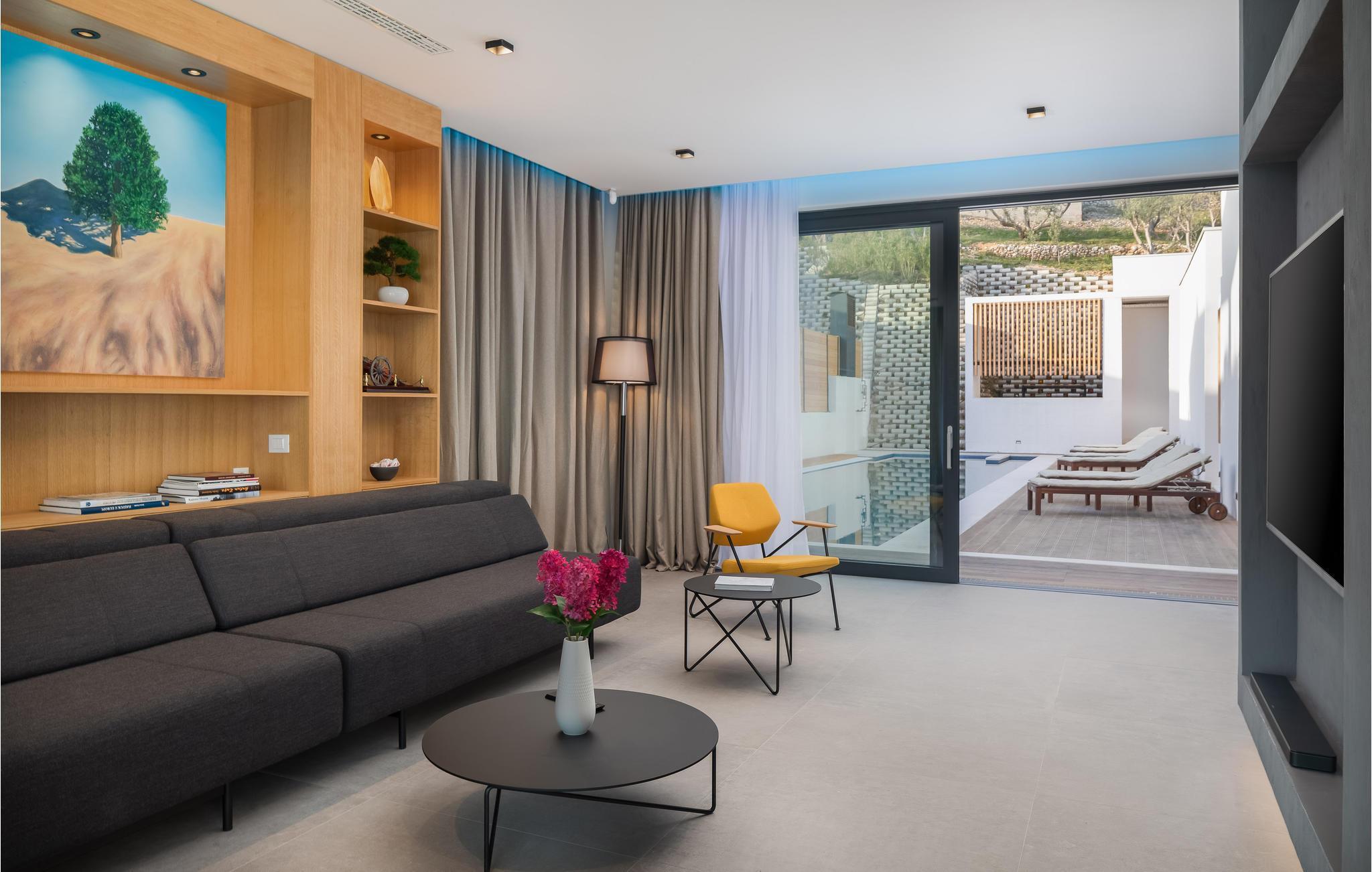 Velkommen til dette stilfuldt indrettede feriehus og glæd jer til en fantastisk ferie. Nyd den vidunderlige panoramaudsigt til havet og øen Brac fra den store, centrale terrasse, som er direkte forbundet med alle værelser og stuen. Hop en tur i den store pool eller svøm et par runder, så dagens motion er klaret. I kan også se frem til det store wellness-område med spabad, sauna, fitnessudstyr og tepidarium. Hvis I vil have en rolig alenestund, er der separate udendørsterrasser til hvert værelse.