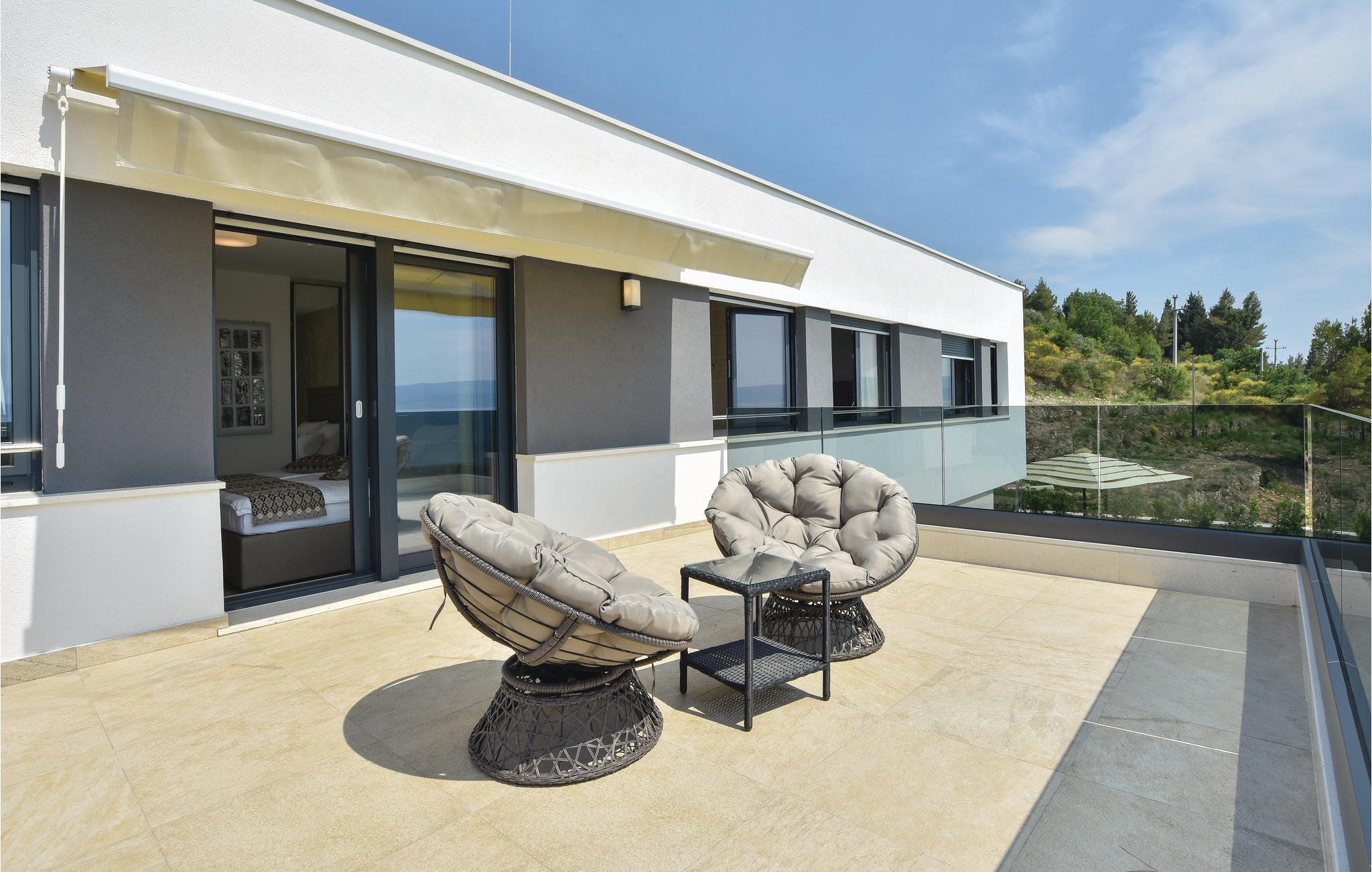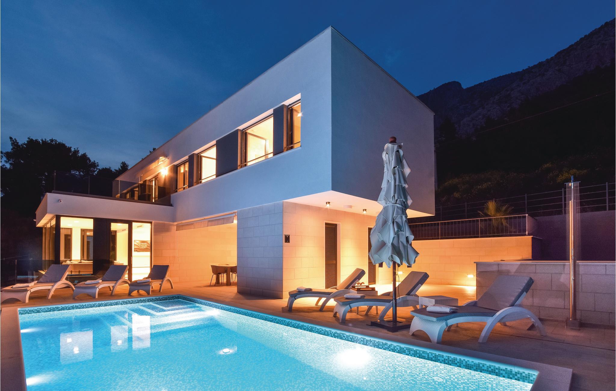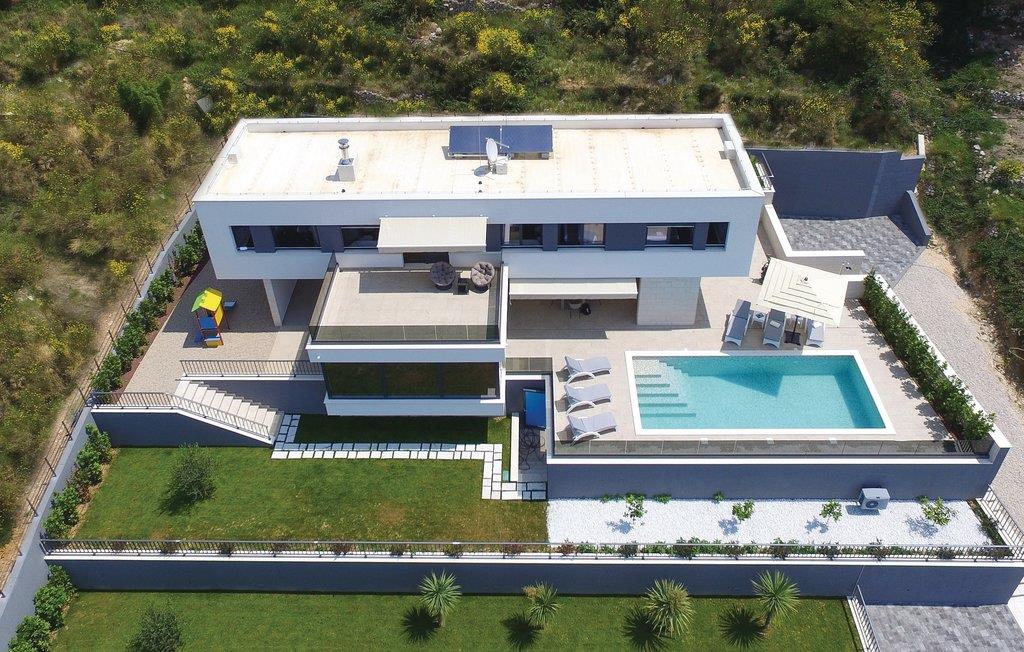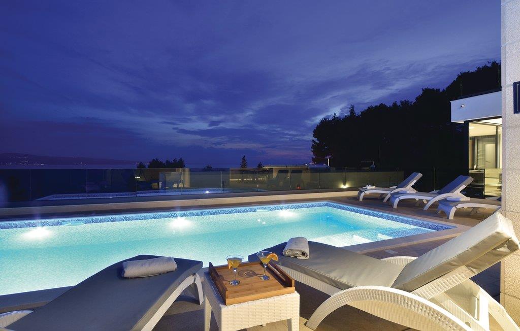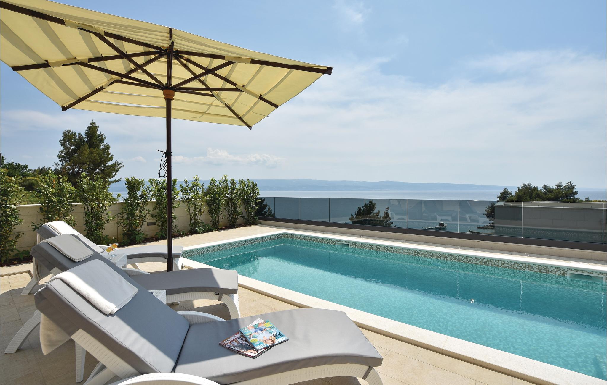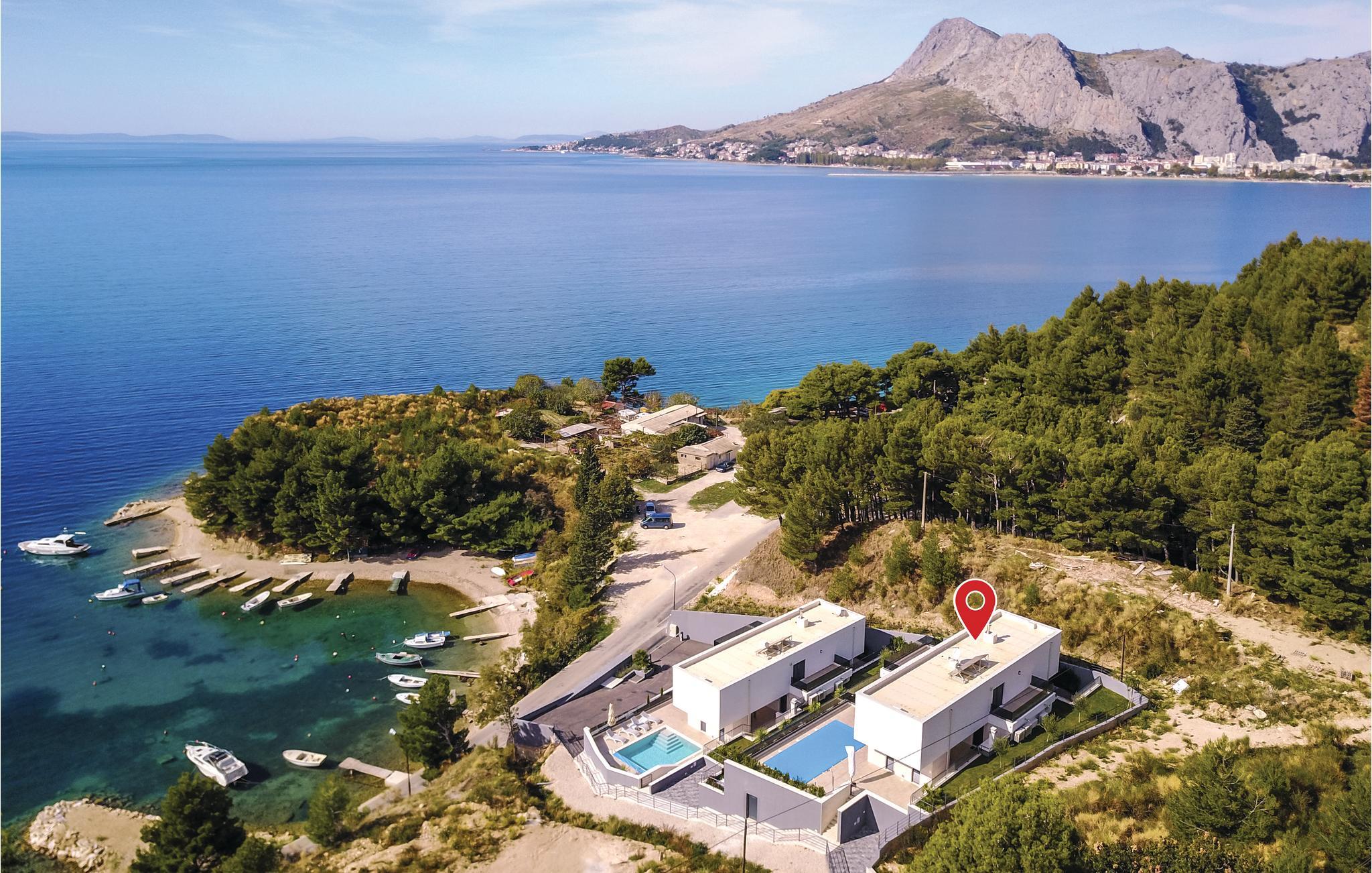 Med en fantastisk beliggenhed i første række fra havet, ligger denne fascinerende villa med privat pool. Bo komfortabelt med fem soveværelser, hvoraf det ene har badeværelse en suite. Interiøret er velplejet og af høj kvalitet – her vil I føle jer godt tilpas. Der er den skønneste panoramaudsigt over husets store vinduer og fra terrassen med pool. Nyd jeres ferie her på denne magiske plet, ved udmundingen af floden Cetina, med bjergene på den ene side og de skønne kies- og sandstrande på den anden. Den gamle bydel rig på kulturhistorie i byen Omis, samt talrige spisesteder med et bredt tilbud om både lokal og international menu har vundet mange besøgendes hjerter, der kommer igen år efter år.