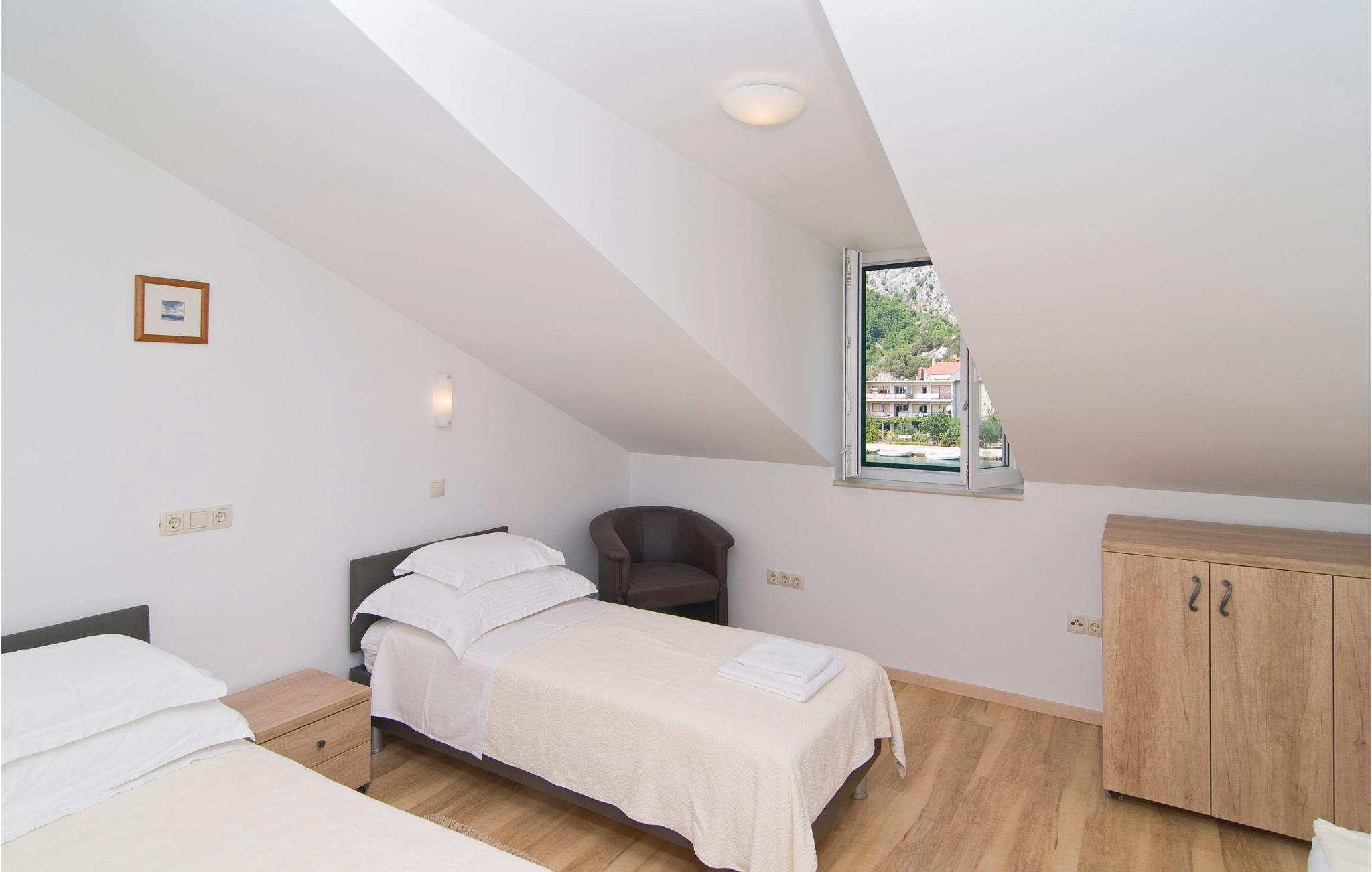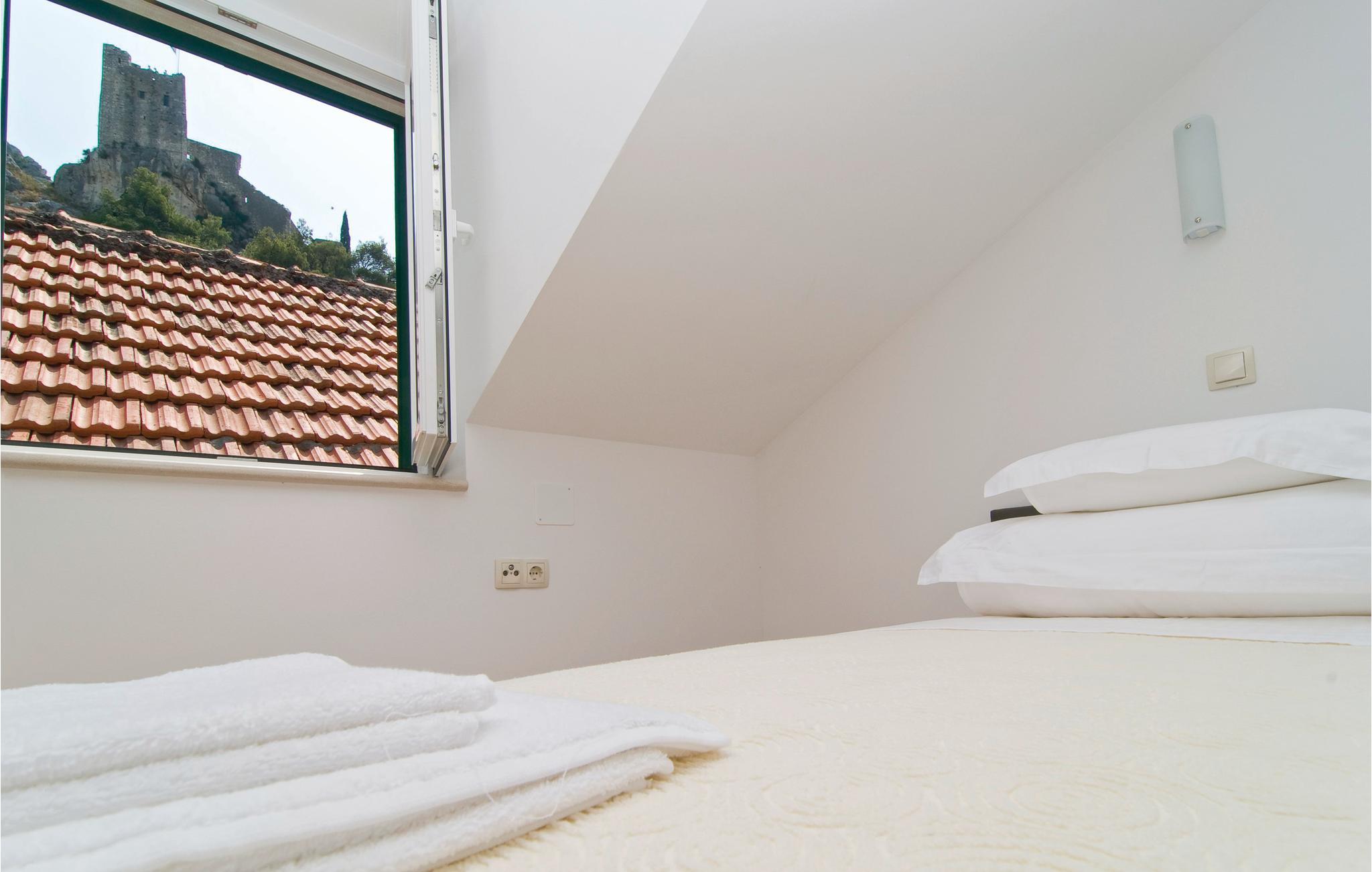 I annekset til et familiehus ligger denne skønne ferielejlighed med herlig udsigt til fæstningen Mirabel og floden Cetina. Ferieboligen er indrettet i den gamle dalmatiske stil og strækker sig over to etager. I tagetagen, med laveste loftshøjde på 70 cm, ligger soveværelserne og et badeværelse. Tilbring hyggelige timer på den dejlige terrasse. Efter aftale med husets ejer kan I også bruge tavernen (på kroatisk: konoba). Det rige tilbud inden for underholdning i byen Omis gør jeres ferie fuldkommen.
