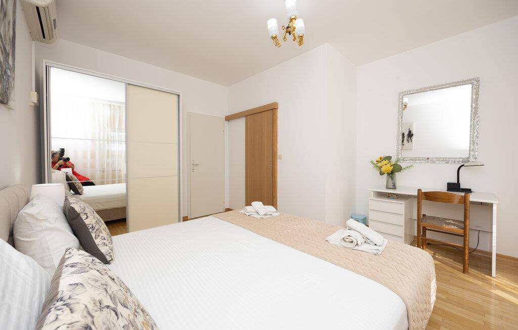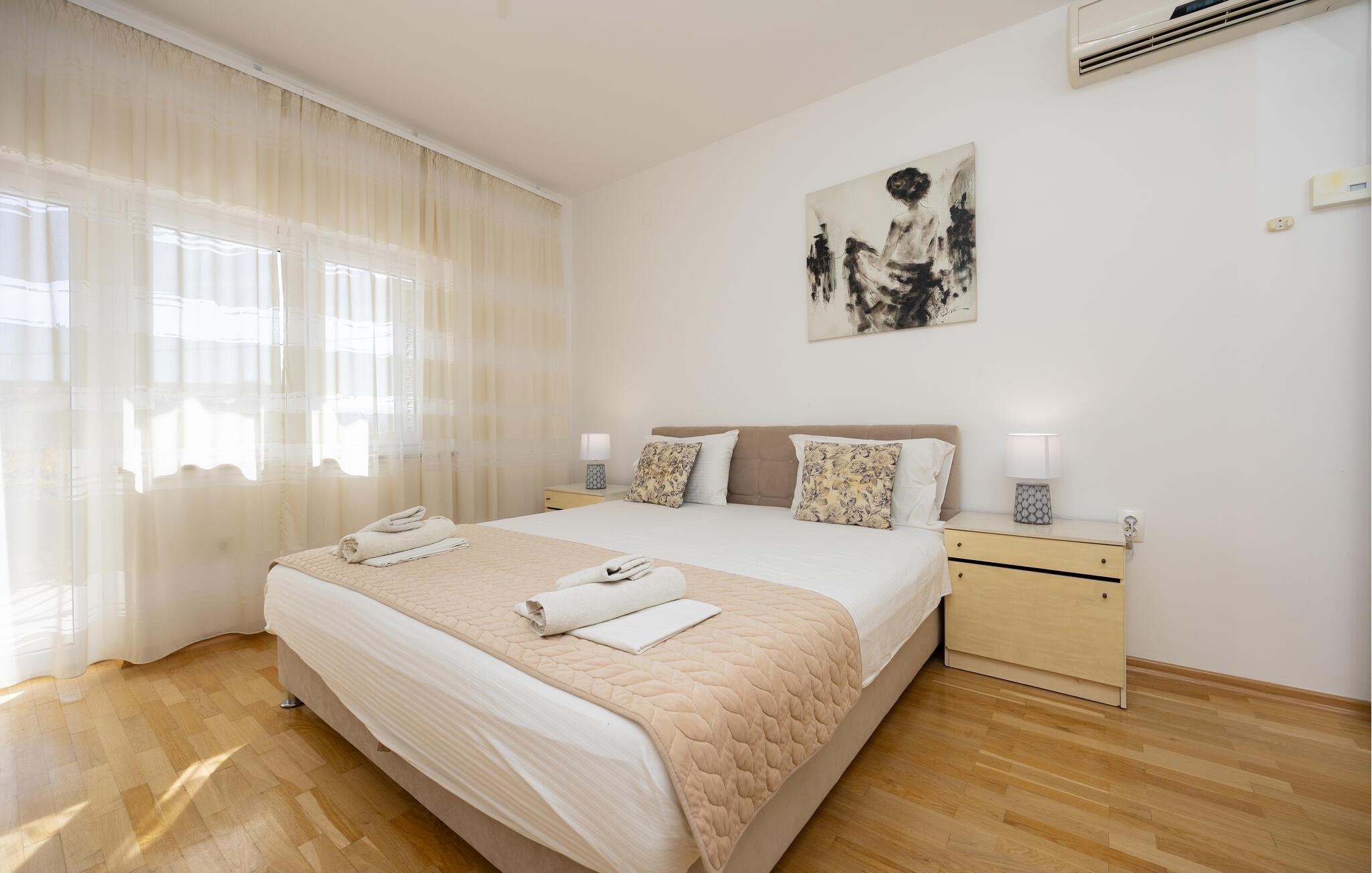 Et velholdt og lyst miljø byder jer velkommen i denne strandnære ferielejlighed, som har alt, hvad I skal bruge for en afslappende ferie under Kroatiens sol. Tilbered måltider sammen i det veludstyrede køkken, og nyd hyggelige stunder i den åbne stue, der indbyder til samvær.