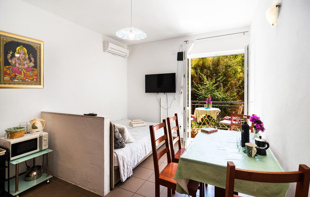 Glæd jer til en dejlig ferie i denne kompakte ferielejlighed, som tilbyder jer en god base for smukke ture til havet. Brug det lille tekøkken til at tilberede ukomplicerede måltider, sæt jer ved spisebordet og nyd jeres fritid i godt selskab. læn jer tilbage på sofaen, der også fungerer som seng, og tilbring rolige aftener foran fjernsynet.