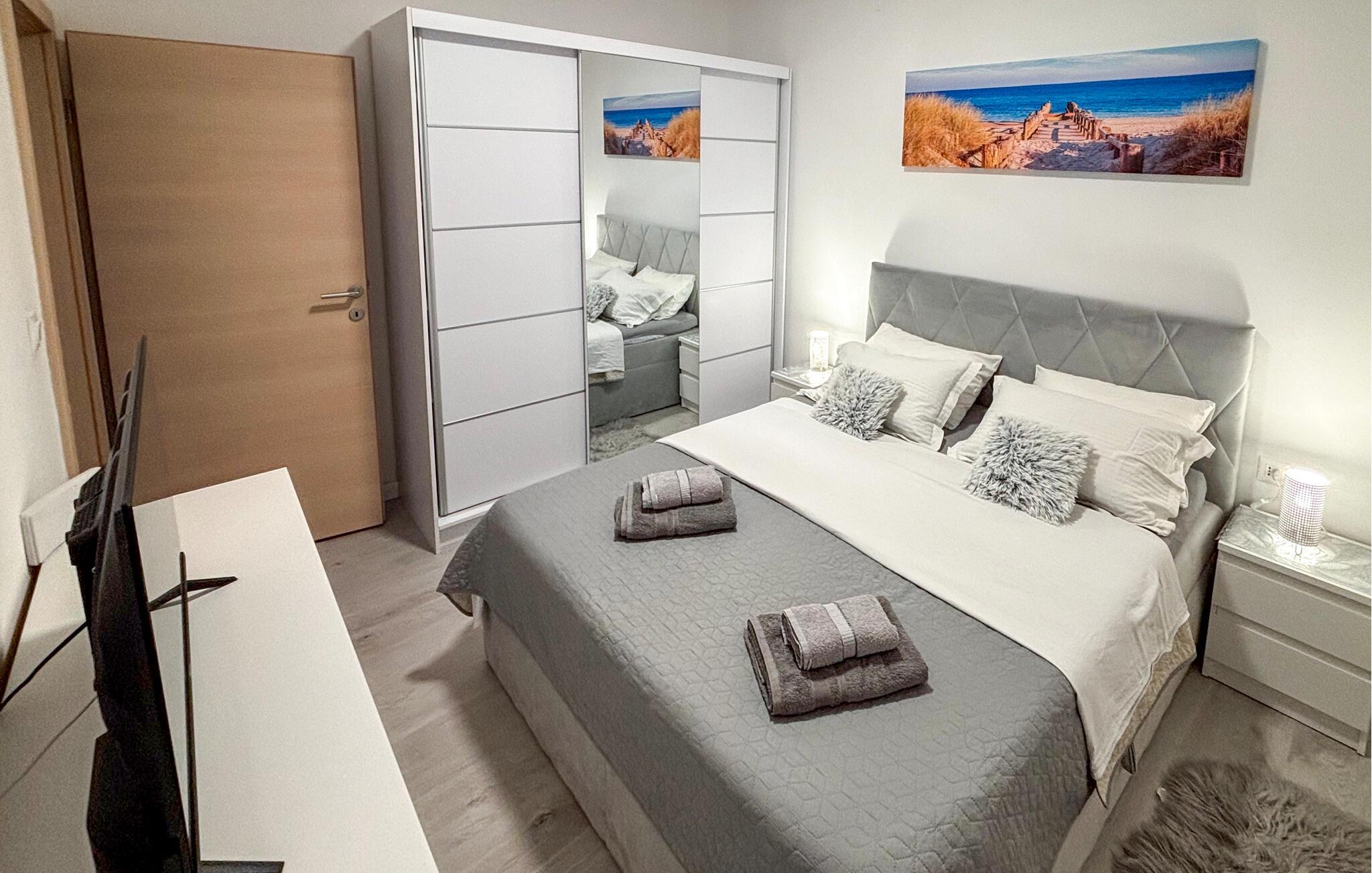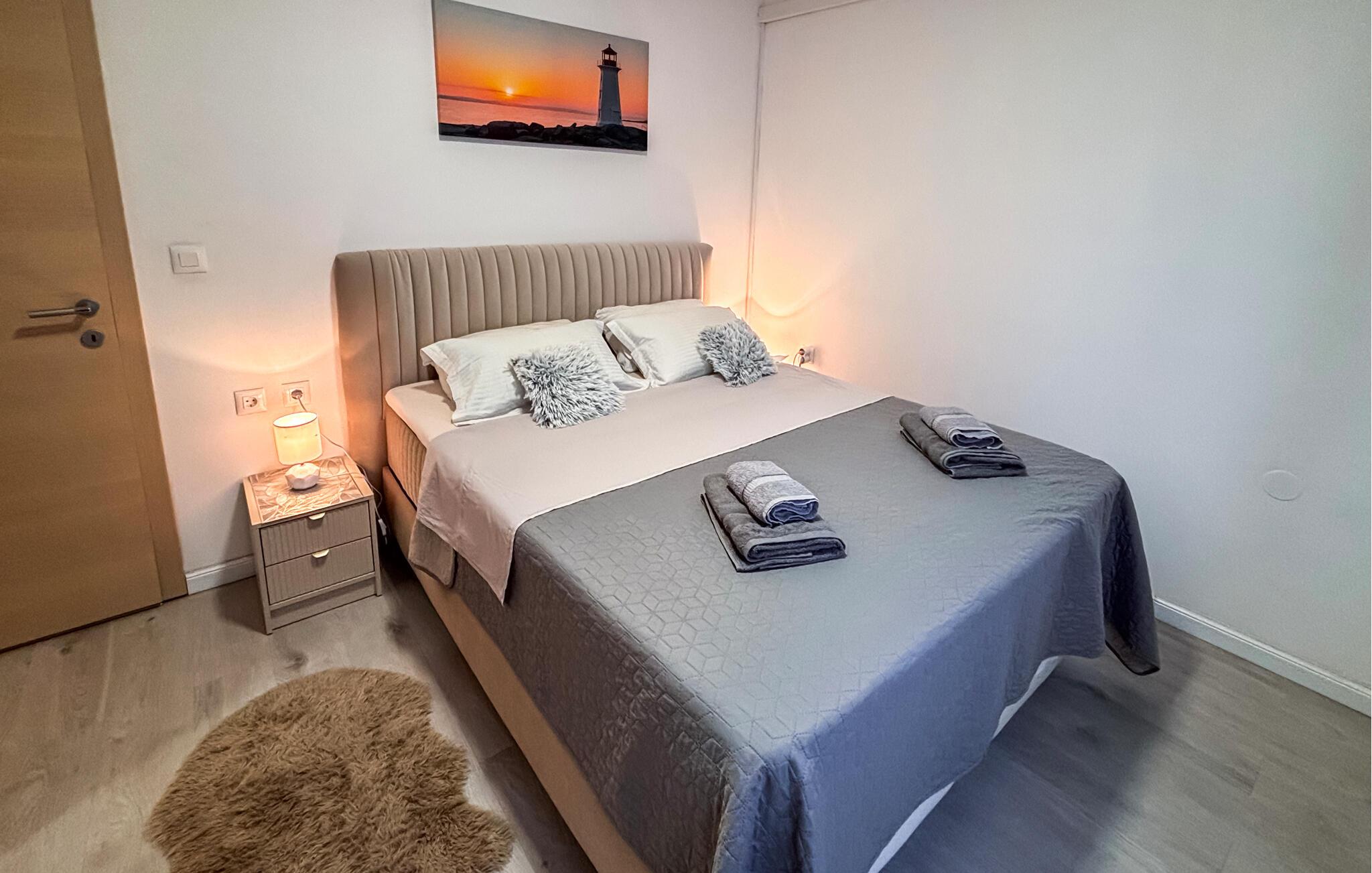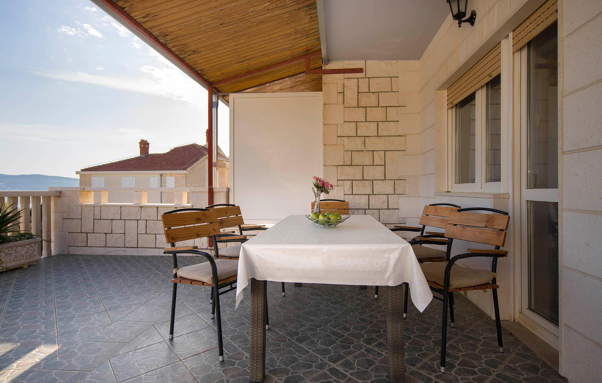 Træd ud på den rummelige terrasse og nyd den beroligende udsigt over det blå Adriaterhav. Slap af på liggestolene eller søg skygge under det overdækkede område for en pause i de varmere timer. Brug den indbyggede grill og udekøkkenet til at tilberede friske ingredienser og tilbring hyggelige aftener omkring terrassebordet.