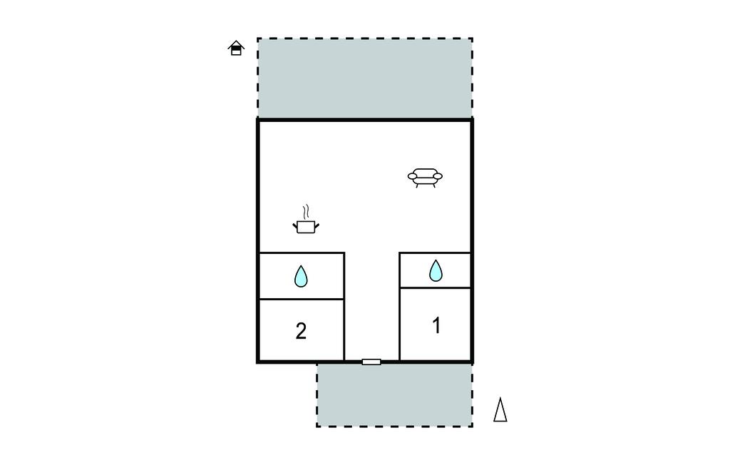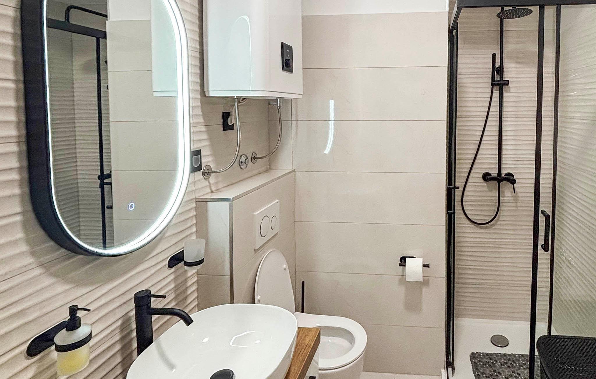 Badeværelse 4m2 (nr. 1) - WC. Varmt og koldt vand. Bruser