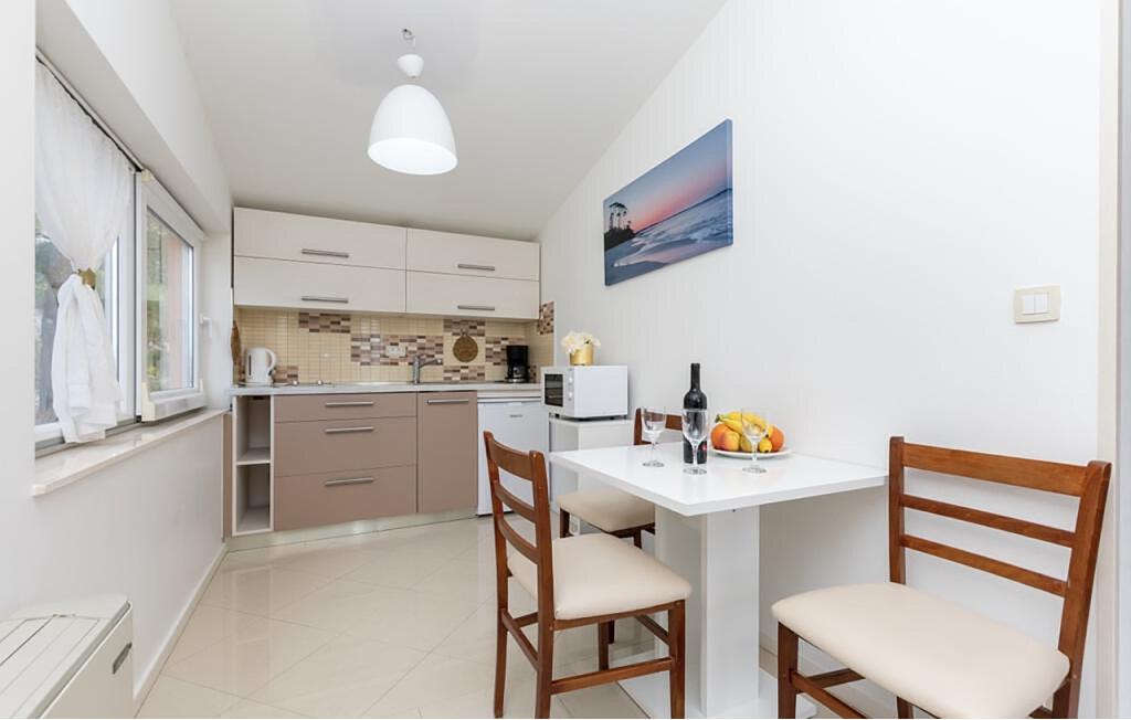 Tilbring en afslappende ferie i denne lejlighed med havudsigt og en imponerende bjergkulisse. Træd ind i det lyse interiør, nyd det funktionelle design, og brug jeres lejlighed til at slappe af i timevis efter en begivenhedsrig dag. Møblerne er rene og praktiske og tilbyder alt, hvad I behøver for et behageligt ophold. Tilbered nemt enkle måltider i det praktiske tekøkken. Gå udenfor og sæt jer ved det lille bord. Nyd morgenmaden her, eller lad aftenen slutte med udsigt over hustagene og havet. Udendørsområdet tilbyder et beskyttet tilflugtssted med en betagende udsigt. Udnyt den høje beliggenhed til rolige øjeblikke væk fra travlheden og nyd den friske luft i afslappede omgivelser. Oplev Omiš' varierede omgivelser. Slentr gennem den historiske gamle bydel med dens smalle gader, og besøg Starigrad-fæstningen, der tilbyder en betagende udsigt over kysten. Tilbring dage med at svømme ved sand- og stenstrandene langs Cetina-flodmundingen. Tag på rafting på Cetina-floden, eller tag på vandretur i de omkringliggende bjerge. Udforsk kystpromenaden med dens restauranter og caféer, eller planlæg udflugter til nærliggende byer langs den dalmatiske kyst.