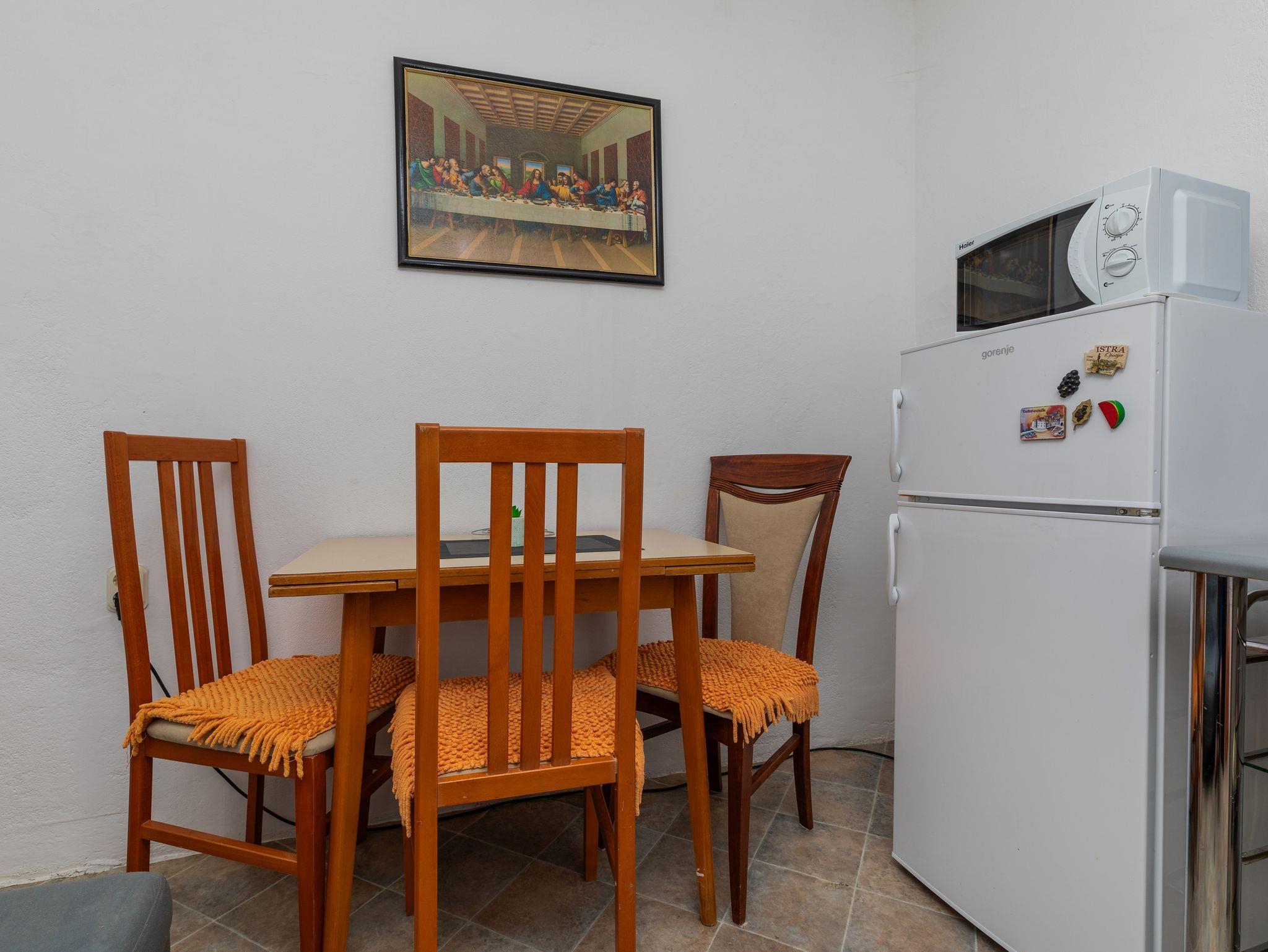 Ferienwohnung bietet Platz für 4 Gäste. Die Betten sind in Schlafzimmern, die es 1 gibt, und in Esszimmer, innerhalb einer Gesamtfläche von 31m2, angeordnet. Die Gäste haben eine eigene Terrasse zur Verfügung, auf der sie in warmen Sommernächten genießen können. Das Apartment bietet Meerblick. Es ist erlaubt, Speisen auf dem Gemeinschafts-Grill vorzubereiten. Durch die Terrasse der gebuchten Unterkunftseinheit gehen auch andere Gäste oder Vermieter. IM PREIS INBEGRIFFEN: Kurtaxe, Endreinigung, Klimatisierung, Parkplatz, Internet, Bügeleisen, Bügelbrett, Föhn, tragbarer Grill, Sonnenschirm. VERBINDLICHE ZUSÄTZLICHE KOSTEN: Aufzahlung für Kurzaufenthalte (prozentualer Zuschlag pro Nächtigungsanzahl: 30% - 1, 20% - 2, 10% - 3). UNVERBINDLICHE ZUSÄTZLICHE KOSTEN: Bootsanlegeplatz (20,00 € pro Nacht). Die Verfügbarkeit zusätzlicher Dienstleistungen in Ihrem reservierten Termin und die Preise derselben (falls nicht aufgeführt) müssen im Voraus überprüft werden. Zusätzliche Dienstleistungen die in der Zahlungsaufforderung nicht aufgeführt sind werden direkt beim Vermieter bezahlt, angenommen der Gast nutzt auch diese. Ermäßigung auf den Grundpreis: Gratistag 14=13 (bei einem Aufenthalt von 14 Tagen oder mehr erhalten Sie einen Gratistag für den Aufenthalt bis 31.12.26).