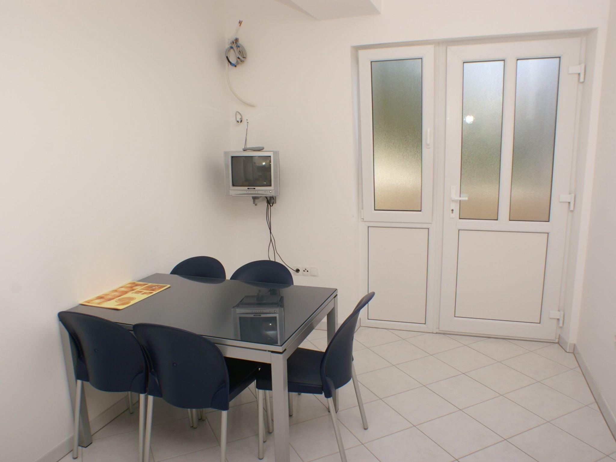 Ferienwohnung bietet Platz für 4 Gäste. Die Betten sind in Schlafzimmern, die es 2 gibt, innerhalb einer Gesamtfläche von 45m2, angeordnet. Die Gäste haben eine eigene Terrasse zur Verfügung, auf der sie in warmen Sommernächten genießen können. Das Apartment bietet Meerblick. Es ist erlaubt, Speisen auf dem Gemeinschafts-Grill vorzubereiten. Durch die Terrasse der gebuchten Unterkunftseinheit gehen auch andere Gäste oder Vermieter. IM PREIS INBEGRIFFEN: Kurtaxe, Endreinigung, Klimatisierung, Parkplatz, Internet. VERBINDLICHE ZUSÄTZLICHE KOSTEN: Aufzahlung für Kurzaufenthalte (prozentualer Zuschlag pro Nächtigungsanzahl: 30% - 1, 20% - 2, 10% - 3). UNVERBINDLICHE ZUSÄTZLICHE KOSTEN: 1 Bett für Kinder (5,00 € Person/Tag). Die Verfügbarkeit zusätzlicher Dienstleistungen in Ihrem reservierten Termin und die Preise derselben (falls nicht aufgeführt) müssen im Voraus überprüft werden. Zusätzliche Dienstleistungen die in der Zahlungsaufforderung nicht aufgeführt sind werden direkt beim Vermieter bezahlt, angenommen der Gast nutzt auch diese.