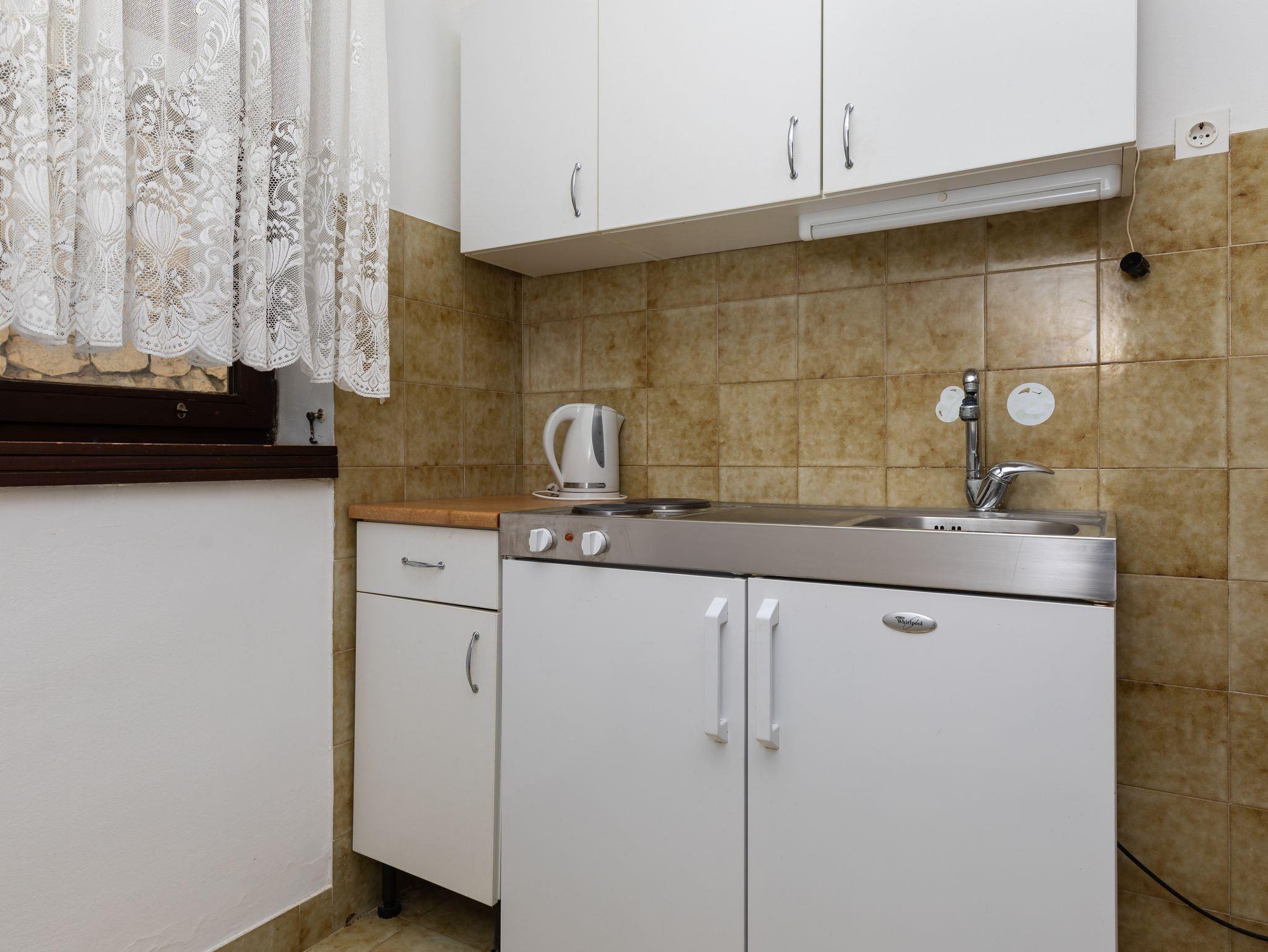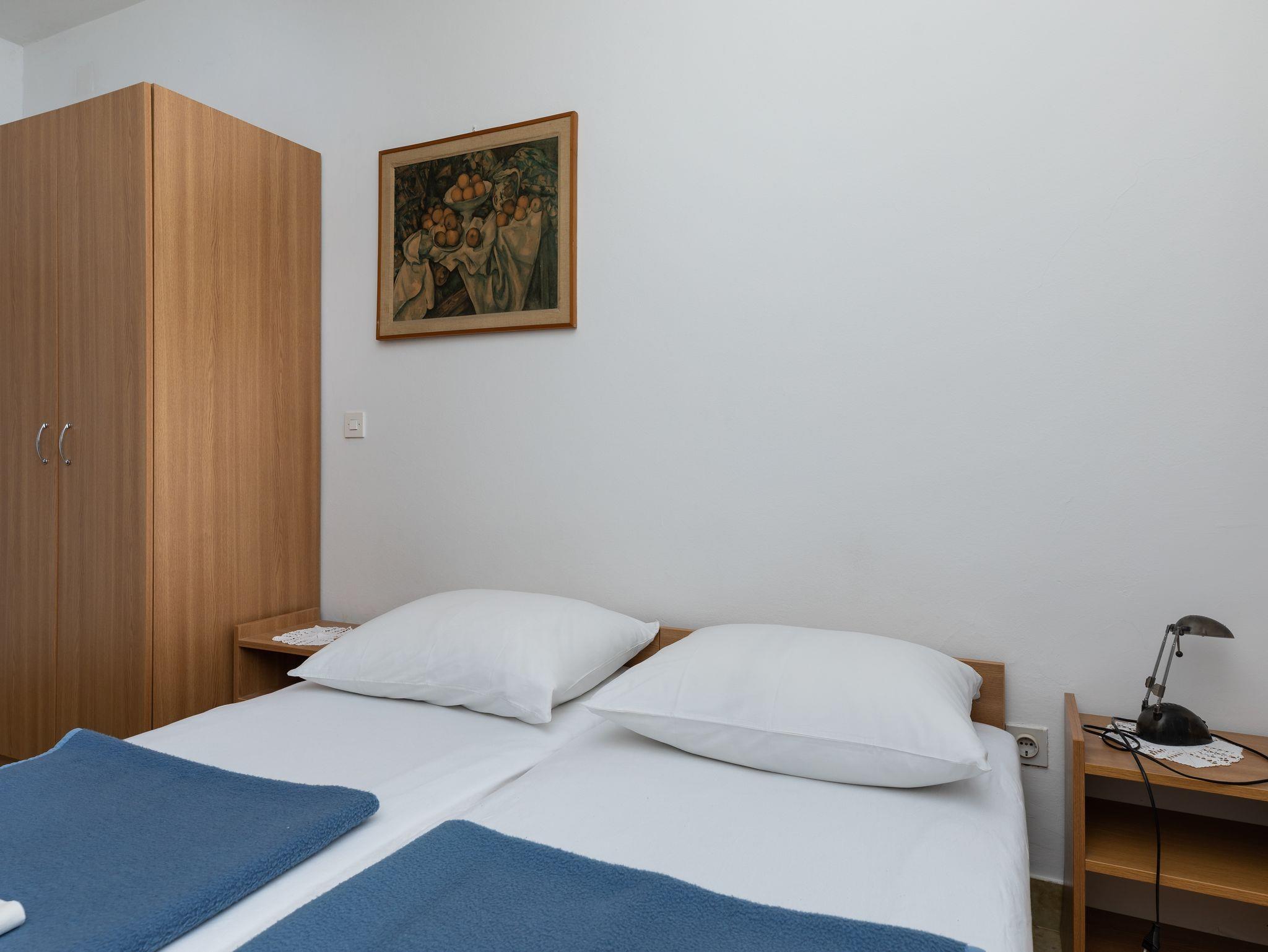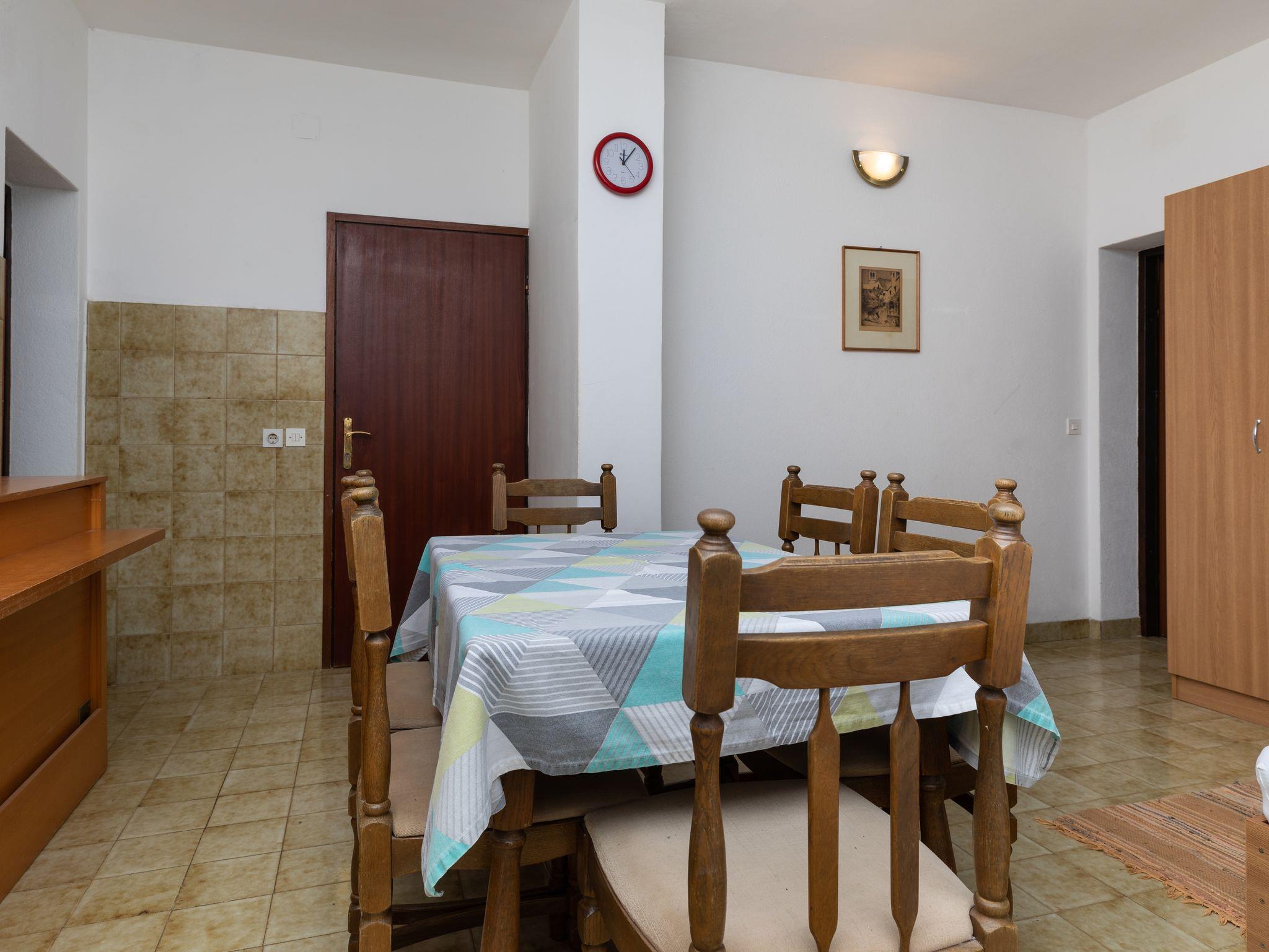 Ferienwohnung bietet Platz für 4 Gäste. Die Betten sind in Schlafzimmern, die es 1 gibt, und in Wohnzimmer, innerhalb einer Gesamtfläche von 33m2, angeordnet. Die Gäste haben eine eigene Terrasse zur Verfügung, auf der sie in warmen Sommernächten genießen können. Das Apartment bietet Meerblick. Es ist erlaubt, Speisen auf dem Gemeinschafts-Grill vorzubereiten. In der Unterkunftseinheit besteht die Möglichkeit des Mitbringens von Haustieren gegen Aufpreis. IM PREIS INBEGRIFFEN: Kurtaxe, Endreinigung, Parkplatz, Internet, Wäschewaschen, Kinderbett, Bügeleisen, Föhn, Sonnenschirm. VERBINDLICHE ZUSÄTZLICHE KOSTEN: Aufzahlung für Kurzaufenthalte (prozentualer Zuschlag pro Nächtigungsanzahl: 30% - 1, 20% - 2, 10% - 3). UNVERBINDLICHE ZUSÄTZLICHE KOSTEN: Klimatisierung (0,30 € pro Stunde), Haustiere (5,00 € pro Nacht), Zusatzbett (5,00 € pro Nacht). Die Verfügbarkeit zusätzlicher Dienstleistungen in Ihrem reservierten Termin und die Preise derselben (falls nicht aufgeführt) müssen im Voraus überprüft werden. Zusätzliche Dienstleistungen die in der Zahlungsaufforderung nicht aufgeführt sind werden direkt beim Vermieter bezahlt, angenommen der Gast nutzt auch diese.