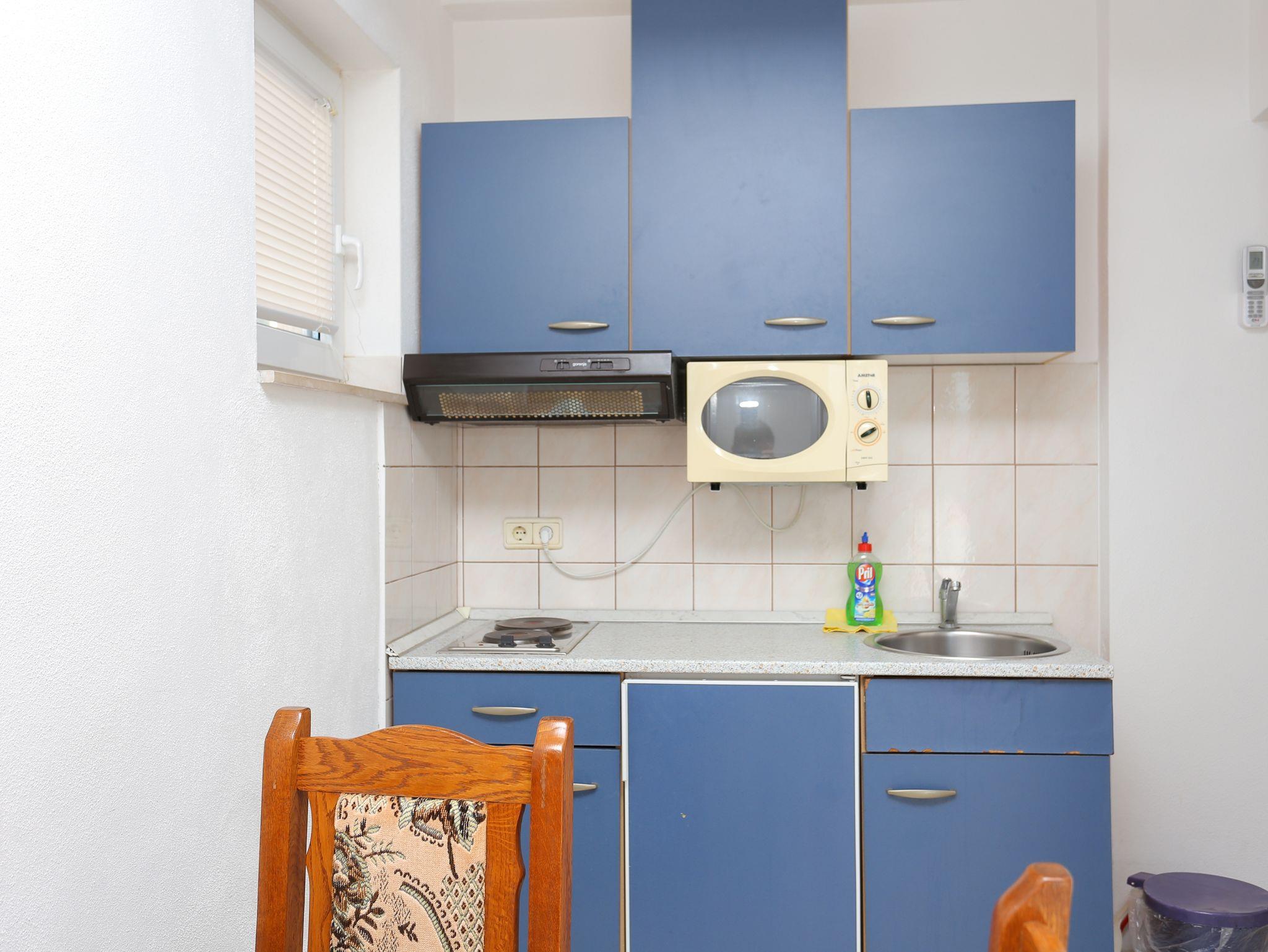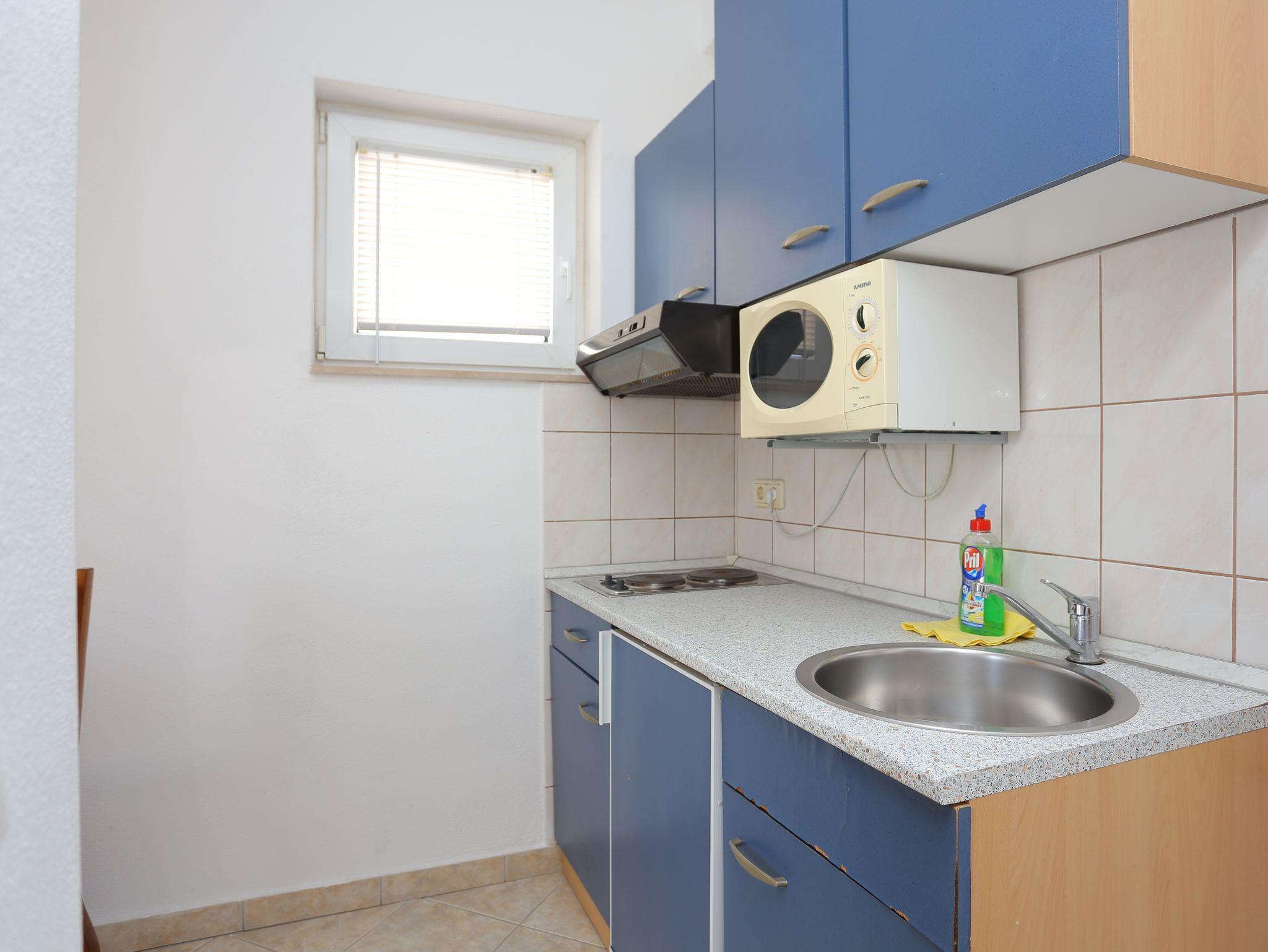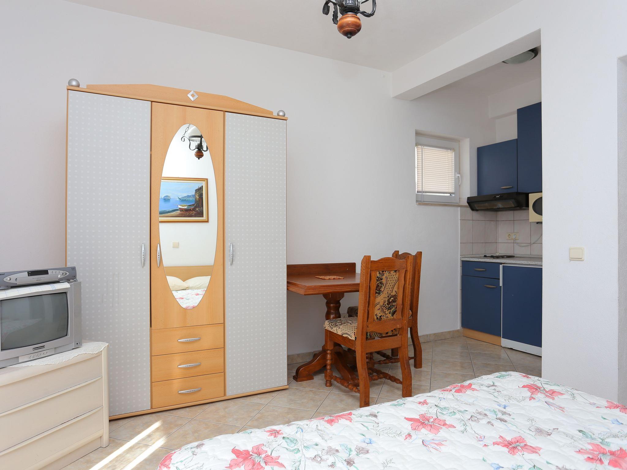 Studio bietet Platz für 2 Gäste. Die Betten sind in Schlafzimmern, die es 1 gibt, innerhalb einer Gesamtfläche von 19m2, angeordnet. Die Gäste haben einen eigenen Balkon zur Verfügung, auf der sie in warmen Sommernächten genießen können. Das Studio-Apartment bietet Meerblick. Es ist erlaubt, Speisen auf dem Gemeinschafts-Grill vorzubereiten. IM PREIS INBEGRIFFEN: Kurtaxe, Endreinigung, Parkplatz, Internet, Kinderbett, Bügeleisen, Bügelbrett, Föhn, tragbarer Grill. VERBINDLICHE ZUSÄTZLICHE KOSTEN: Aufzahlung für Kurzaufenthalte (prozentualer Zuschlag pro Nächtigungsanzahl: 30% - 1, 20% - 2, 10% - 3). UNVERBINDLICHE ZUSÄTZLICHE KOSTEN: Klimatisierung (5,00 € pro Nacht), Wäschewaschen (5,00 € Waschen). Die Verfügbarkeit zusätzlicher Dienstleistungen in Ihrem reservierten Termin und die Preise derselben (falls nicht aufgeführt) müssen im Voraus überprüft werden. Zusätzliche Dienstleistungen die in der Zahlungsaufforderung nicht aufgeführt sind werden direkt beim Vermieter bezahlt, angenommen der Gast nutzt auch diese. Ermäßigung auf den Grundpreis: Gratistag 14=13 (bei einem Aufenthalt von 14 Tagen oder mehr erhalten Sie einen Gratistag für den Aufenthalt bis 31.12.26).