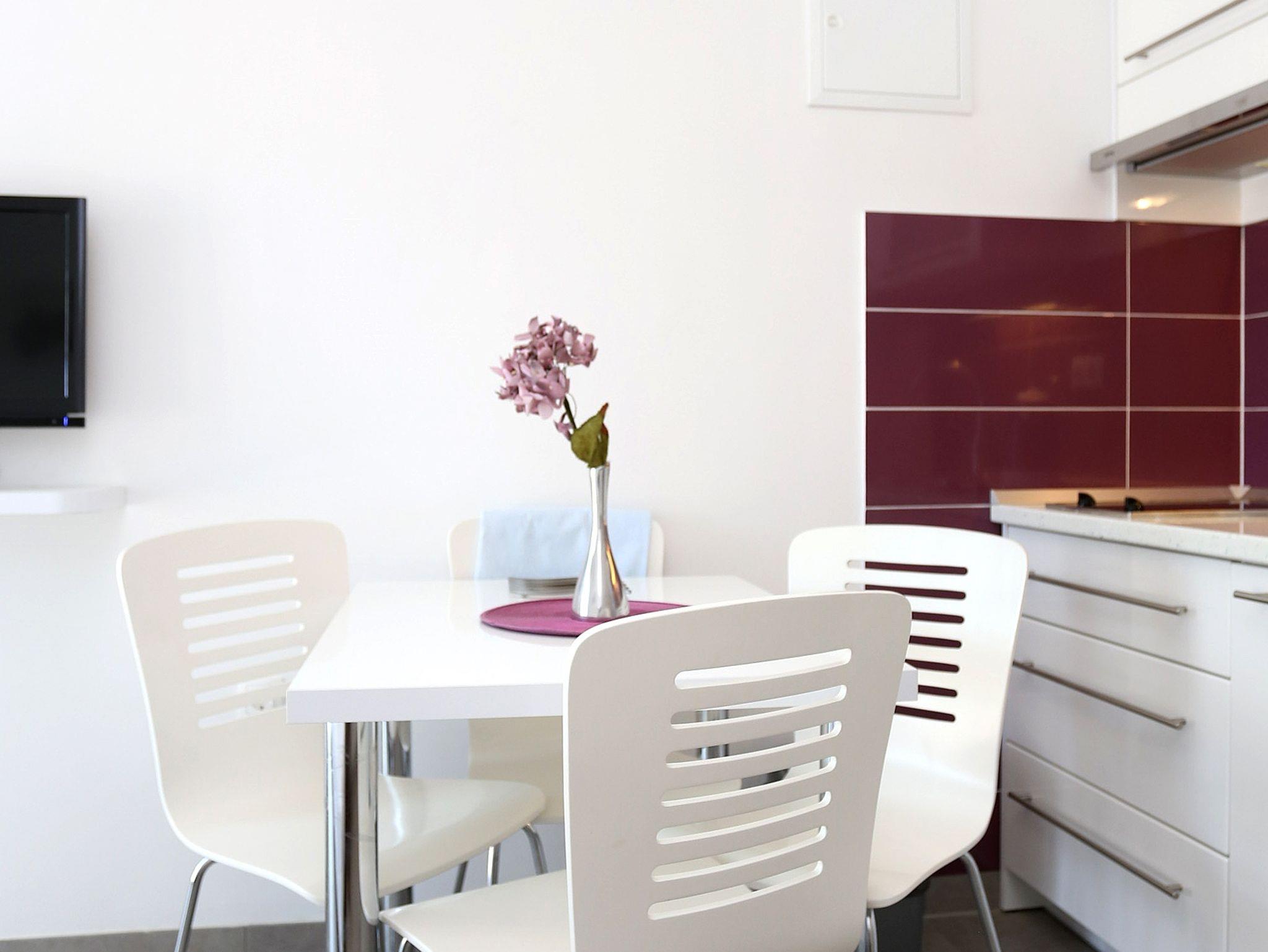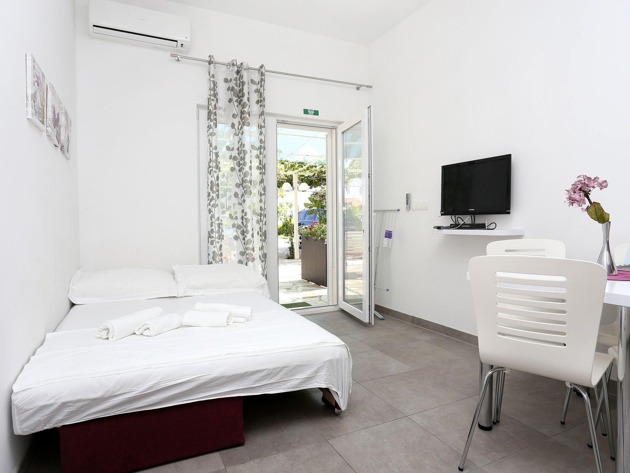 Ferienwohnung bietet Platz für 4 Gäste. Die Betten sind in Schlafzimmern, die es 1 gibt, und in Wohnzimmer, innerhalb einer Gesamtfläche von 27m2, angeordnet. Das Apartment bietet Meerblick. Es ist erlaubt, Speisen auf dem Gemeinschafts-Grill vorzubereiten. Die reservierte Unterkunftseinheit verfügt über einen gemeinsame Terrasse. IM PREIS INBEGRIFFEN: Kurtaxe, Endreinigung, Klimatisierung, Parkplatz, Internet, Bügeleisen, Föhn. Die Verfügbarkeit zusätzlicher Dienstleistungen in Ihrem reservierten Termin und die Preise derselben (falls nicht aufgeführt) müssen im Voraus überprüft werden. Zusätzliche Dienstleistungen die in der Zahlungsaufforderung nicht aufgeführt sind werden direkt beim Vermieter bezahlt, angenommen der Gast nutzt auch diese.