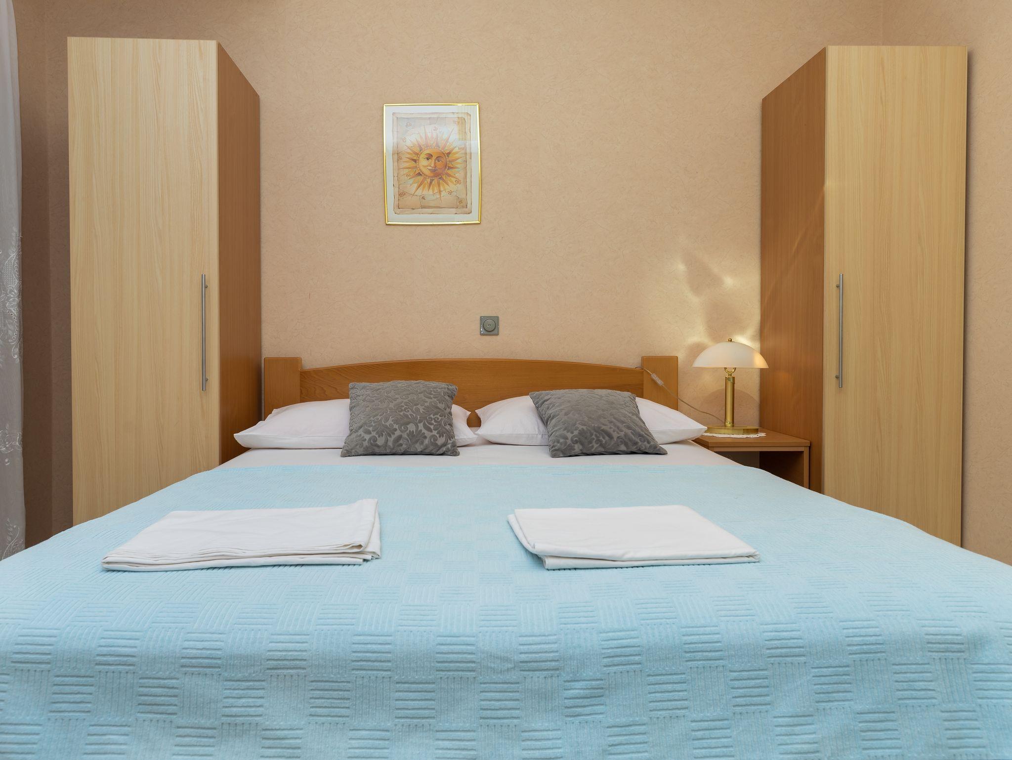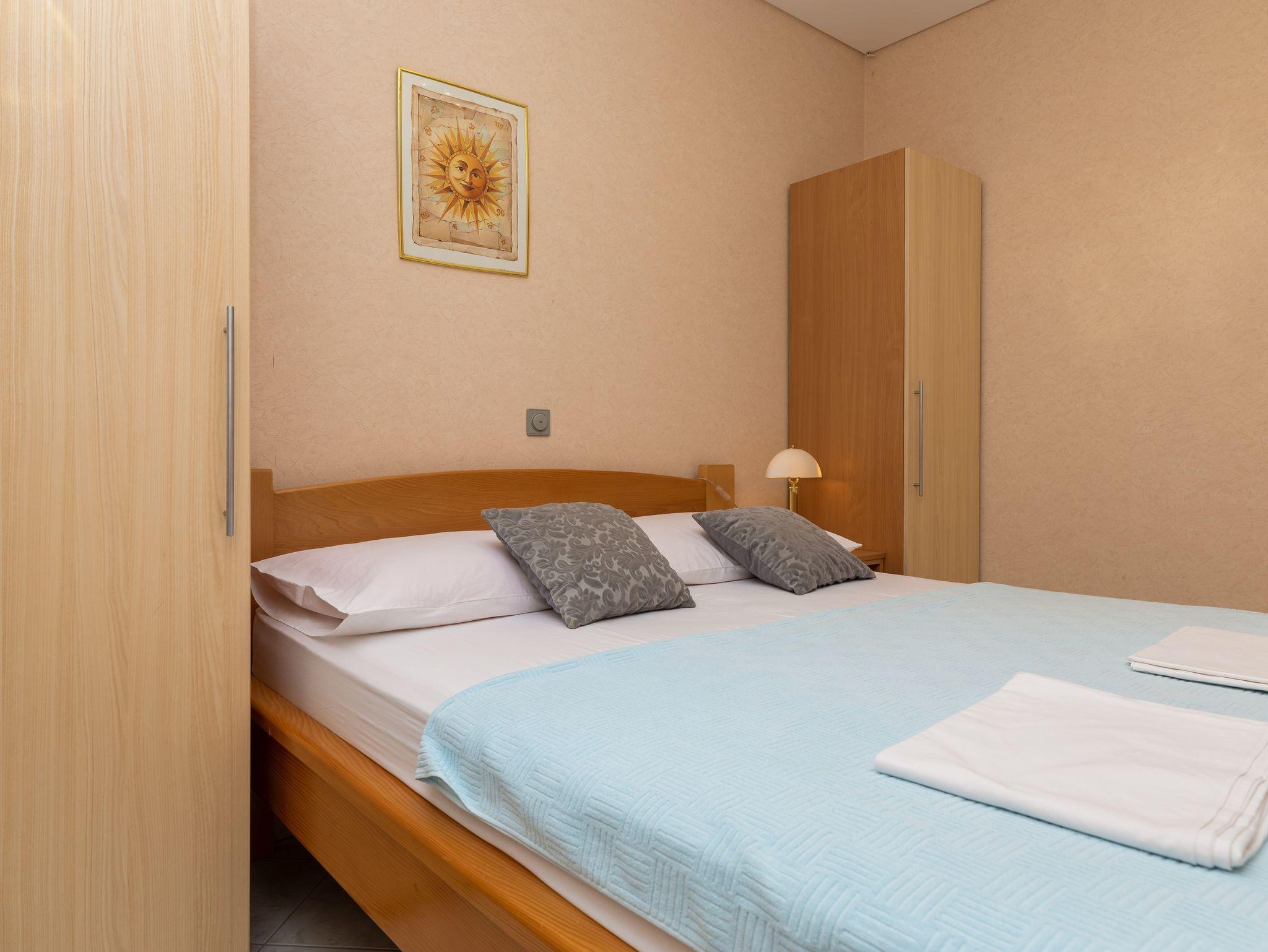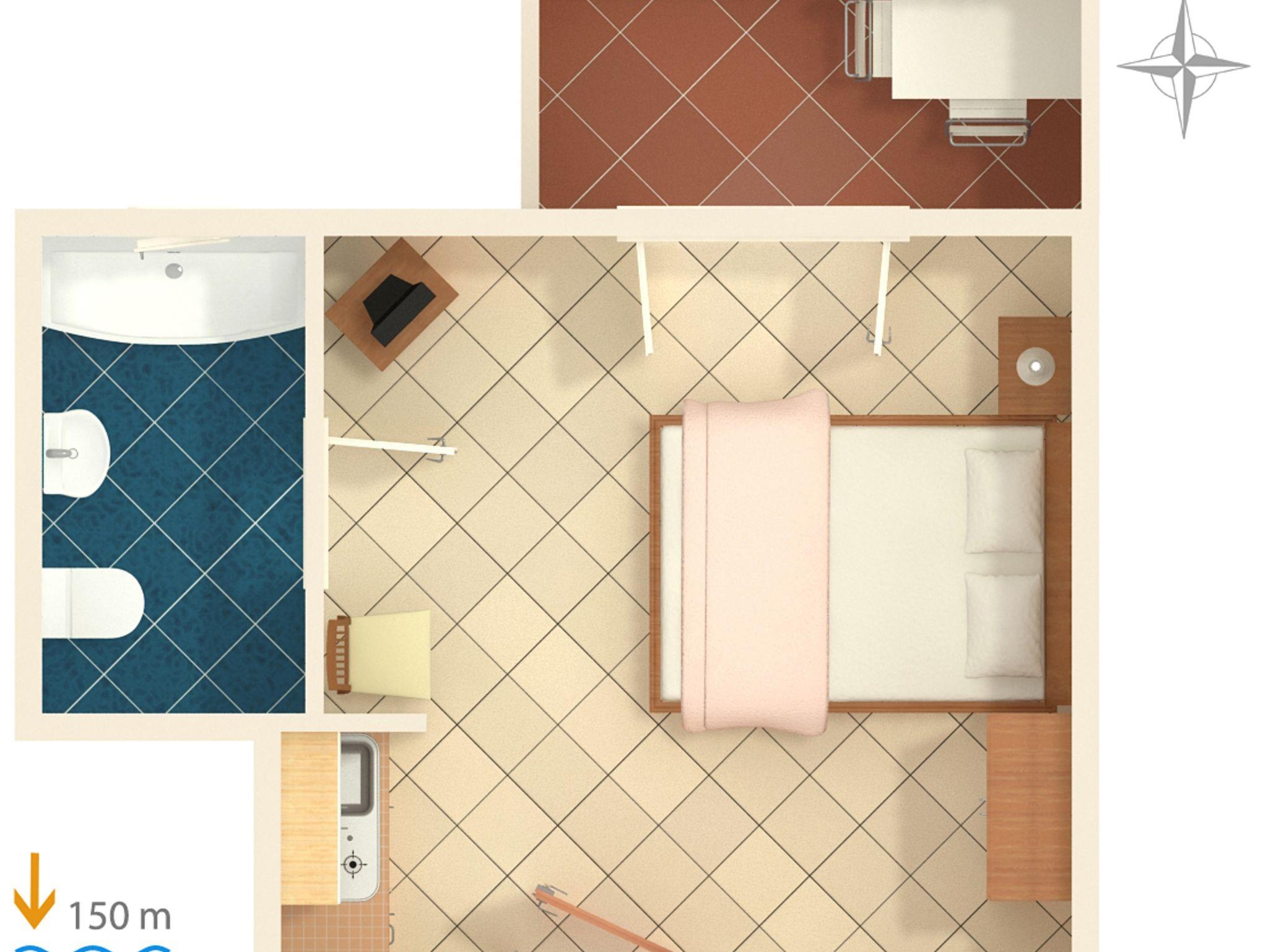 Studio bietet Platz für 2 Gäste. Die Betten sind in Schlafzimmern, die es 1 gibt, innerhalb einer Gesamtfläche von 16m2, angeordnet. Die Gäste haben einen eigenen Balkon zur Verfügung, auf der sie in warmen Sommernächten genießen können. Es ist erlaubt, Speisen auf dem Gemeinschafts-Grill vorzubereiten. IM PREIS INBEGRIFFEN: Kurtaxe, Endreinigung, Klimatisierung, Parkplatz, Internet, Bügeleisen, Bügelbrett. VERBINDLICHE ZUSÄTZLICHE KOSTEN: Aufzahlung für Kurzaufenthalte (prozentualer Zuschlag pro Nächtigungsanzahl: 30% - 1, 20% - 2, 10% - 3). UNVERBINDLICHE ZUSÄTZLICHE KOSTEN: Zentralheizung (5,00 € pro Nacht), Wäschewaschen (7,00 € Waschen). Die Verfügbarkeit zusätzlicher Dienstleistungen in Ihrem reservierten Termin und die Preise derselben (falls nicht aufgeführt) müssen im Voraus überprüft werden. Zusätzliche Dienstleistungen die in der Zahlungsaufforderung nicht aufgeführt sind werden direkt beim Vermieter bezahlt, angenommen der Gast nutzt auch diese. Ermäßigung auf den Grundpreis: Gratistag 14=13 (bei einem Aufenthalt von 14 Tagen oder mehr erhalten Sie einen Gratistag für den Aufenthalt bis 31.12.26).