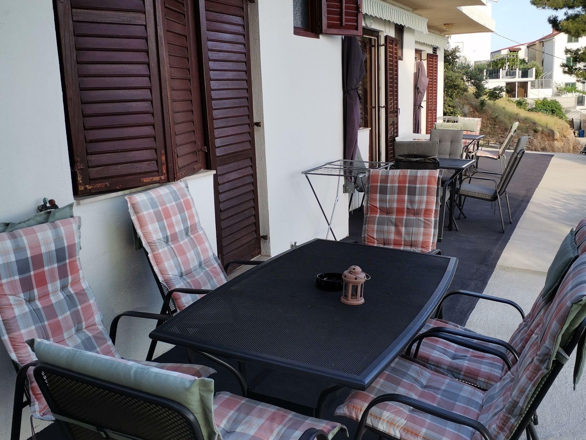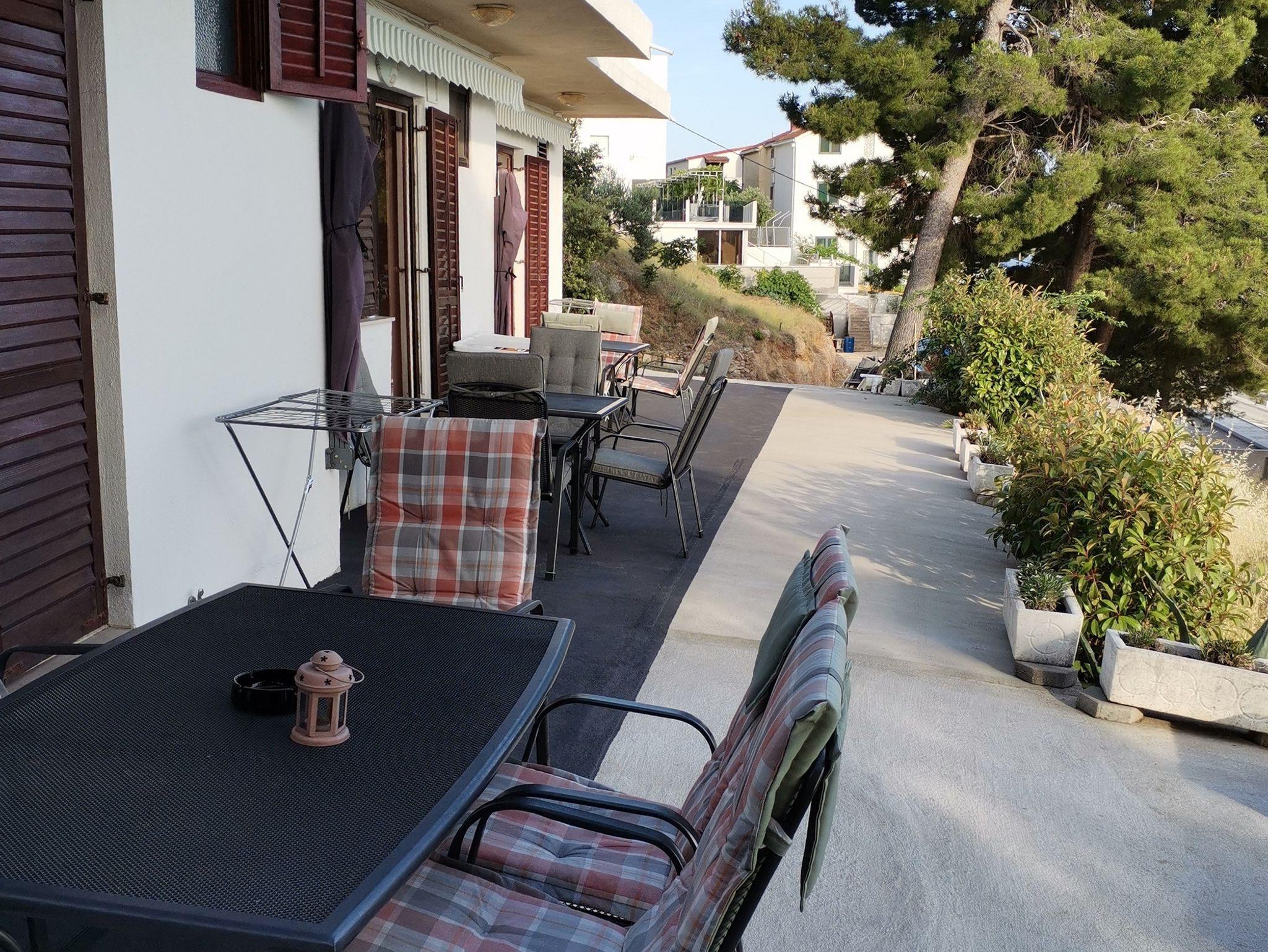 Ferienwohnung bietet Platz für 5 Gäste. Die Betten sind in Schlafzimmern, die es 2 gibt, innerhalb einer Gesamtfläche von 45m2, angeordnet. Die Gäste haben eine eigene Terrasse zur Verfügung, auf der sie in warmen Sommernächten genießen können. Das Apartment bietet Meerblick. Es ist erlaubt, Speisen auf dem Gemeinschafts-Grill vorzubereiten. IM PREIS INBEGRIFFEN: Kurtaxe, Endreinigung, Klimatisierung, Parkplatz, Internet, Bügeleisen, Bügelbrett, Föhn, tragbarer Grill, Sonnenschirm. VERBINDLICHE ZUSÄTZLICHE KOSTEN: Aufzahlung für Kurzaufenthalte (prozentualer Zuschlag pro Nächtigungsanzahl: 30% - 1, 20% - 2, 10% - 3). UNVERBINDLICHE ZUSÄTZLICHE KOSTEN: Bootsanlegeplatz (20,00 € pro Nacht). Die Verfügbarkeit zusätzlicher Dienstleistungen in Ihrem reservierten Termin und die Preise derselben (falls nicht aufgeführt) müssen im Voraus überprüft werden. Zusätzliche Dienstleistungen die in der Zahlungsaufforderung nicht aufgeführt sind werden direkt beim Vermieter bezahlt, angenommen der Gast nutzt auch diese. Ermäßigung auf den Grundpreis: Gratistag 14=13 (bei einem Aufenthalt von 14 Tagen oder mehr erhalten Sie einen Gratistag für den Aufenthalt bis 31.12.26).