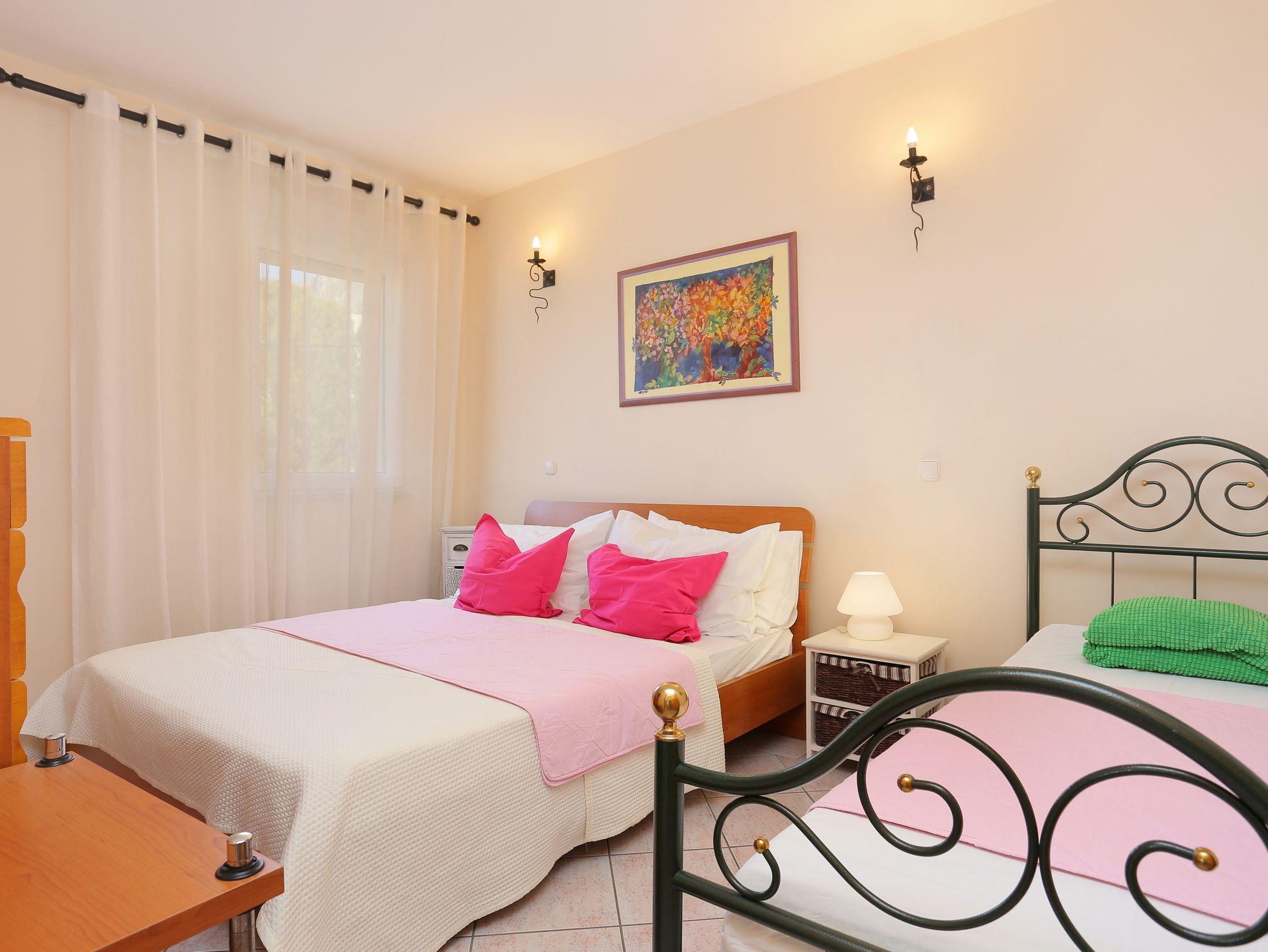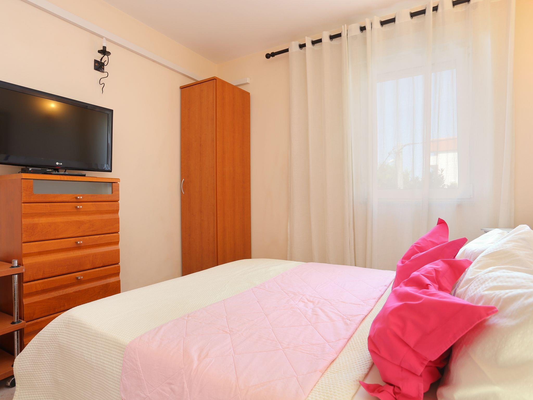 Ferienwohnung bietet Platz für 4 Gäste. Die Betten sind in Schlafzimmern, die es 1 gibt, und in Wohnzimmer, innerhalb einer Gesamtfläche von 35m2, angeordnet. Die Gäste haben eine eigene Terrasse zur Verfügung, auf der sie in warmen Sommernächten genießen können. Das Apartment bietet Meerblick. Es ist erlaubt, Speisen auf dem Gemeinschafts-Grill vorzubereiten. In der Unterkunftseinheit besteht die Möglichkeit des Mitbringens von Haustieren gegen Aufpreis. IM PREIS INBEGRIFFEN: Kurtaxe, Endreinigung, Klimatisierung, Parkplatz, Internet, Kinderbett, Bügeleisen, Bügelbrett, Föhn. VERBINDLICHE ZUSÄTZLICHE KOSTEN: Aufzahlung für Kurzaufenthalte (prozentualer Zuschlag pro Nächtigungsanzahl: 30% - 1, 20% - 2, 10% - 3). UNVERBINDLICHE ZUSÄTZLICHE KOSTEN: Haustiere (5,00 € pro Nacht). Die Verfügbarkeit zusätzlicher Dienstleistungen in Ihrem reservierten Termin und die Preise derselben (falls nicht aufgeführt) müssen im Voraus überprüft werden. Zusätzliche Dienstleistungen die in der Zahlungsaufforderung nicht aufgeführt sind werden direkt beim Vermieter bezahlt, angenommen der Gast nutzt auch diese.