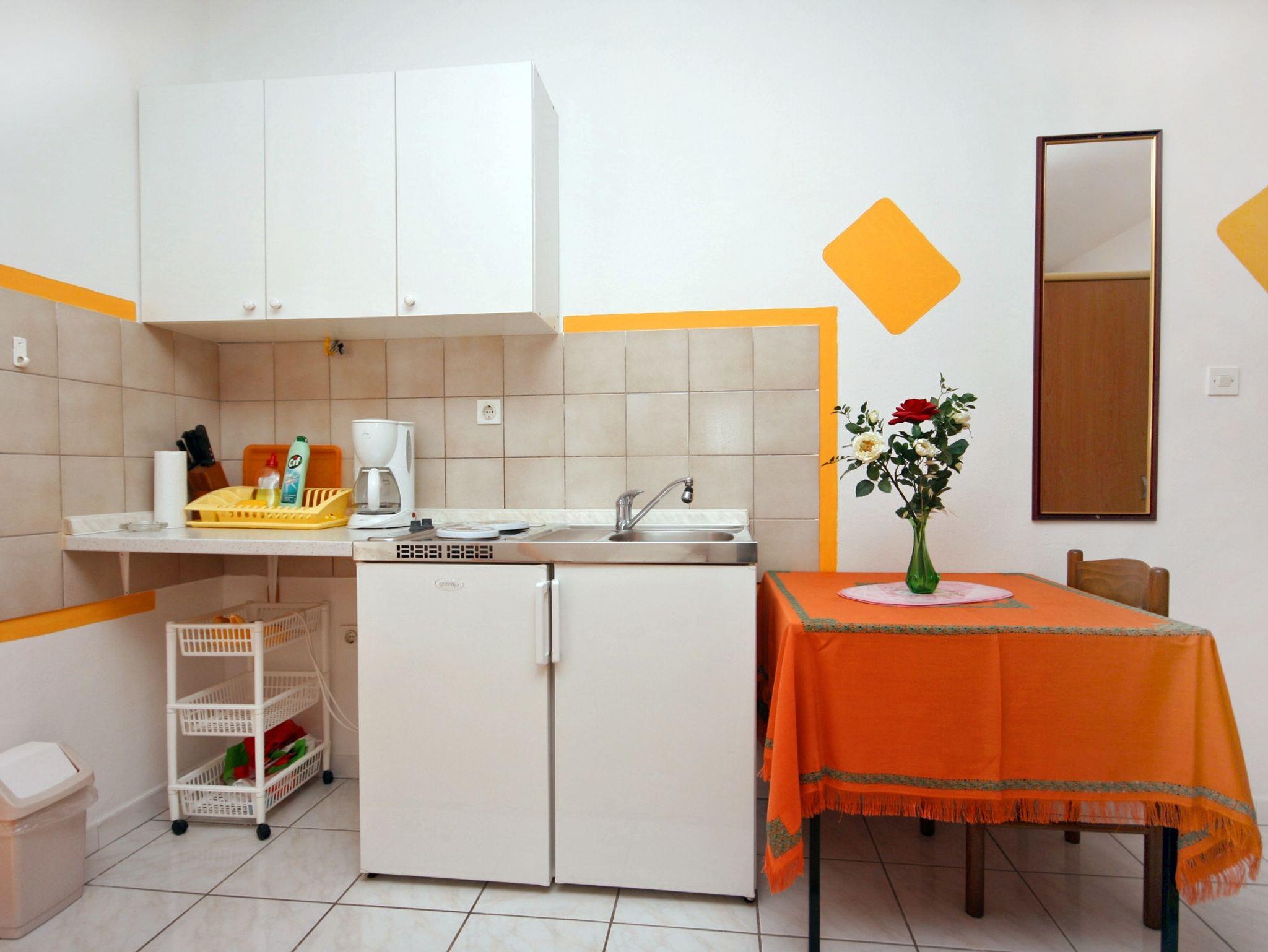 Studio bietet Platz für 3 Gäste. Die Betten sind in Schlafzimmern, die es 1 gibt, innerhalb einer Gesamtfläche von 22m2, angeordnet. Die Gäste haben einen eigenen Balkon zur Verfügung, auf der sie in warmen Sommernächten genießen können. Das Studio-Apartment bietet Meerblick. Es ist erlaubt, Speisen auf dem Gemeinschafts-Grill vorzubereiten. IM PREIS INBEGRIFFEN: Kurtaxe, Endreinigung, Parkplatz, Internet, Bügeleisen, Bügelbrett, Föhn. VERBINDLICHE ZUSÄTZLICHE KOSTEN: Aufzahlung für Kurzaufenthalte (prozentualer Zuschlag pro Nächtigungsanzahl: 30% - 1, 20% - 2, 10% - 3). UNVERBINDLICHE ZUSÄTZLICHE KOSTEN: Klimatisierung (1,00 € kwh), Wäschewaschen (5,00 € Waschen). Die Verfügbarkeit zusätzlicher Dienstleistungen in Ihrem reservierten Termin und die Preise derselben (falls nicht aufgeführt) müssen im Voraus überprüft werden. Zusätzliche Dienstleistungen die in der Zahlungsaufforderung nicht aufgeführt sind werden direkt beim Vermieter bezahlt, angenommen der Gast nutzt auch diese. Ermäßigung auf den Grundpreis: Gratistag 14=13 (bei einem Aufenthalt von 14 Tagen oder mehr erhalten Sie einen Gratistag für den Aufenthalt bis 31.12.26).