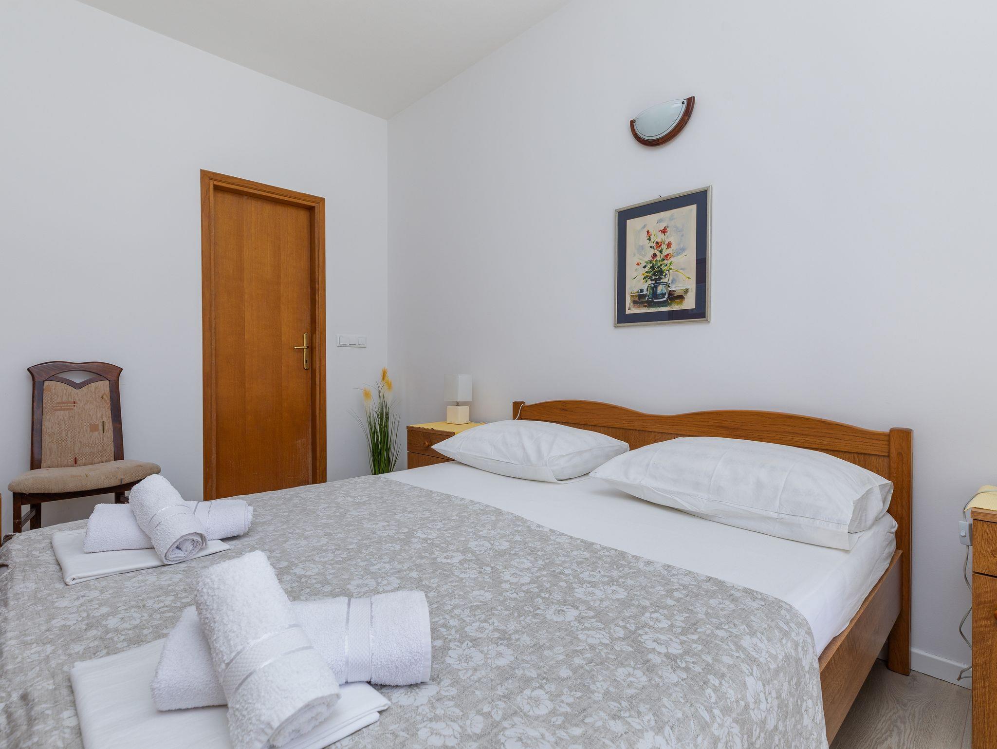 Ferienwohnung bietet Platz für 4 Gäste. Die Betten sind in Schlafzimmern, die es 1 gibt, und in Esszimmer, innerhalb einer Gesamtfläche von 36m2, angeordnet. Die Gäste haben eine eigene Terrasse zur Verfügung, auf der sie in warmen Sommernächten genießen können. Das Apartment bietet Meerblick. Es ist erlaubt, Speisen auf dem Gemeinschafts-Grill vorzubereiten. Räume der gebuchten Unterkunftseinheit werden nicht in eine Ganze verbunden. Unterkunftseinheit hat Räume, die von dem Rest der Einheit abgetrennt werden. IM PREIS INBEGRIFFEN: Kurtaxe, Endreinigung, Klimatisierung, Parkplatz, Internet. UNVERBINDLICHE ZUSÄTZLICHE KOSTEN: Wäschewaschen (5,00 € Waschen). Die Verfügbarkeit zusätzlicher Dienstleistungen in Ihrem reservierten Termin und die Preise derselben (falls nicht aufgeführt) müssen im Voraus überprüft werden. Zusätzliche Dienstleistungen die in der Zahlungsaufforderung nicht aufgeführt sind werden direkt beim Vermieter bezahlt, angenommen der Gast nutzt auch diese. Ermäßigung auf den Grundpreis: Gratistag 14=13 (bei einem Aufenthalt von 14 Tagen oder mehr erhalten Sie einen Gratistag für den Aufenthalt bis 31.12.26).