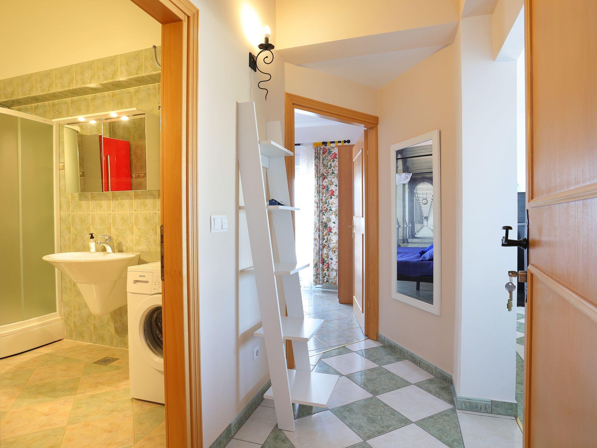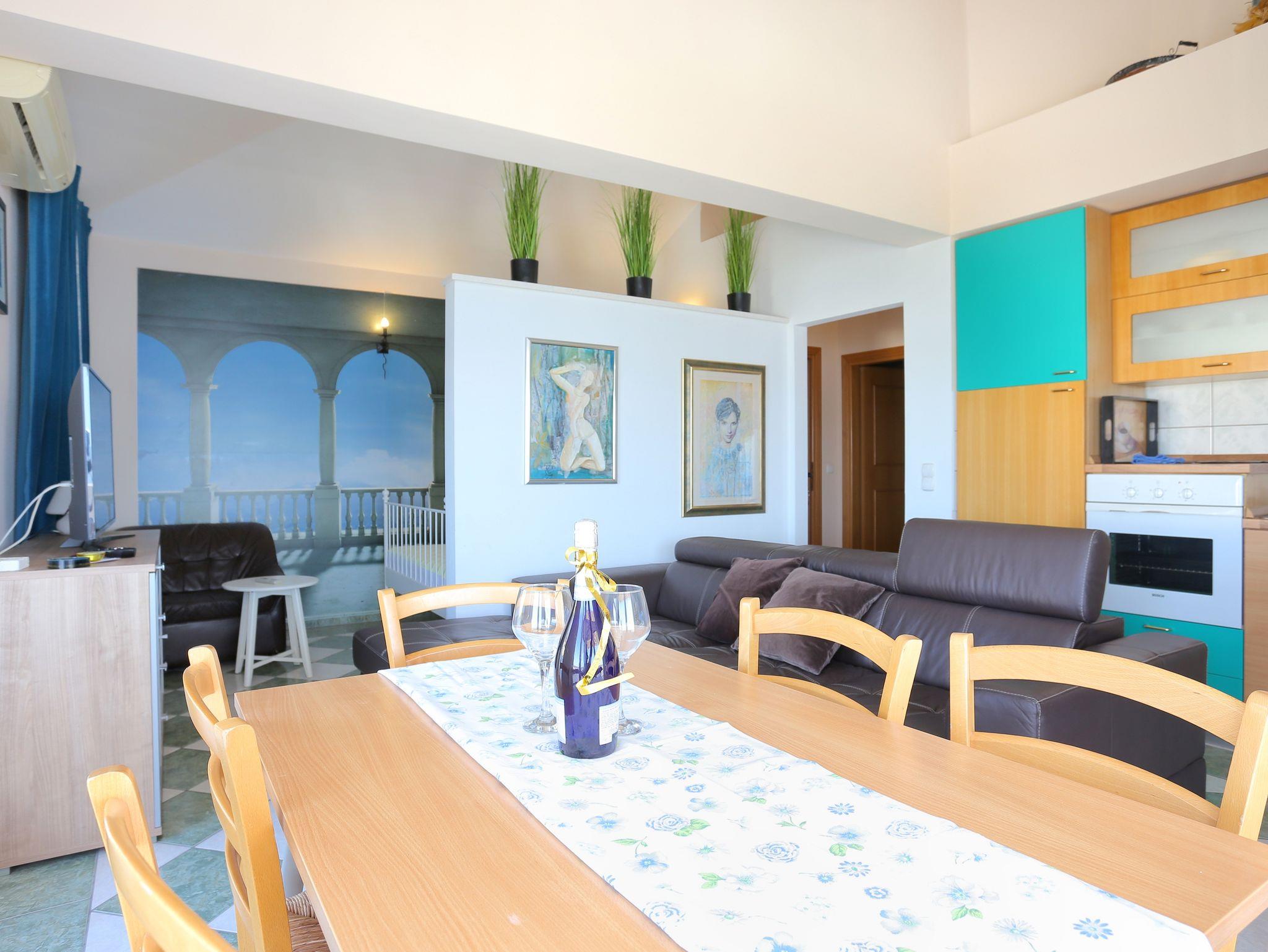 Ferienwohnung bietet Platz für 5 Gäste. Die Betten sind in Schlafzimmern, die es 1 gibt, und in Wohnzimmer, innerhalb einer Gesamtfläche von 47m2, angeordnet. Die Gäste haben eine eigene Terrasse zur Verfügung, auf der sie in warmen Sommernächten genießen können. Das Apartment bietet Meerblick. Es ist erlaubt, Speisen auf dem Gemeinschafts-Grill vorzubereiten. In der Unterkunftseinheit besteht die Möglichkeit des Mitbringens von Haustieren gegen Aufpreis. IM PREIS INBEGRIFFEN: Kurtaxe, Endreinigung, Klimatisierung, Parkplatz, Internet, Kinderbett, Bügeleisen, Bügelbrett, Föhn. VERBINDLICHE ZUSÄTZLICHE KOSTEN: Aufzahlung für Kurzaufenthalte (prozentualer Zuschlag pro Nächtigungsanzahl: 30% - 1, 20% - 2, 10% - 3). UNVERBINDLICHE ZUSÄTZLICHE KOSTEN: Haustiere (5,00 € pro Nacht). Die Verfügbarkeit zusätzlicher Dienstleistungen in Ihrem reservierten Termin und die Preise derselben (falls nicht aufgeführt) müssen im Voraus überprüft werden. Zusätzliche Dienstleistungen die in der Zahlungsaufforderung nicht aufgeführt sind werden direkt beim Vermieter bezahlt, angenommen der Gast nutzt auch diese.