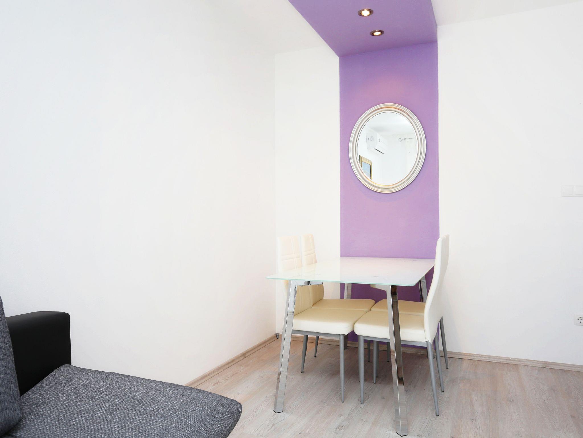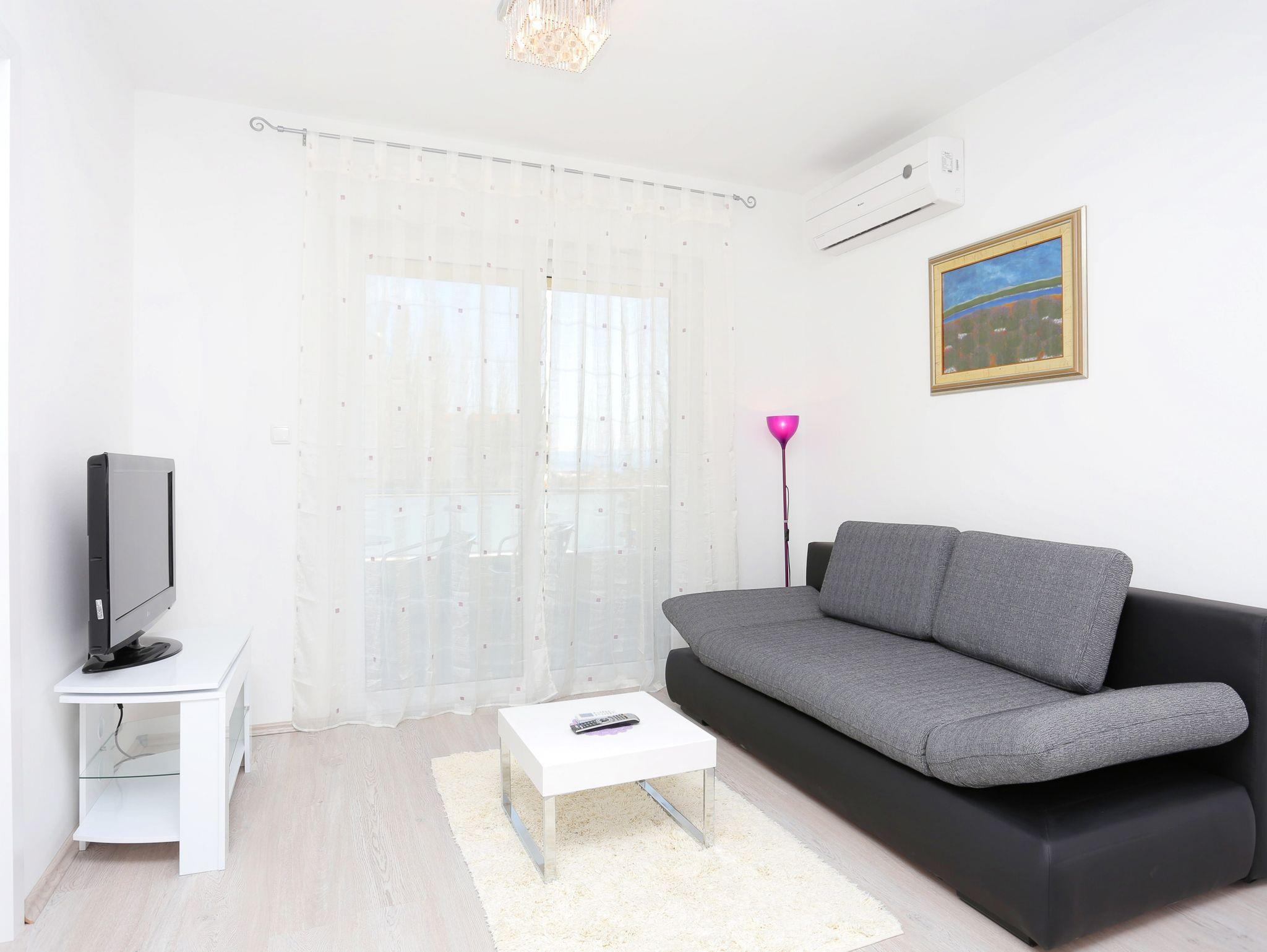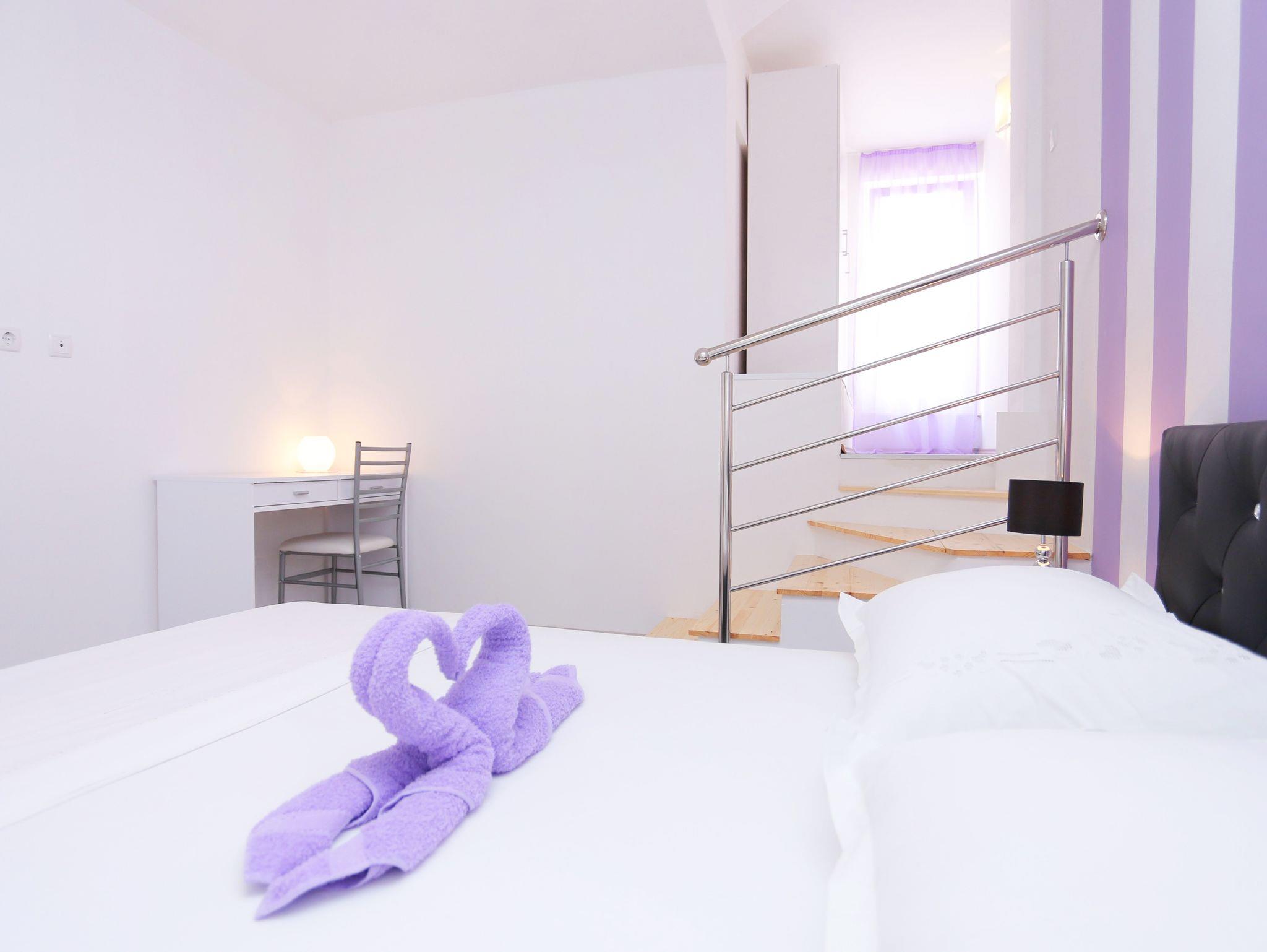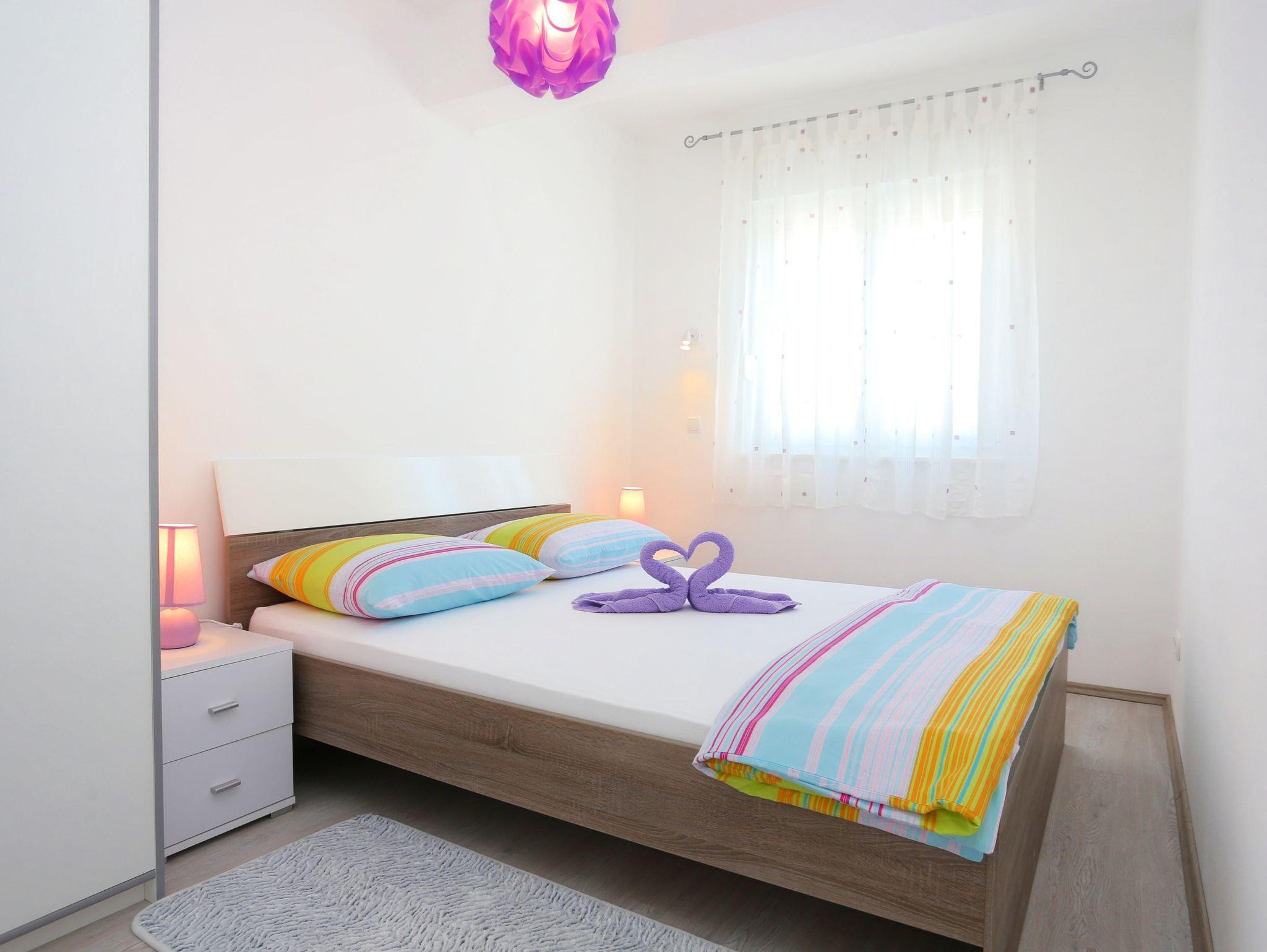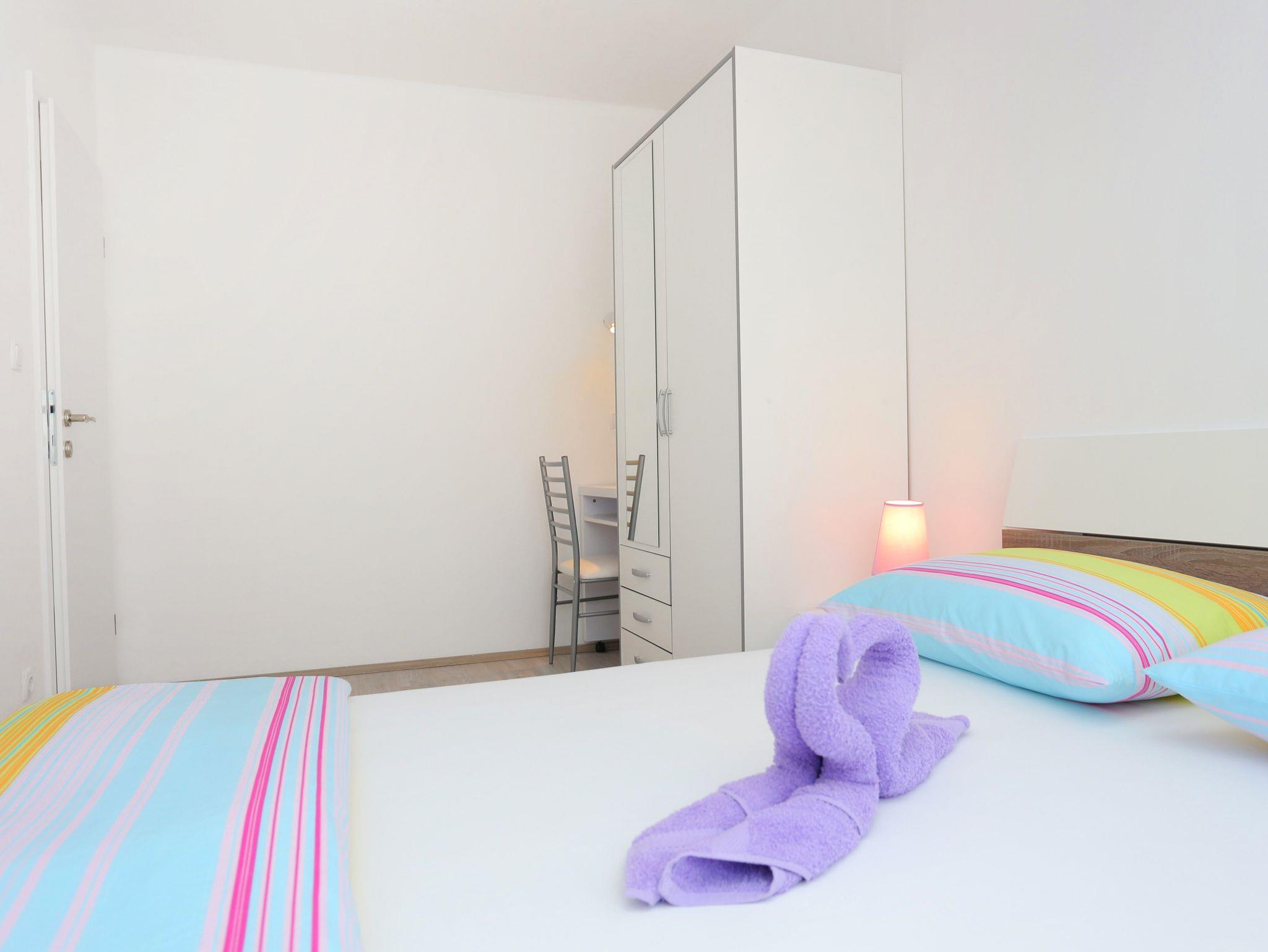 Ferienwohnung bietet Platz für 6 Gäste. Die Betten sind in Schlafzimmern, die es 2 gibt, und in Wohnzimmer, innerhalb einer Gesamtfläche von 61m2, angeordnet. Die Gäste haben eine eigene Terrasse zur Verfügung, auf der sie in warmen Sommernächten genießen können. Es ist erlaubt, Speisen auf dem Gemeinschafts-Grill vorzubereiten. IM PREIS INBEGRIFFEN: Kurtaxe, Endreinigung, Klimatisierung, Parkplatz, Internet, Kinderbett, Zusatzbett, Bügeleisen, Bügelbrett, Föhn, tragbarer Grill, 1 Bett für Kinder (im Preis enthalten). VERBINDLICHE ZUSÄTZLICHE KOSTEN: Aufzahlung für Kurzaufenthalte (prozentualer Zuschlag pro Nächtigungsanzahl: 30% - 1, 20% - 2, 10% - 3). Die Verfügbarkeit zusätzlicher Dienstleistungen in Ihrem reservierten Termin und die Preise derselben (falls nicht aufgeführt) müssen im Voraus überprüft werden. Zusätzliche Dienstleistungen die in der Zahlungsaufforderung nicht aufgeführt sind werden direkt beim Vermieter bezahlt, angenommen der Gast nutzt auch diese. Ermäßigung auf den Grundpreis: Gratistag 14=13 (bei einem Aufenthalt von 14 Tagen oder mehr erhalten Sie einen Gratistag für den Aufenthalt bis 31.12.26).