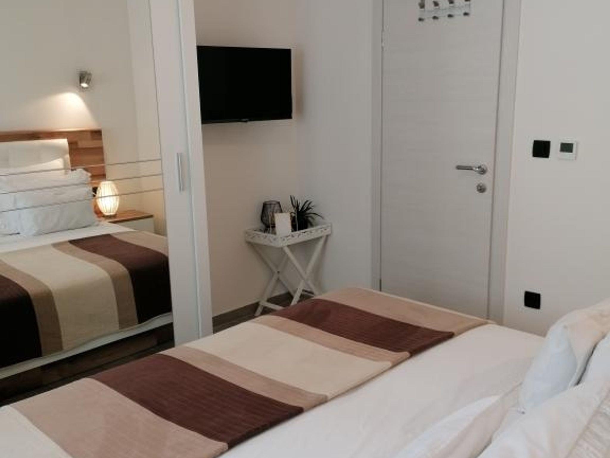 Ferienwohnung bietet Platz für 4 Gäste. Die Betten sind in Schlafzimmern, die es 2 gibt, innerhalb einer Gesamtfläche von 81m2, angeordnet. Die Gäste haben eine eigene Terrasse zur Verfügung, auf der sie in warmen Sommernächten genießen können. Das Apartment bietet Meerblick. Für vollen Genuss und Entspannung gibt es einen privaten Grill für Gäste dieser Unterkunft. IM PREIS INBEGRIFFEN: Kurtaxe, Endreinigung, Klimatisierung, Parkplatz, Internet, Kinderbett, Bügeleisen, Bügelbrett, Föhn, Sonnenschirm. VERBINDLICHE ZUSÄTZLICHE KOSTEN: Aufzahlung für Kurzaufenthalte (prozentualer Zuschlag pro Nächtigungsanzahl: 30% - 1, 20% - 2, 10% - 3). Die Verfügbarkeit zusätzlicher Dienstleistungen in Ihrem reservierten Termin und die Preise derselben (falls nicht aufgeführt) müssen im Voraus überprüft werden. Zusätzliche Dienstleistungen die in der Zahlungsaufforderung nicht aufgeführt sind werden direkt beim Vermieter bezahlt, angenommen der Gast nutzt auch diese.