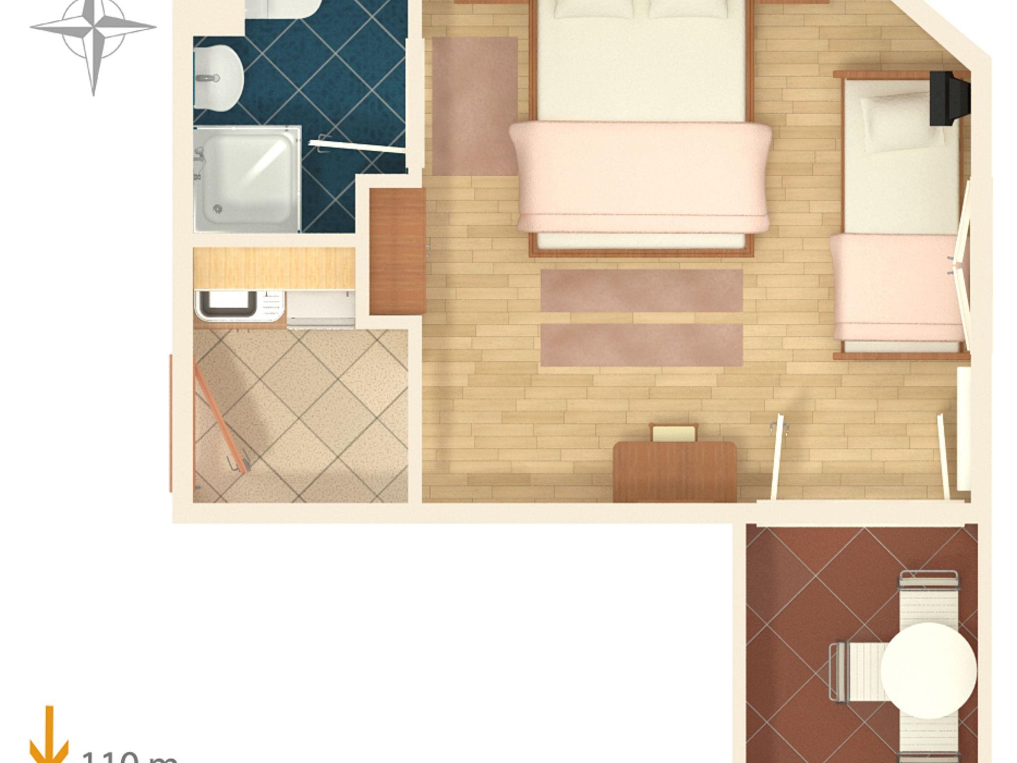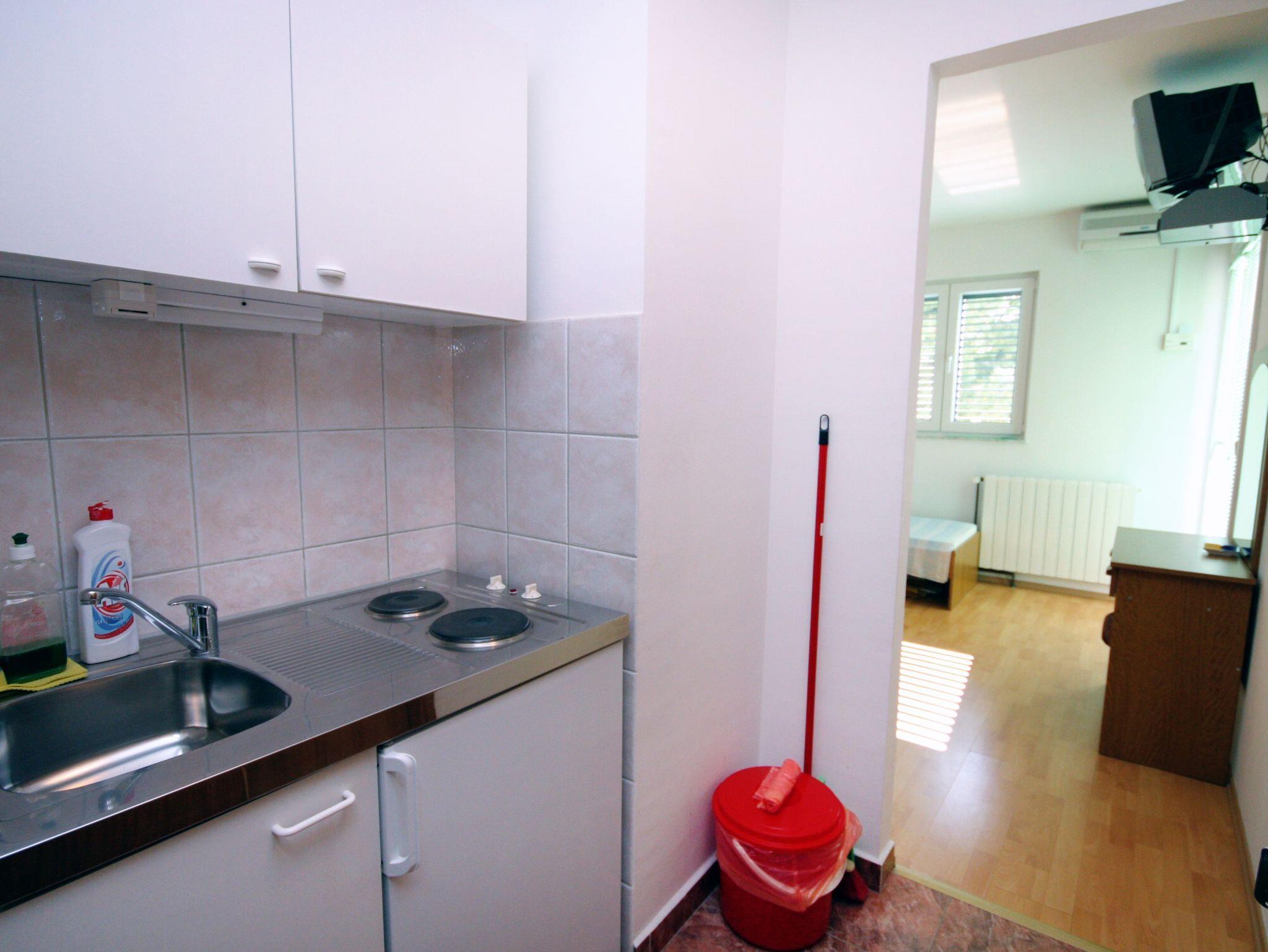 Studio bietet Platz für 3 Gäste. Die Betten sind in Schlafzimmern, die es 1 gibt, innerhalb einer Gesamtfläche von 21m2, angeordnet. Die Gäste haben eine eigene Terrasse zur Verfügung, auf der sie in warmen Sommernächten genießen können. Das Studio-Apartment bietet Meerblick. Es ist erlaubt, Speisen auf dem Gemeinschafts-Grill vorzubereiten. IM PREIS INBEGRIFFEN: Kurtaxe, Endreinigung, Klimatisierung, Parkplatz, Internet, Wäschewaschen, Bügeleisen, Bügelbrett, Föhn. VERBINDLICHE ZUSÄTZLICHE KOSTEN: Aufzahlung für Kurzaufenthalte (prozentualer Zuschlag pro Nächtigungsanzahl: 30% - 1, 20% - 2, 10% - 3). UNVERBINDLICHE ZUSÄTZLICHE KOSTEN: Zentralheizung (3,00 € pro Nacht), Zusatzbett (5,00 € pro Nacht). Die Verfügbarkeit zusätzlicher Dienstleistungen in Ihrem reservierten Termin und die Preise derselben (falls nicht aufgeführt) müssen im Voraus überprüft werden. Zusätzliche Dienstleistungen die in der Zahlungsaufforderung nicht aufgeführt sind werden direkt beim Vermieter bezahlt, angenommen der Gast nutzt auch diese.
