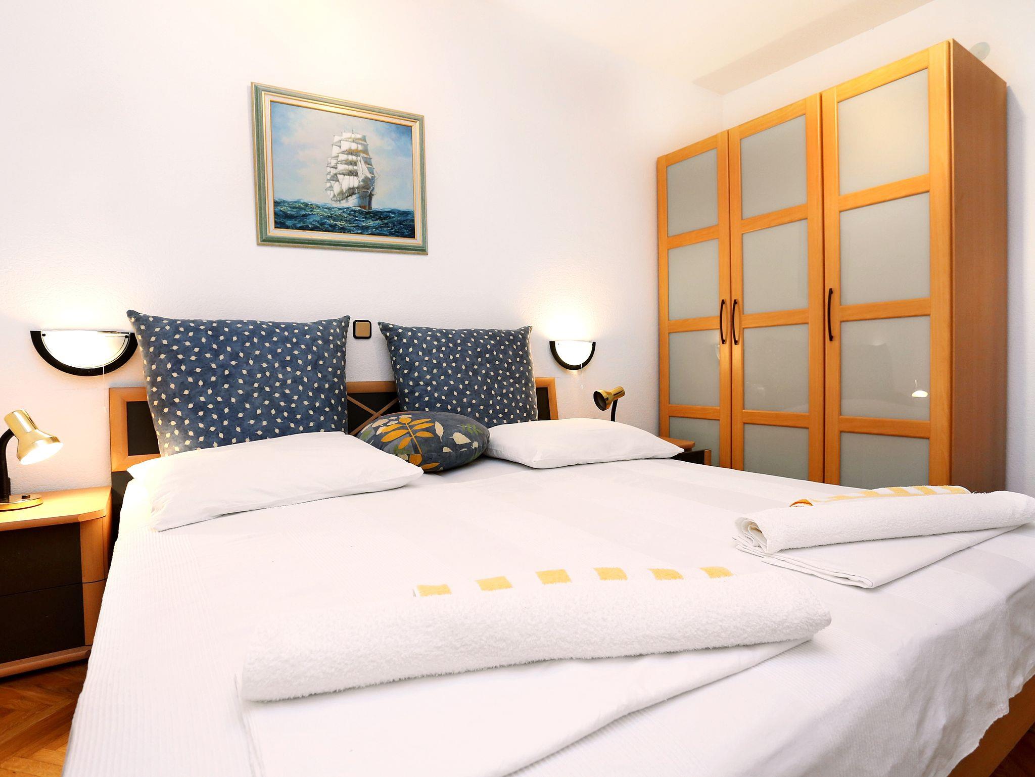 Ferienwohnung bietet Platz für 8 Gäste. Die Betten sind in Schlafzimmern, die es 4 gibt, innerhalb einer Gesamtfläche von 114m2, angeordnet. Die Gäste haben eine eigene Terrasse zur Verfügung, auf der sie in warmen Sommernächten genießen können. Das Apartment bietet Meerblick. In der Unterkunftseinheit besteht die Möglichkeit des Mitbringens von Haustieren gegen Aufpreis. IM PREIS INBEGRIFFEN: Kurtaxe, Endreinigung, Klimatisierung, Zentralheizung, Parkplatz, Internet, Bügeleisen, Bügelbrett, Föhn. VERBINDLICHE ZUSÄTZLICHE KOSTEN: Aufzahlung für Kurzaufenthalte (prozentualer Zuschlag pro Nächtigungsanzahl: 30% - 1, 20% - 2, 10% - 3). UNVERBINDLICHE ZUSÄTZLICHE KOSTEN: Haustiere (10,00 € pro Nacht), 1 Bett für Kinder (15,00 € Person/Tag). Die Verfügbarkeit zusätzlicher Dienstleistungen in Ihrem reservierten Termin und die Preise derselben (falls nicht aufgeführt) müssen im Voraus überprüft werden. Zusätzliche Dienstleistungen die in der Zahlungsaufforderung nicht aufgeführt sind werden direkt beim Vermieter bezahlt, angenommen der Gast nutzt auch diese. Ermäßigung auf den Grundpreis: Gratistag 14=13 (bei einem Aufenthalt von 14 Tagen oder mehr erhalten Sie einen Gratistag für den Aufenthalt bis 31.12.26).